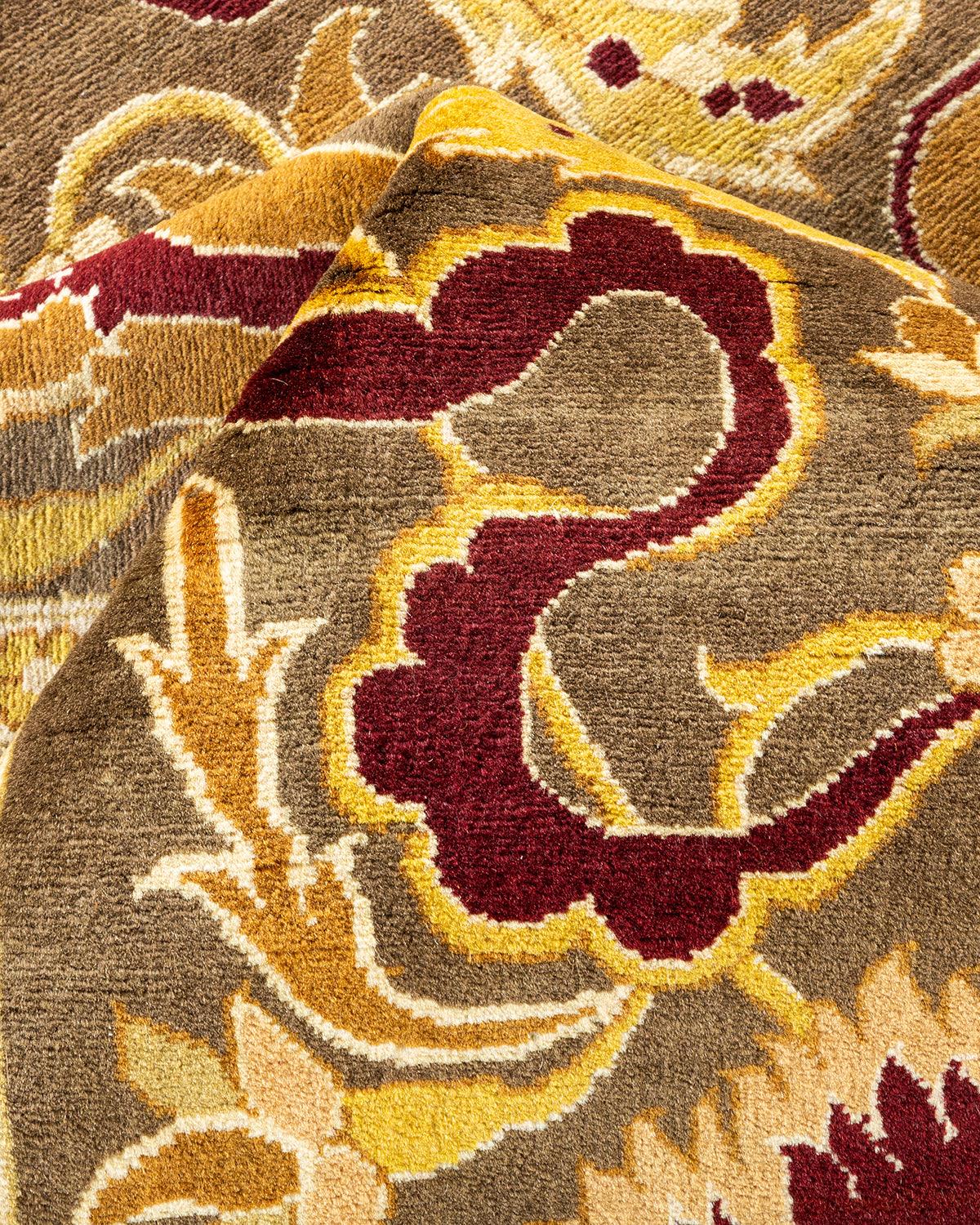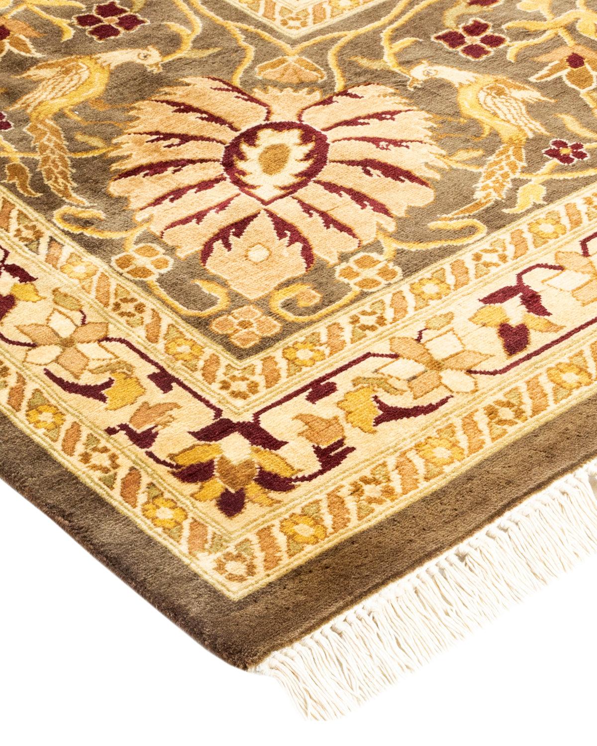 Traditional Hand Knotted Mogul Brown Area Rug 9' 0" x 12' 1"