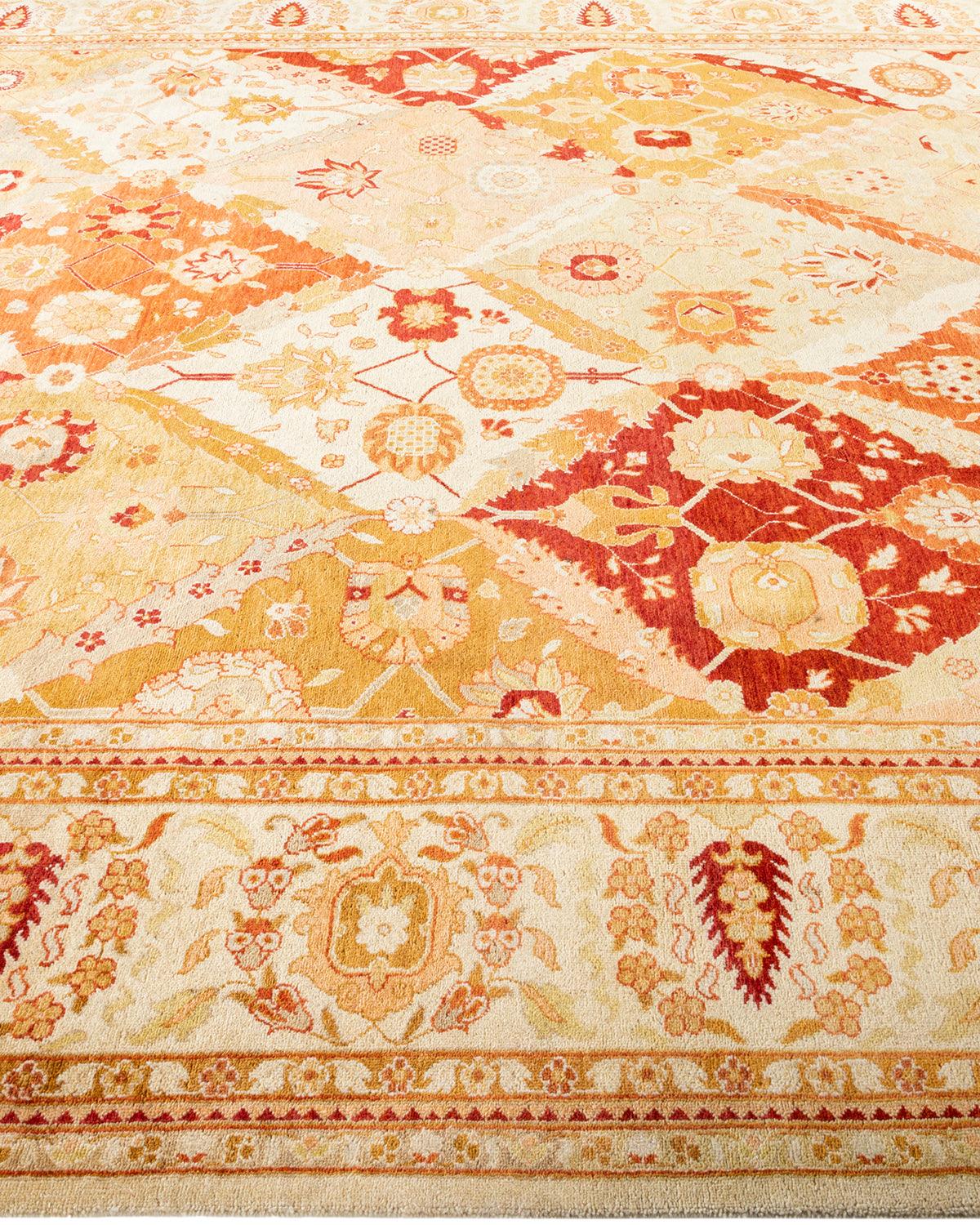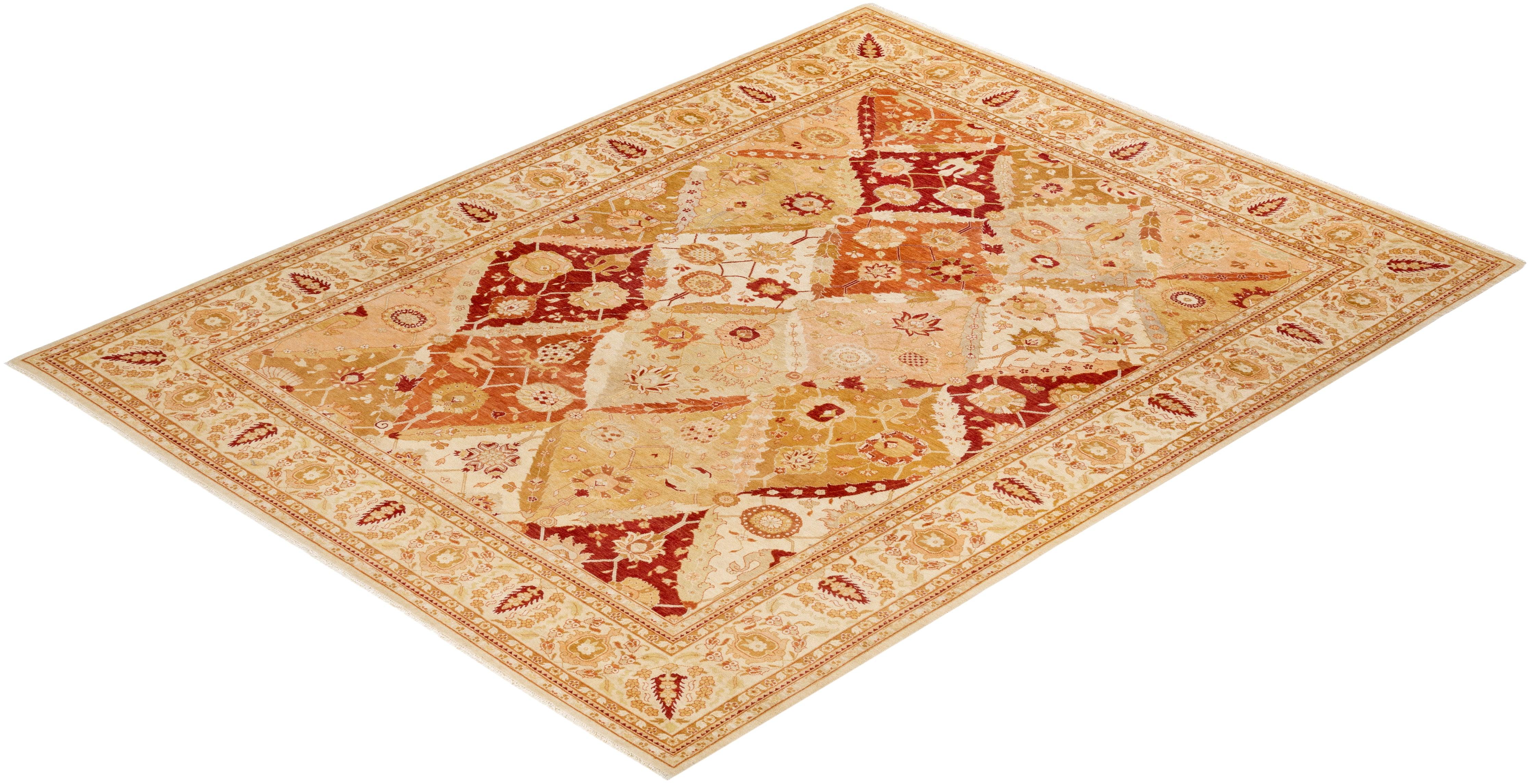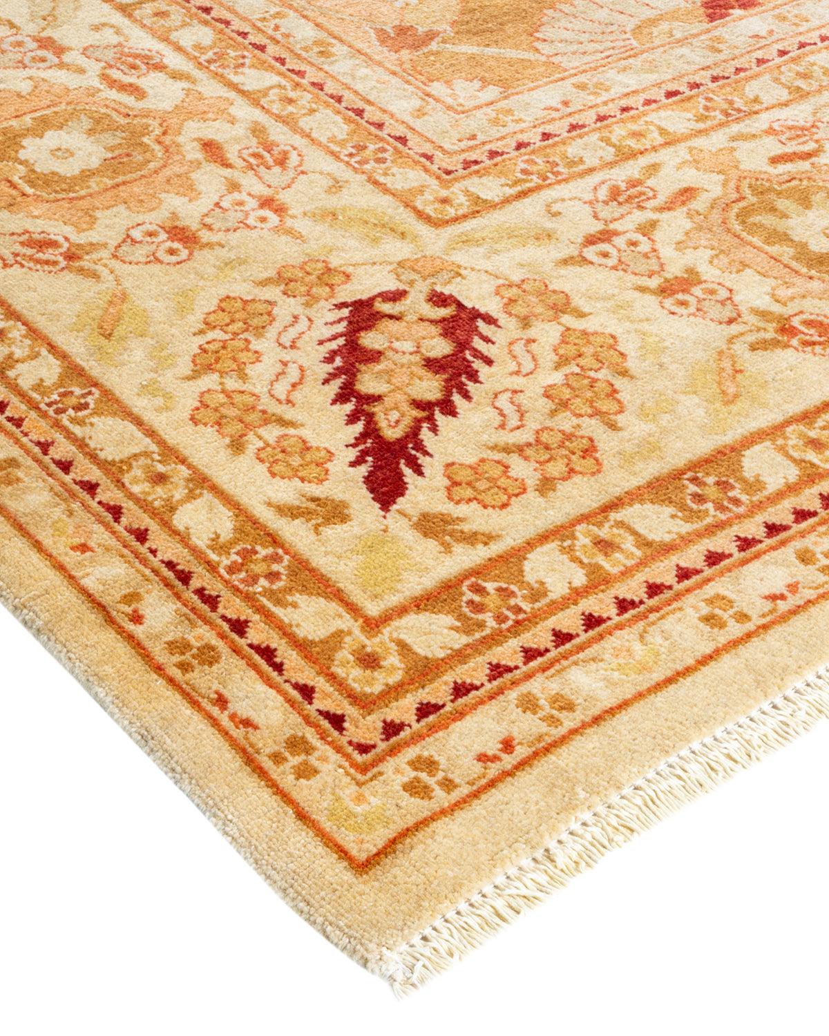 Contemporary Hand Knotted Eclectic Floral Ivory Area Rug 9' 0" x 11' 9"