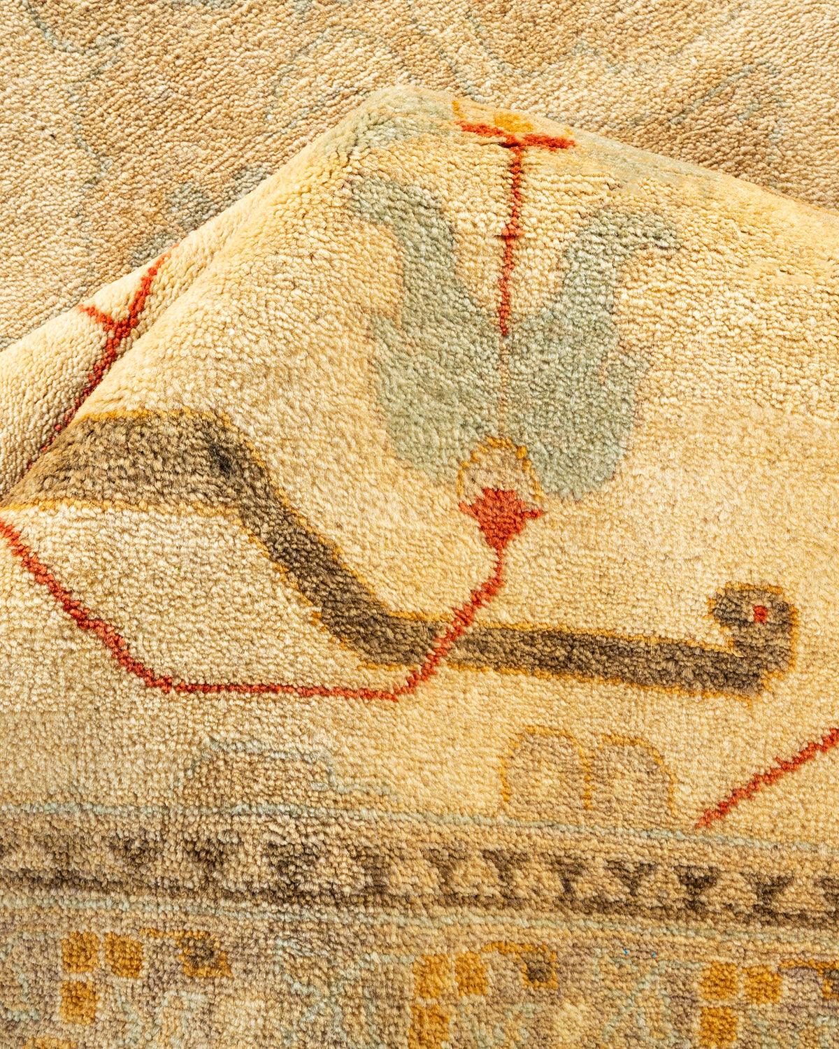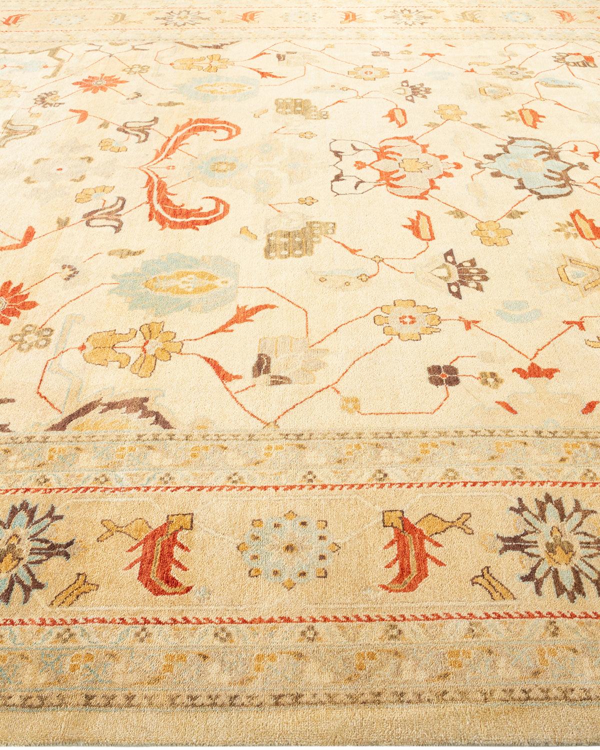 Contemporary Hand Knotted Eclectic Ivory Area Rug 9' 1" x 12' 1"