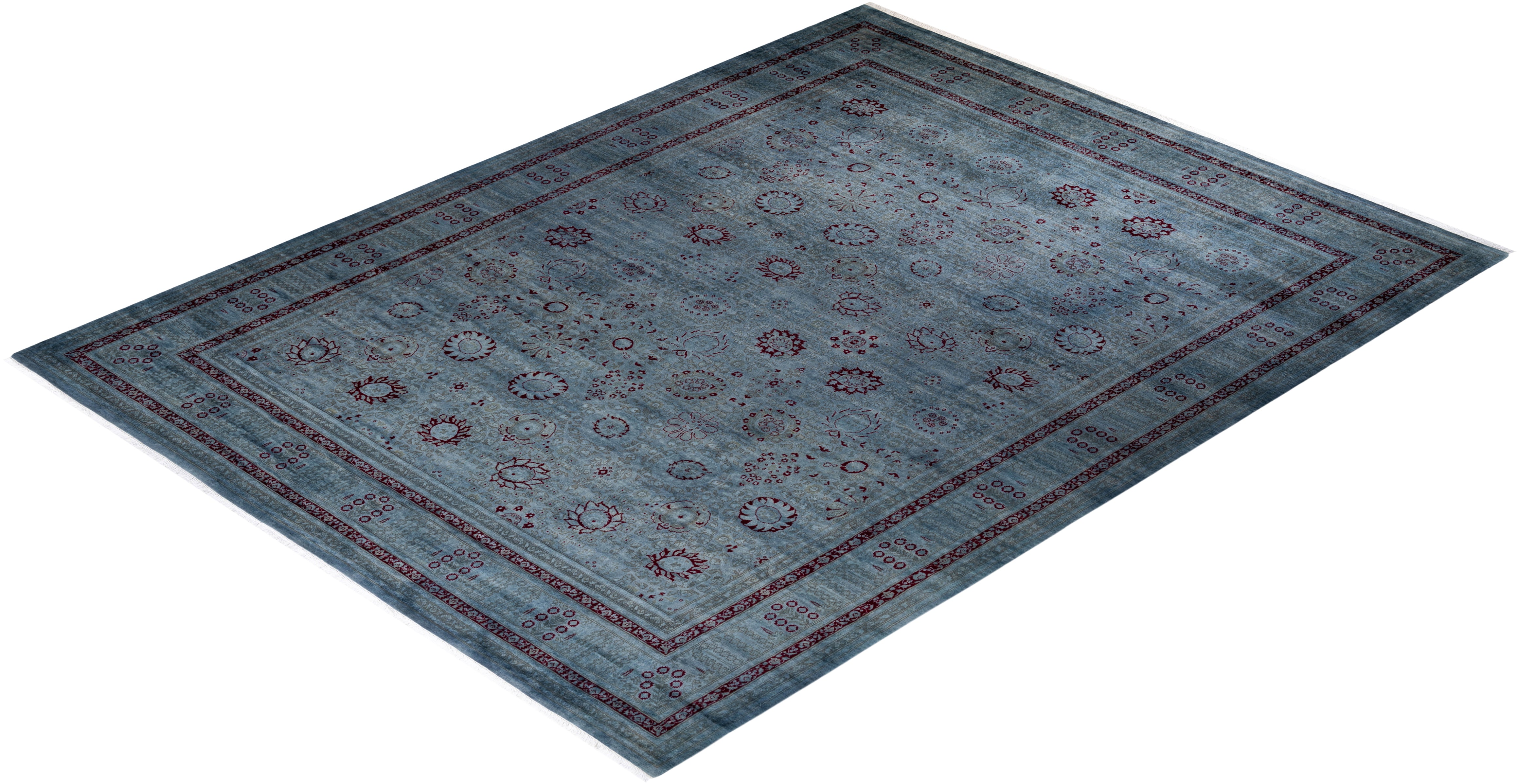 Contemporary Hand Knotted Overdyed Gray Area Rug 9' 1" x 12' 3"