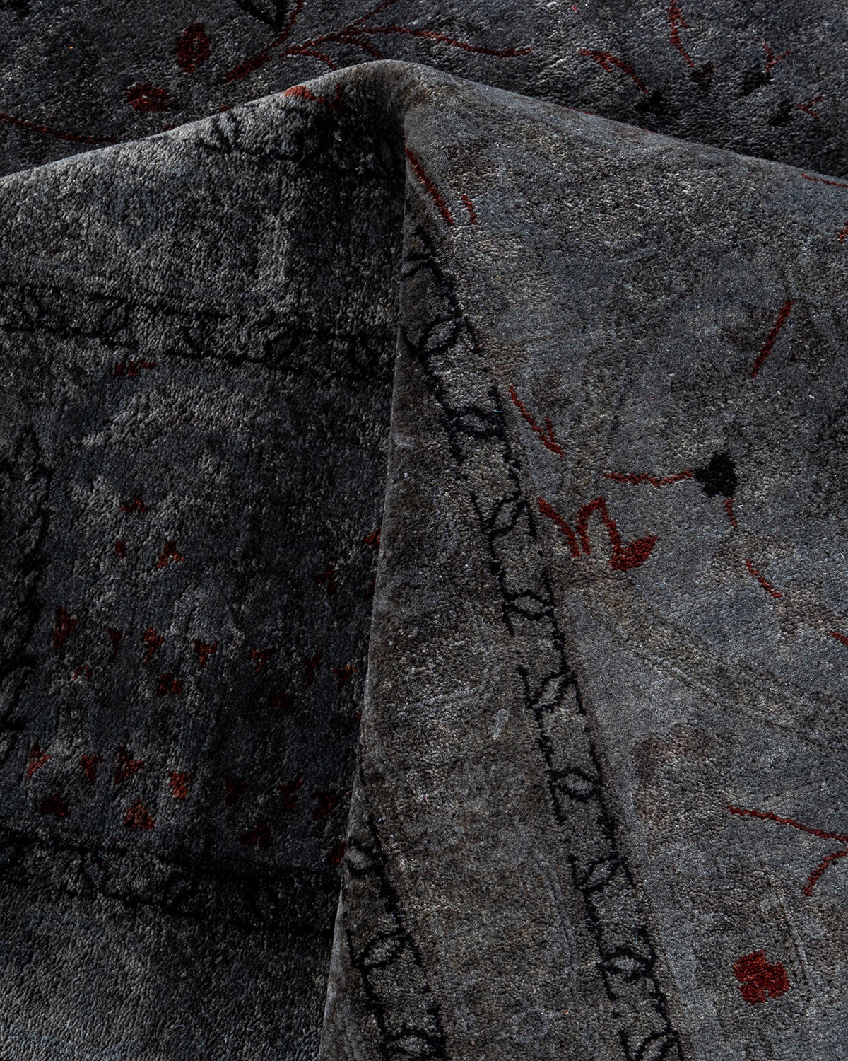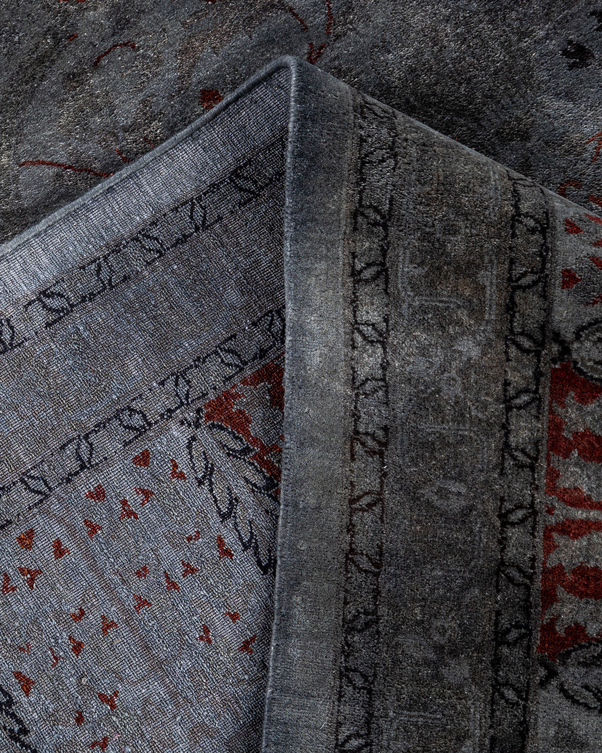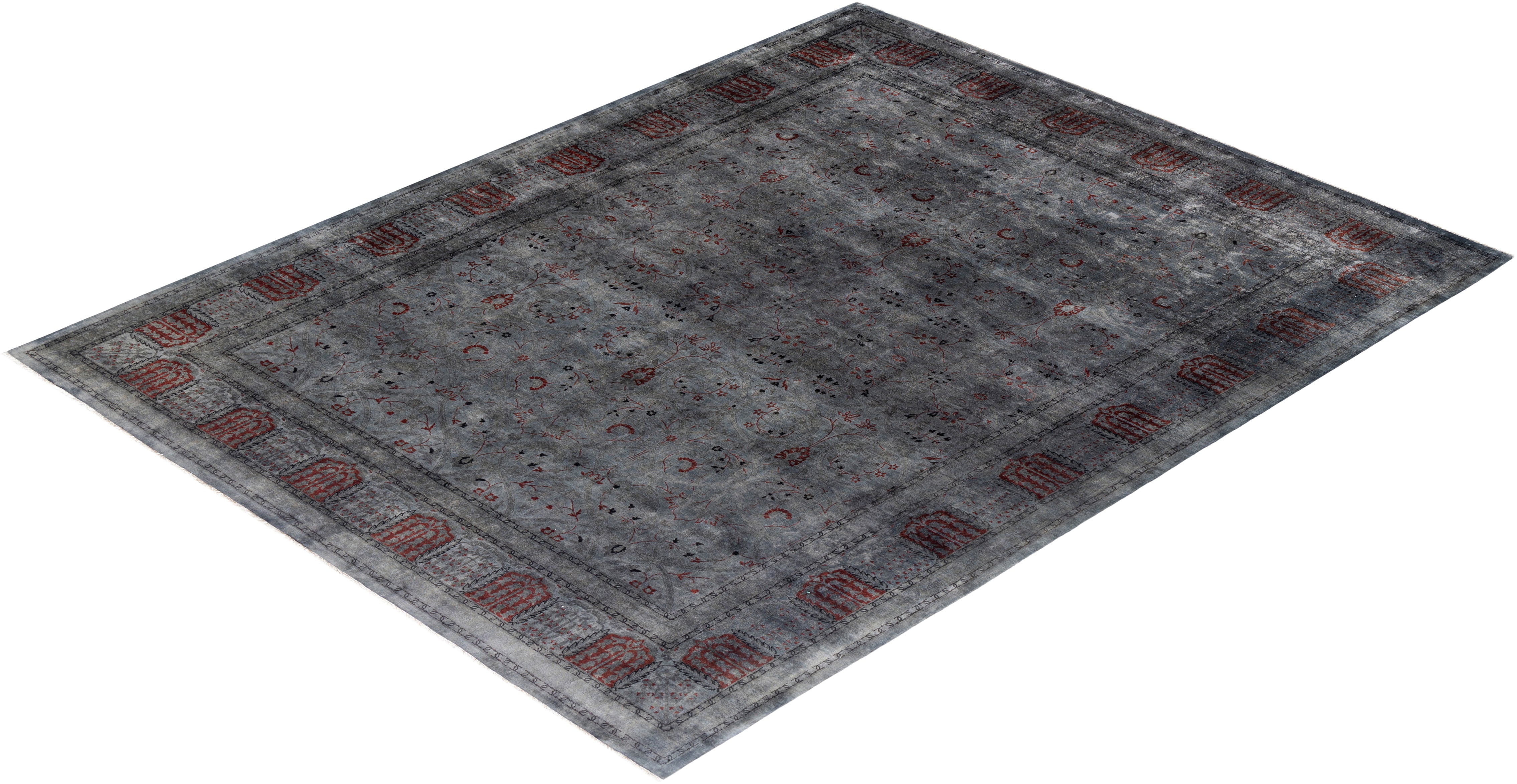 Contemporary Hand-Knotted Overdyed Gray Area Rug 9' 2" x 11' 9"