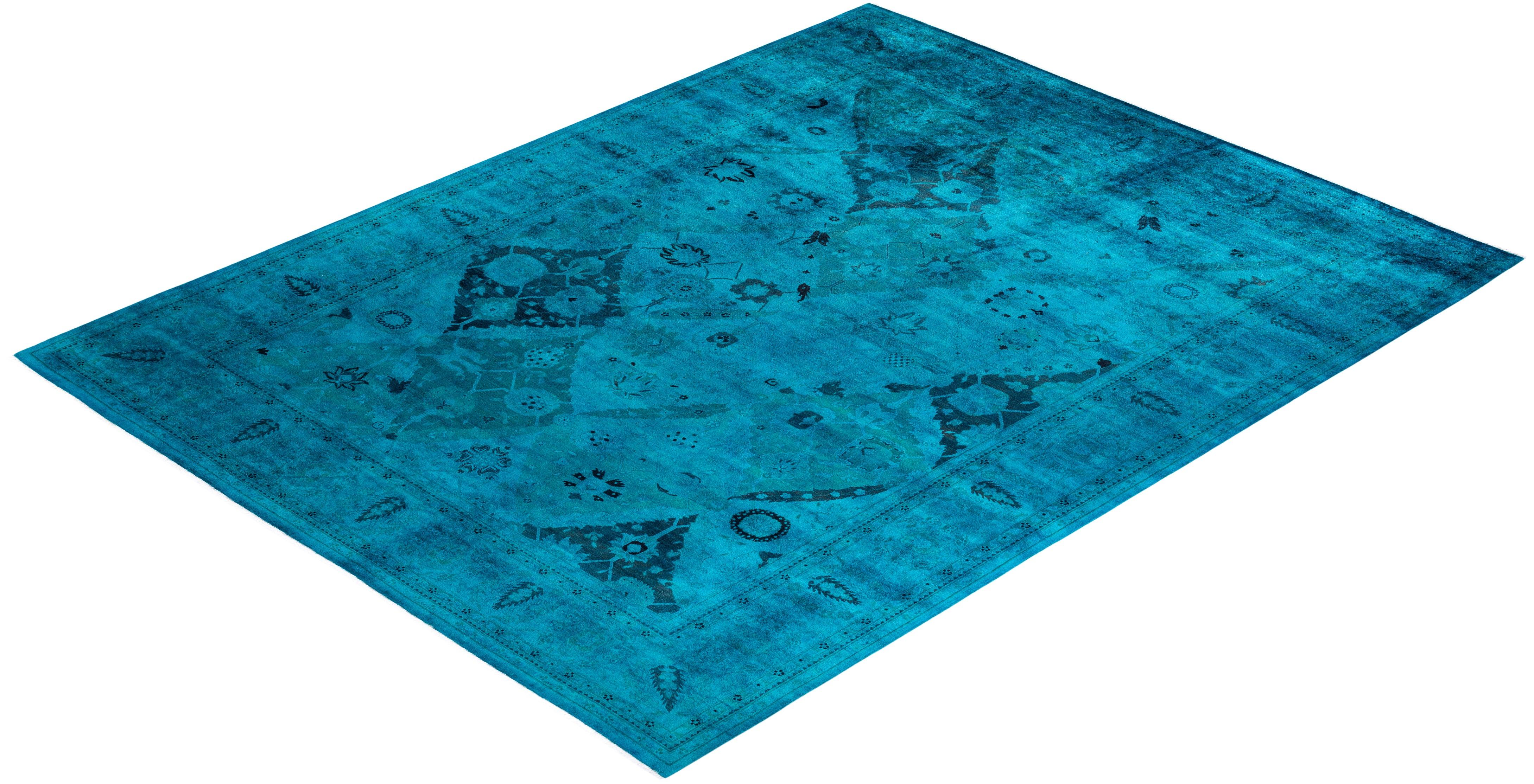 Contemporary Hand-Knotted Blue Area Rug 9' 1" x 12' 1"