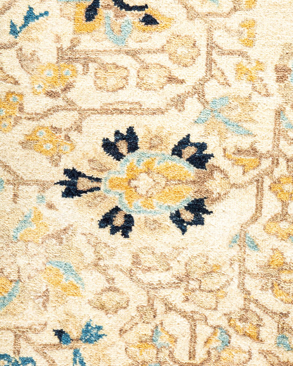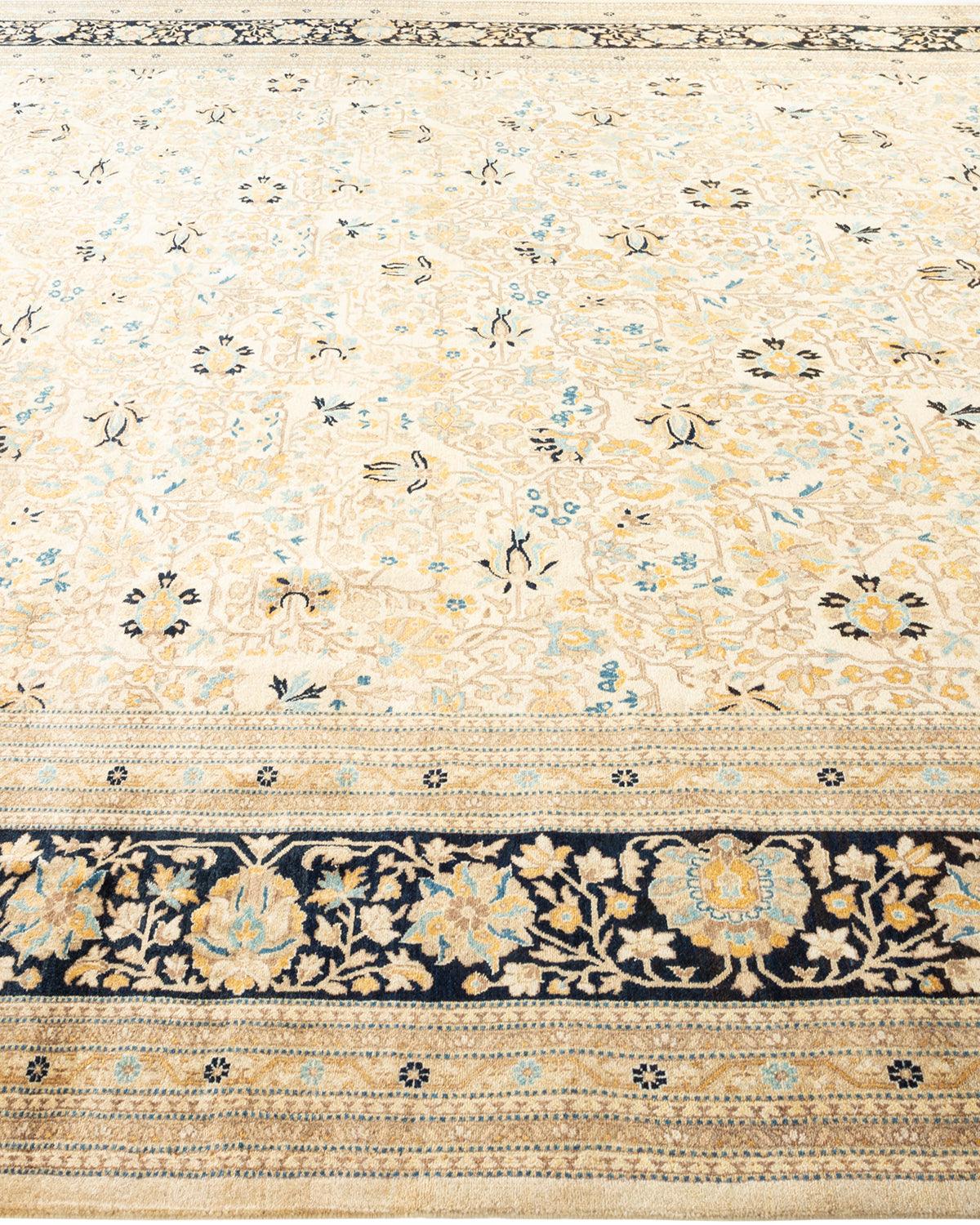 Traditional Hand Knotted Mogul Floral Ivory Area Rug 9' 3" x 11' 9"