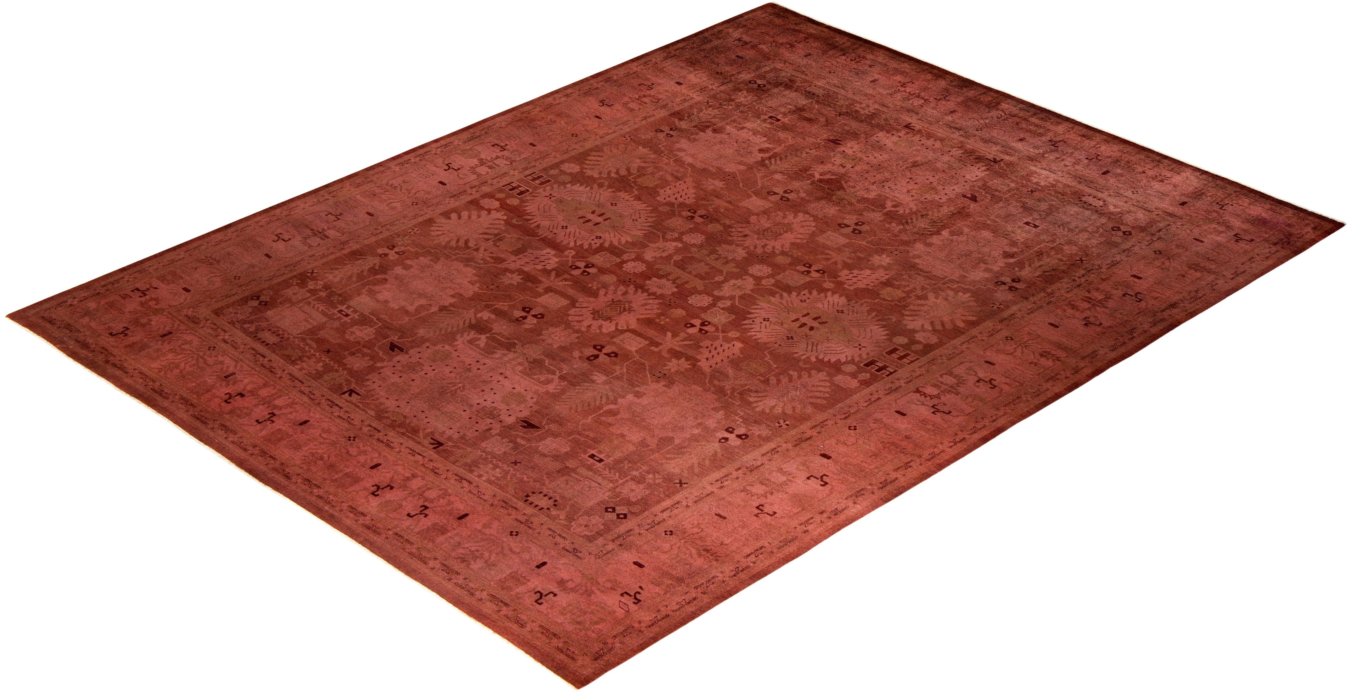 Contemporary Hand-Knotted Brown Area Rug 9' 3" x 11' 10"