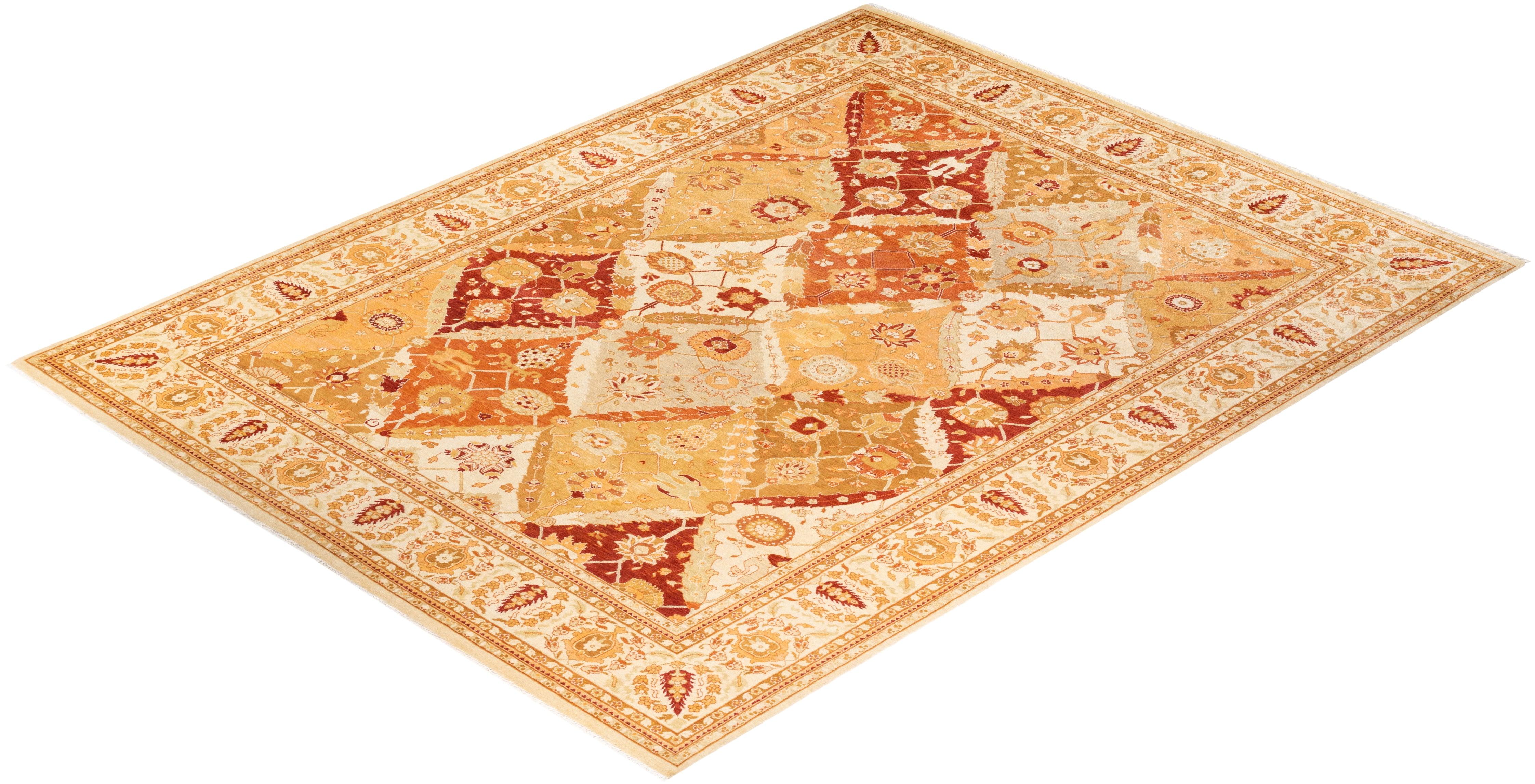 Contemporary Hand Knotted Eclectic Ivory Area Rug 9' 1" x 12' 1"