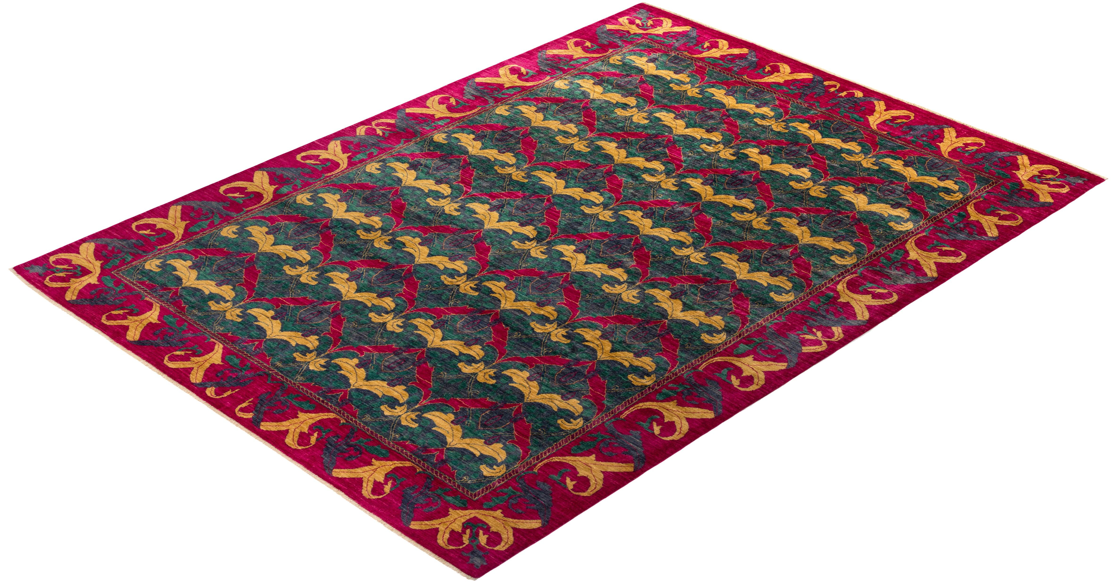 Contemporary Hand Knotted Arts & Crafts Floral Purple Area Rug 8' 10" x 11' 7"