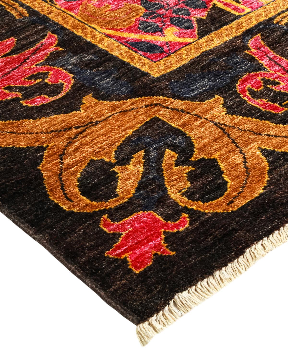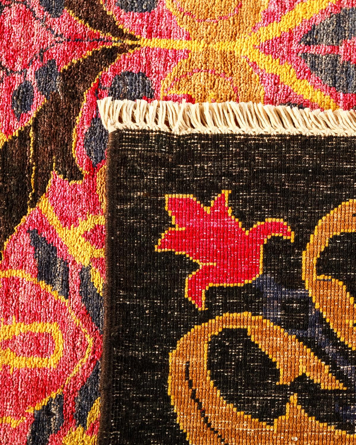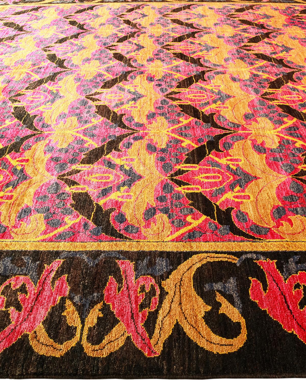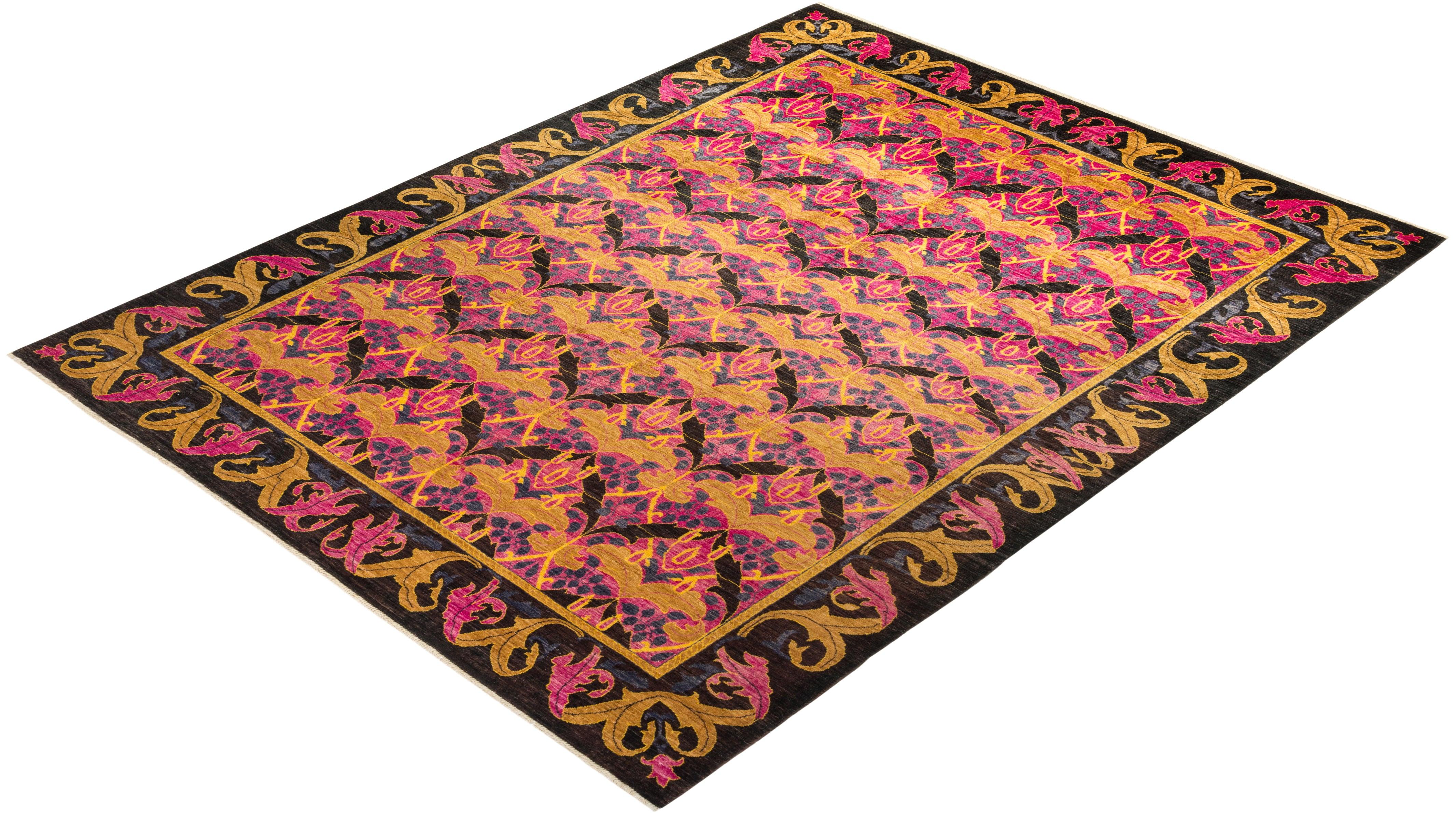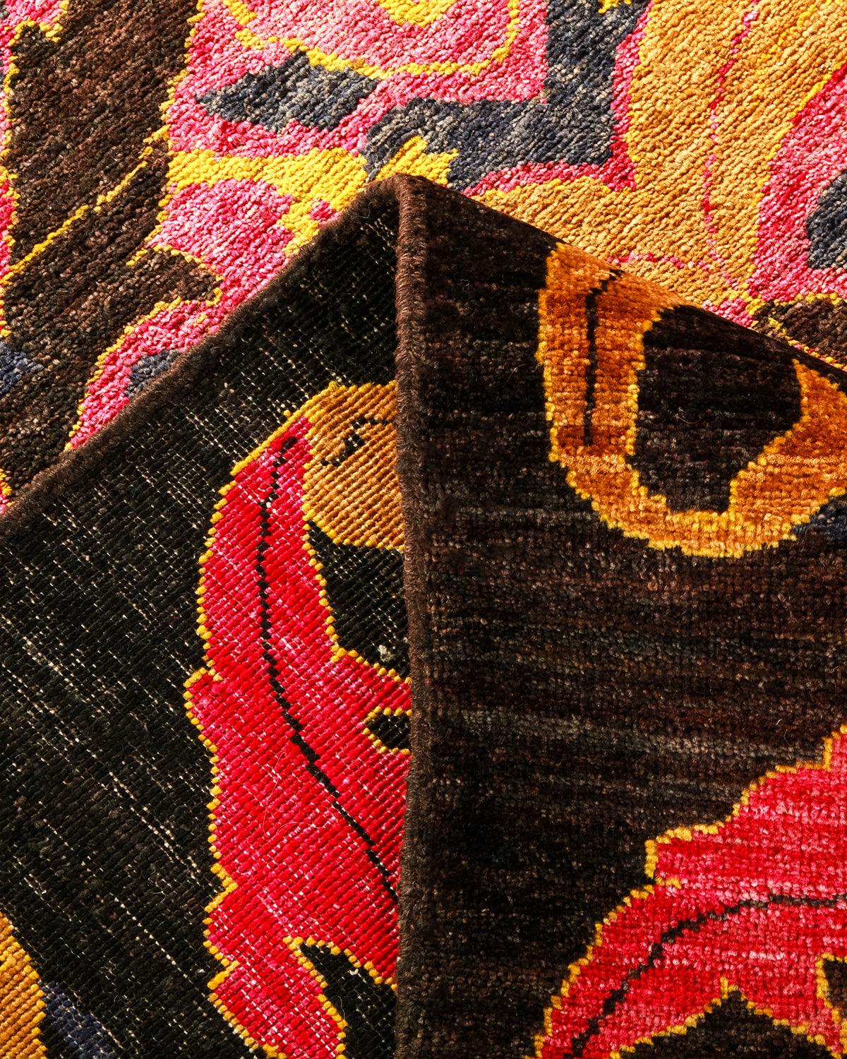 Contemporary Hand Knotted Arts & Crafts Floral Black Area Rug 9' 1" x 12' 4"