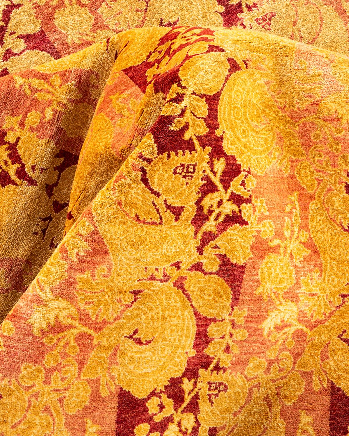 Traditional Hand Knotted Mogul Floral Pink Area Rug 9' 2" x 11' 9"