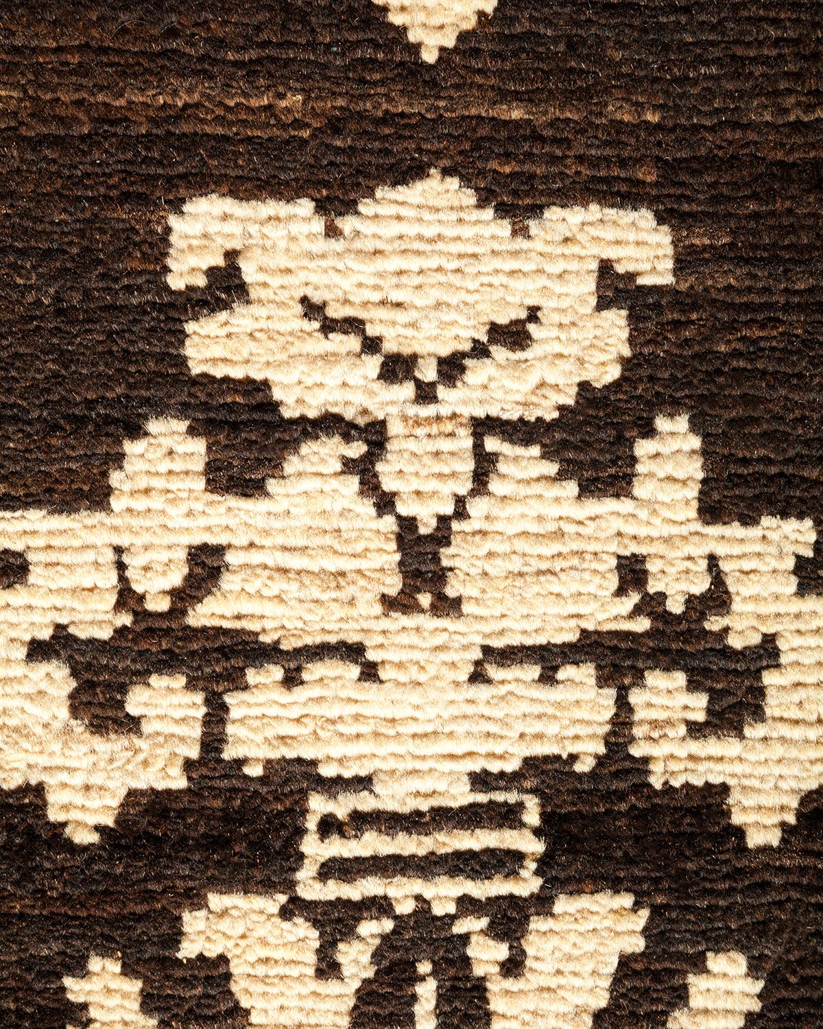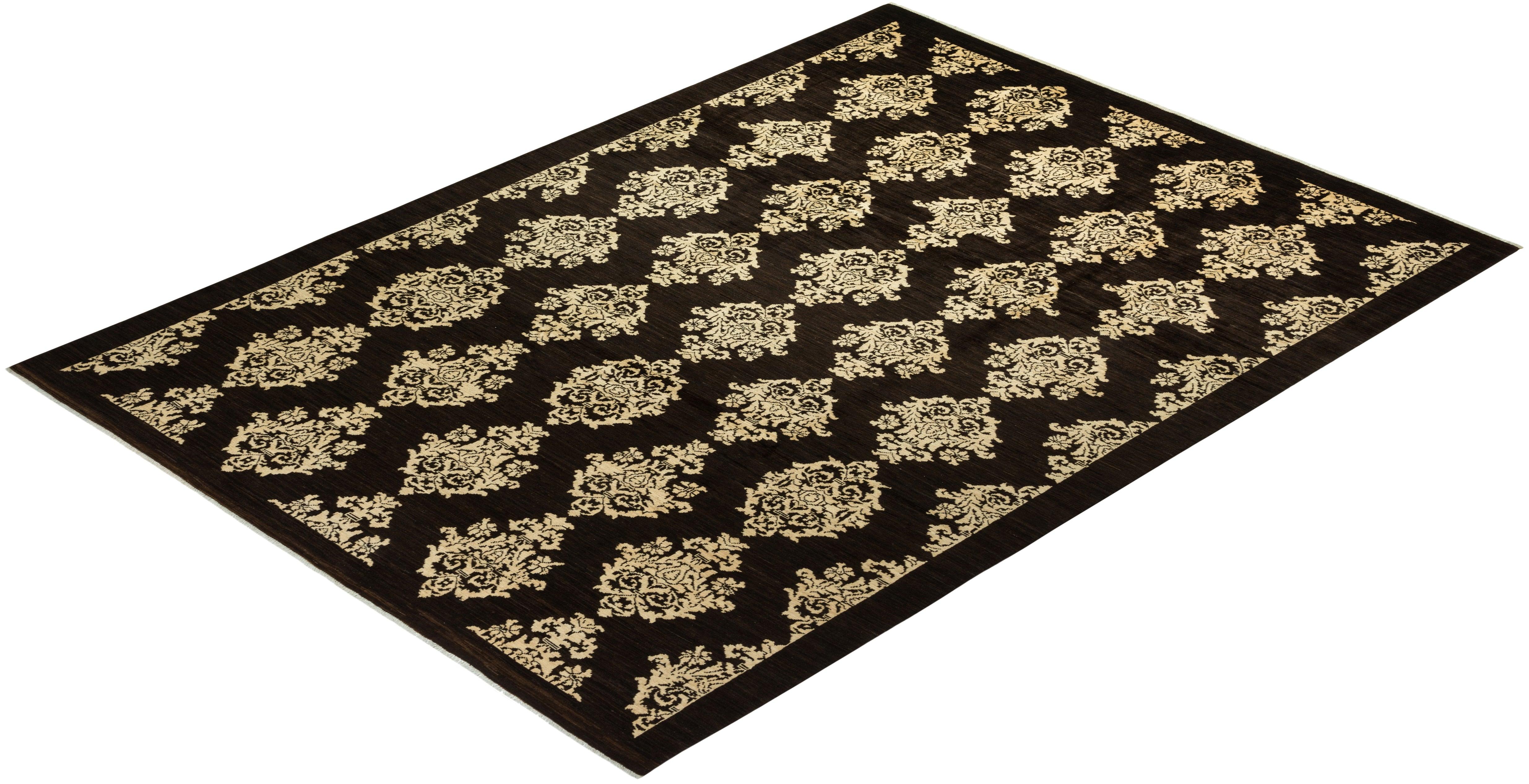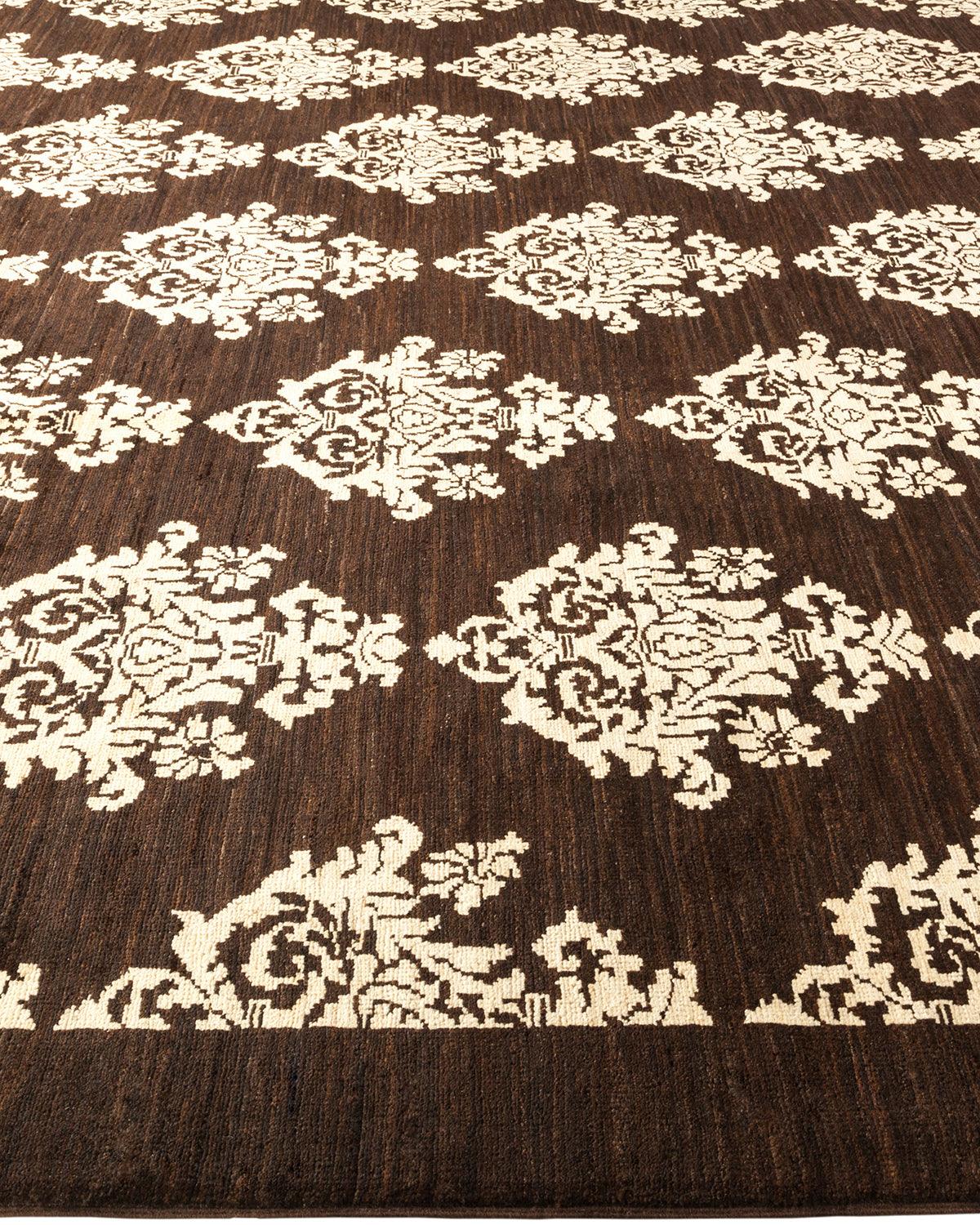 Contemporary Hand Knotted Eclectic Damask Brown Area Rug 9' 0" x 12' 4"