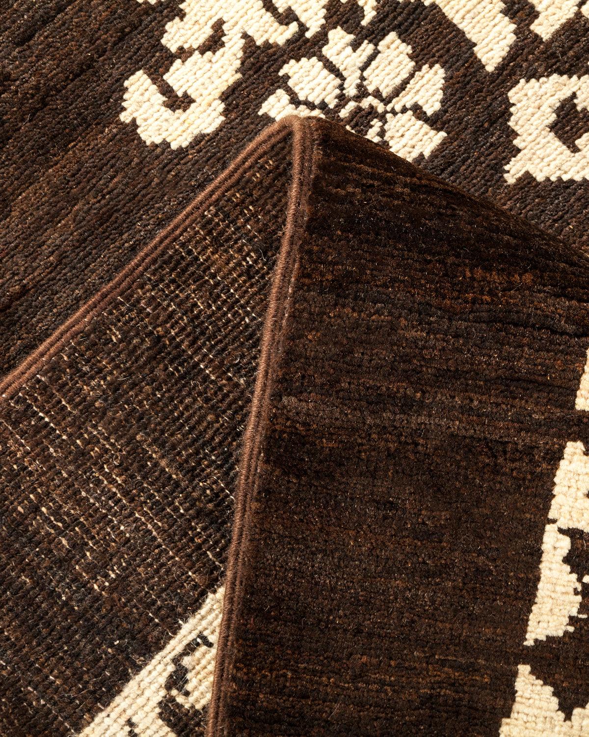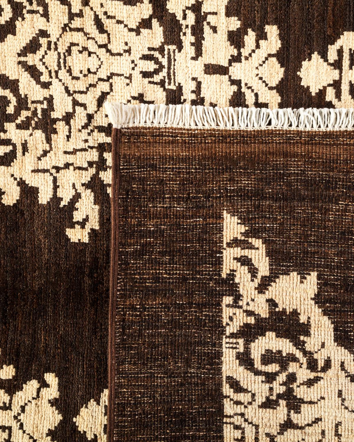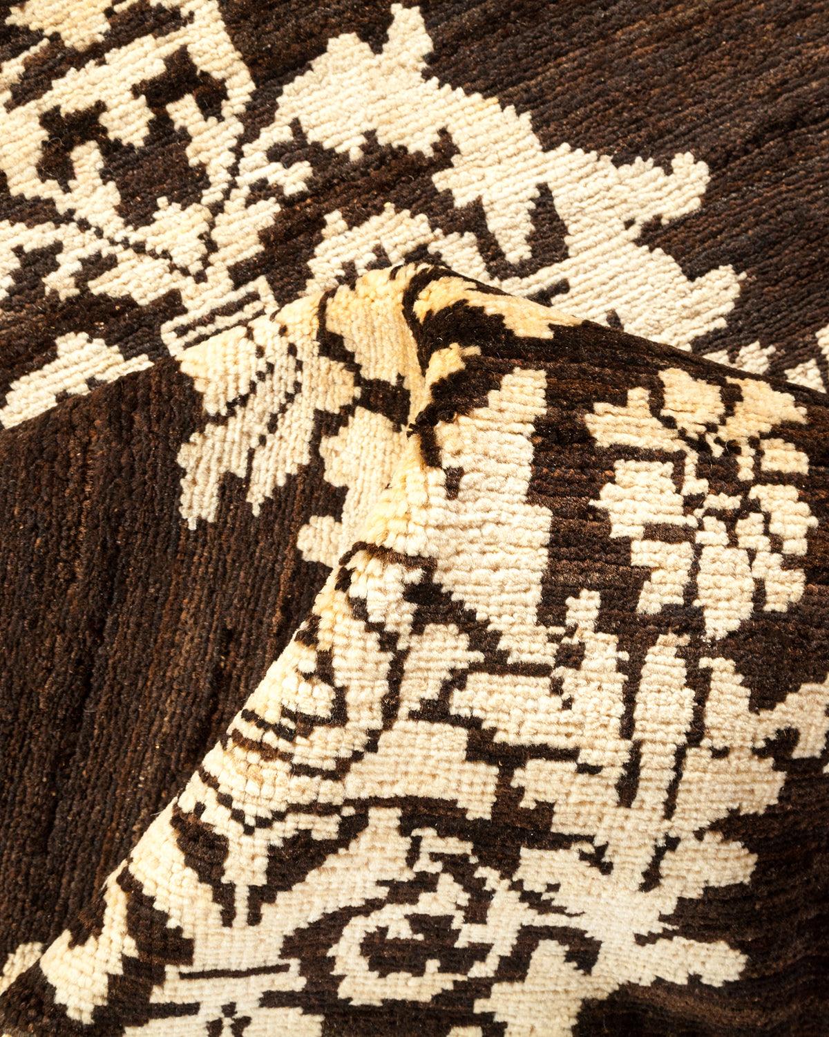 Contemporary Hand Knotted Eclectic Damask Brown Area Rug 9' 0" x 12' 4"