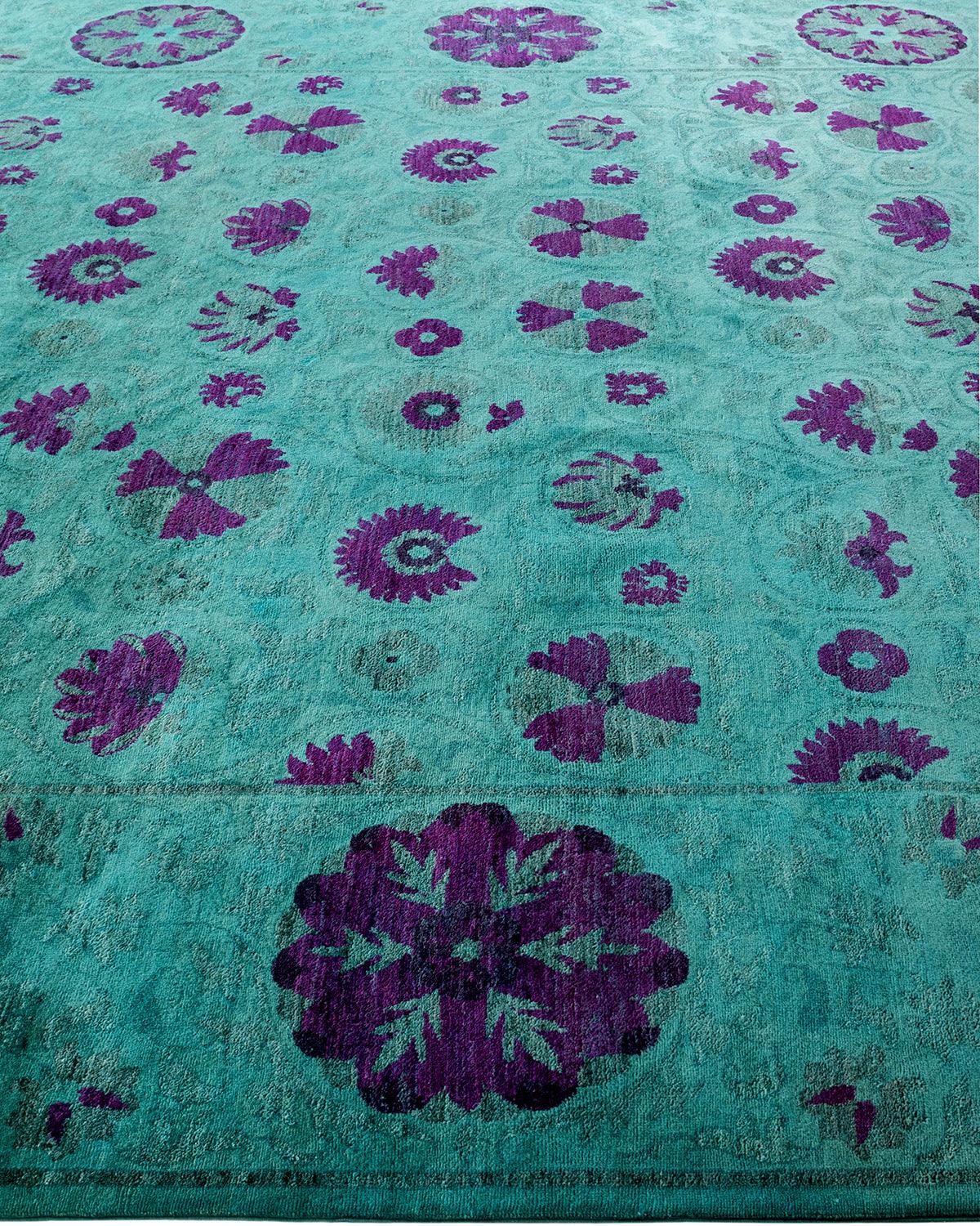 Contemporary Hand-Knotted Green Area Rug 9' 2" x 12' 1"