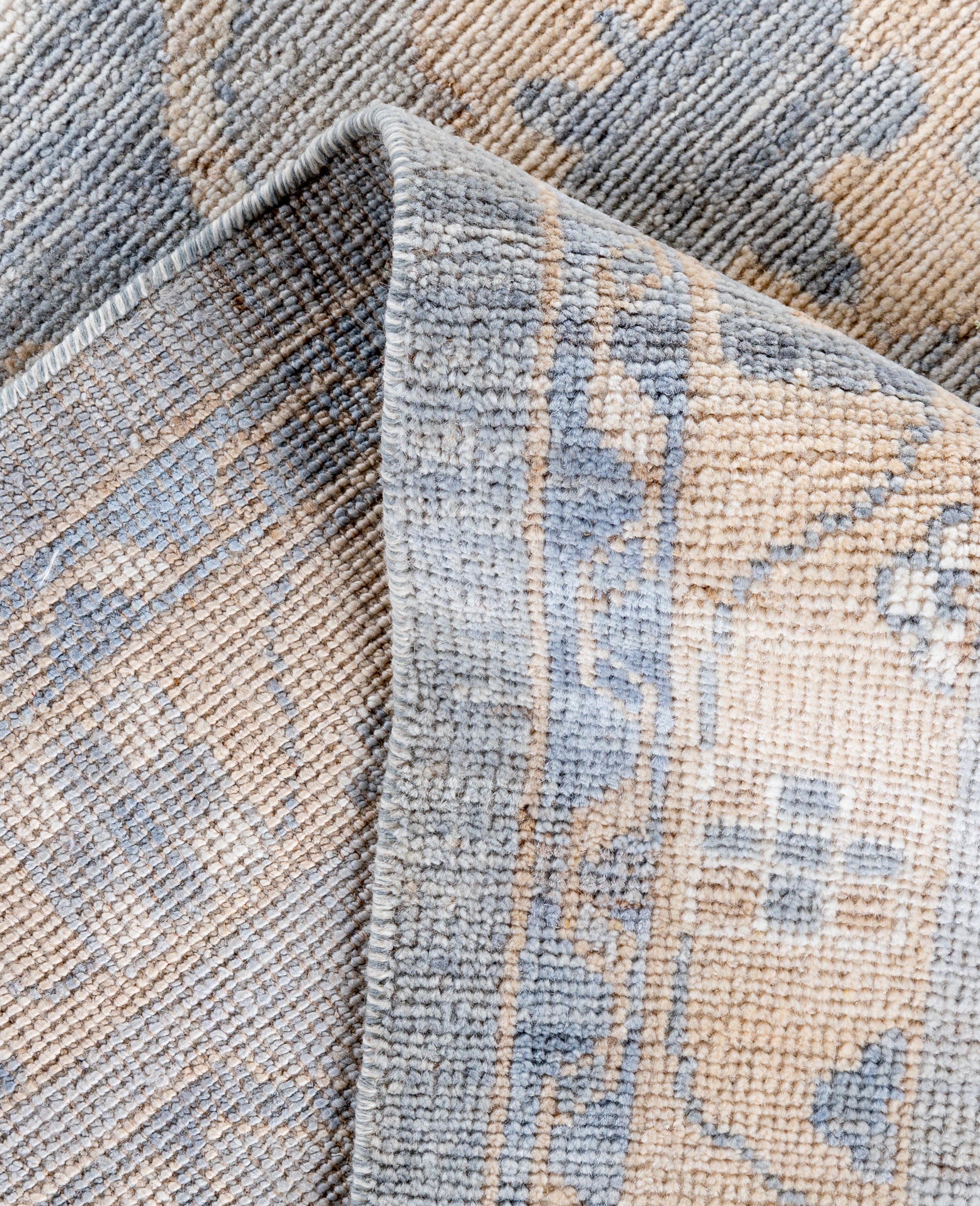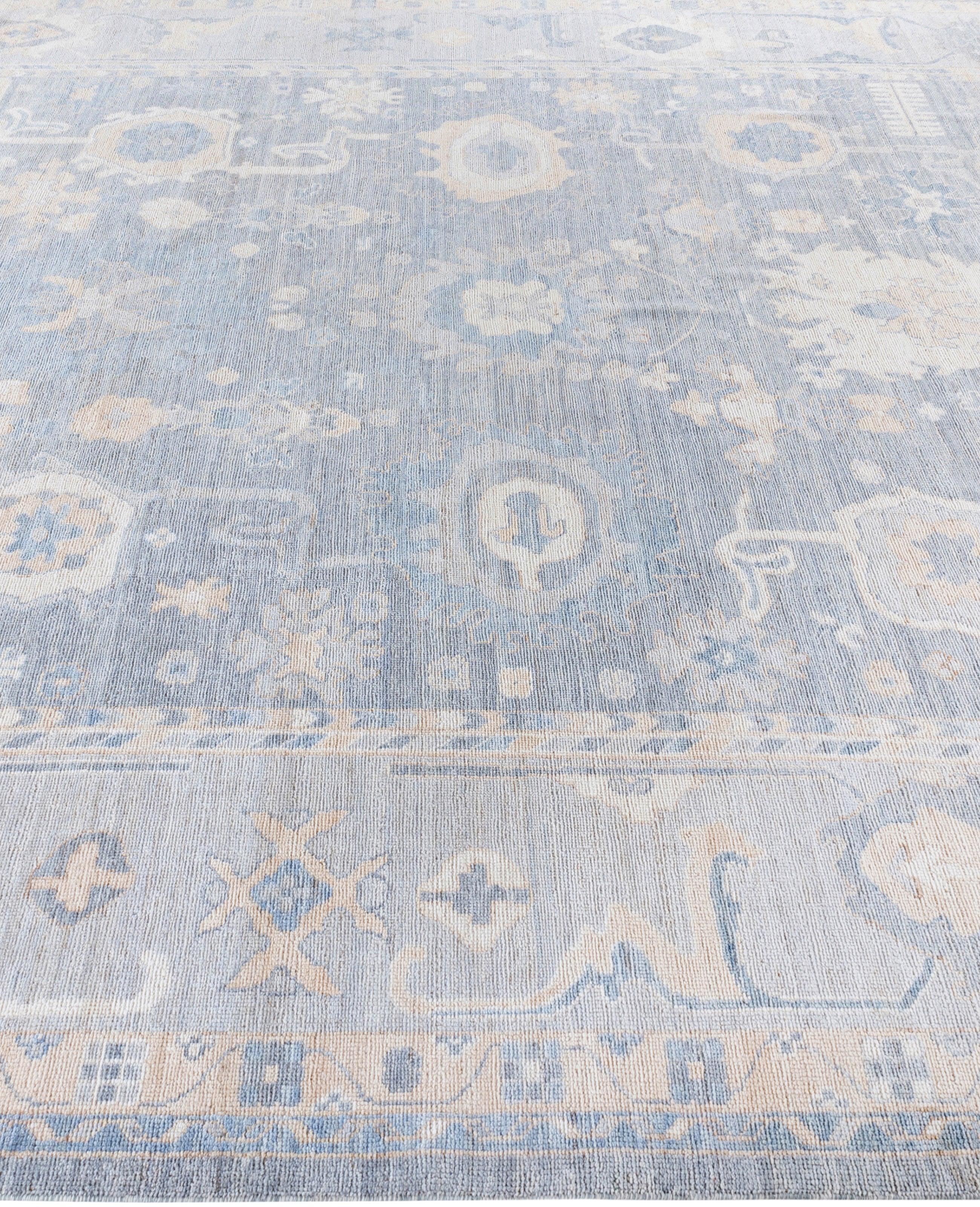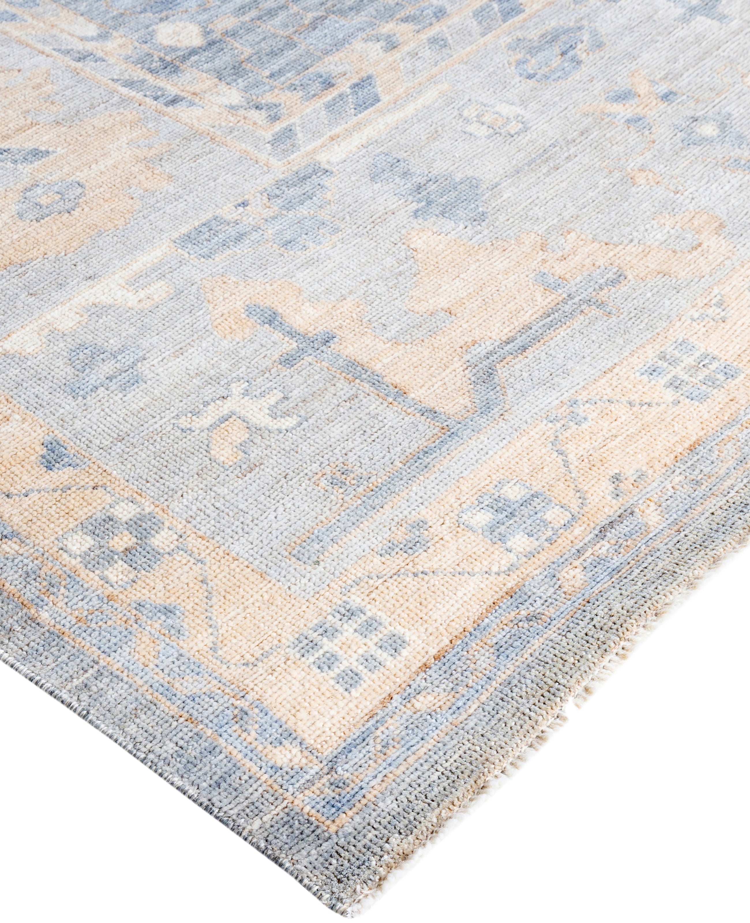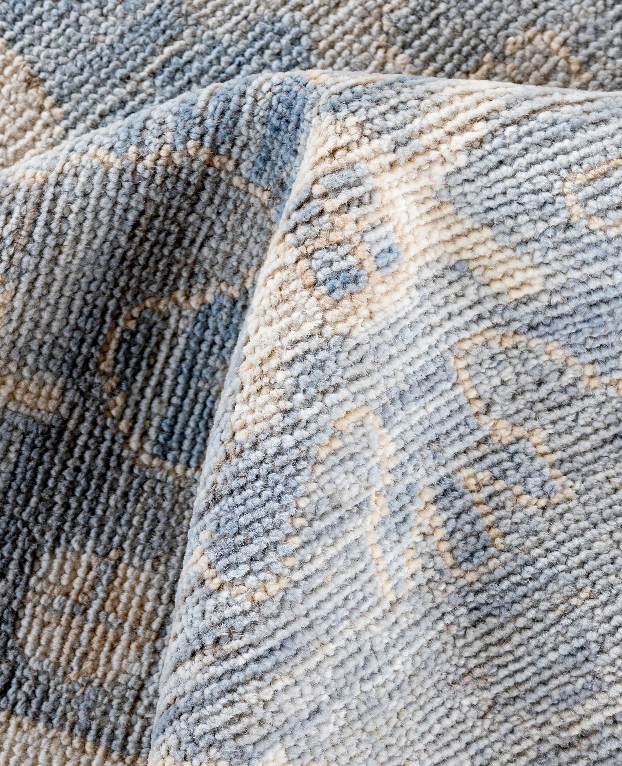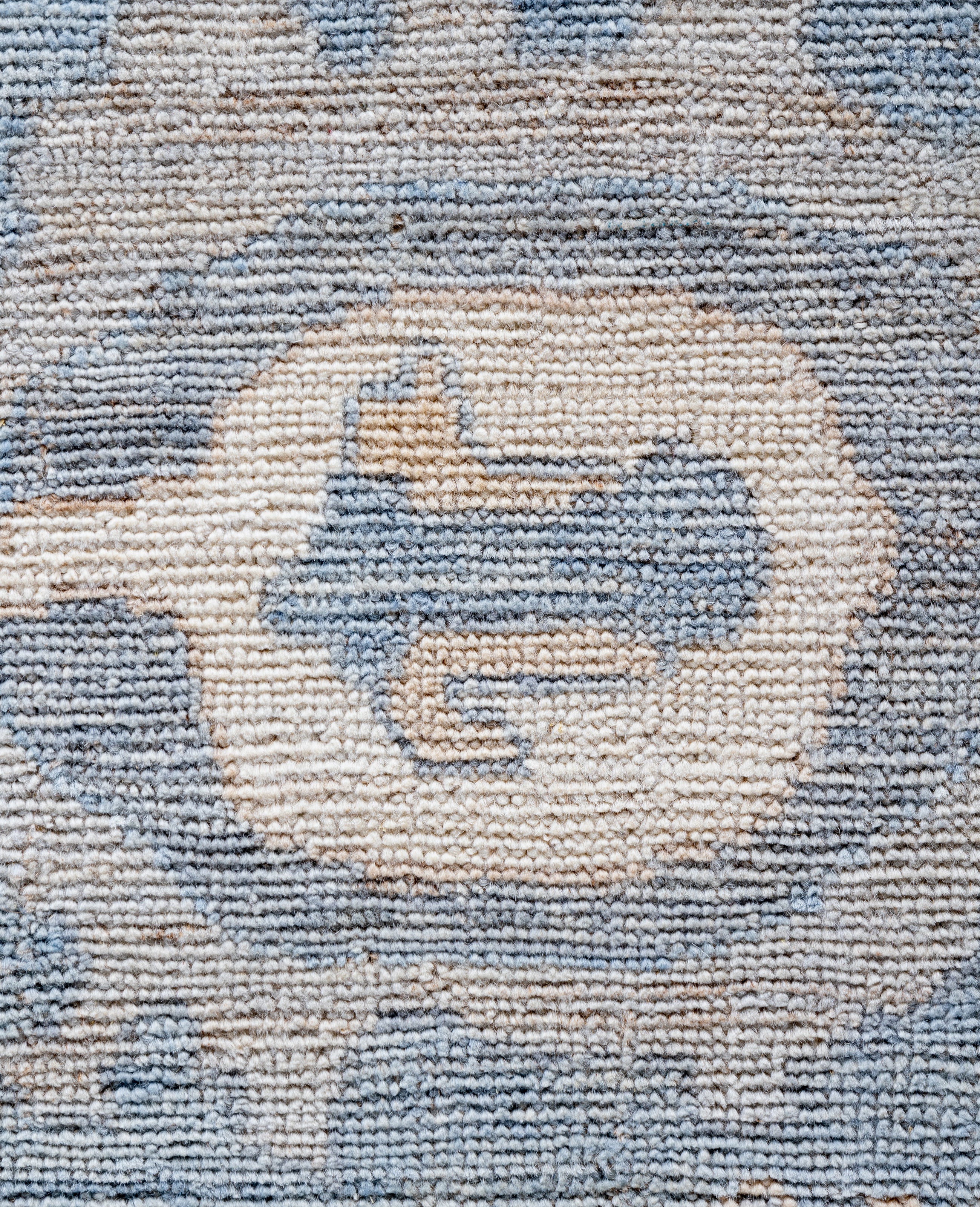 Oushak rugs are known for their soft, muted color palettes and large-scale, flowing designs. They often feature soft tones like beige, cream, gold, and light blue, with motifs that include palmettes, vines, and geometric shapes. These rugs are distinguished by their loose, open patterns, giving them an airy and elegant feel. Originating from the town of Oushak, they emphasize simplicity and a more relaxed aesthetic compared to other ornate designs. Hand-knotted using high-quality wool, Oushak rugs are celebrated for their luxurious texture and durability. Their timeless, understated beauty makes them popular in both traditional and contemporary interiors.