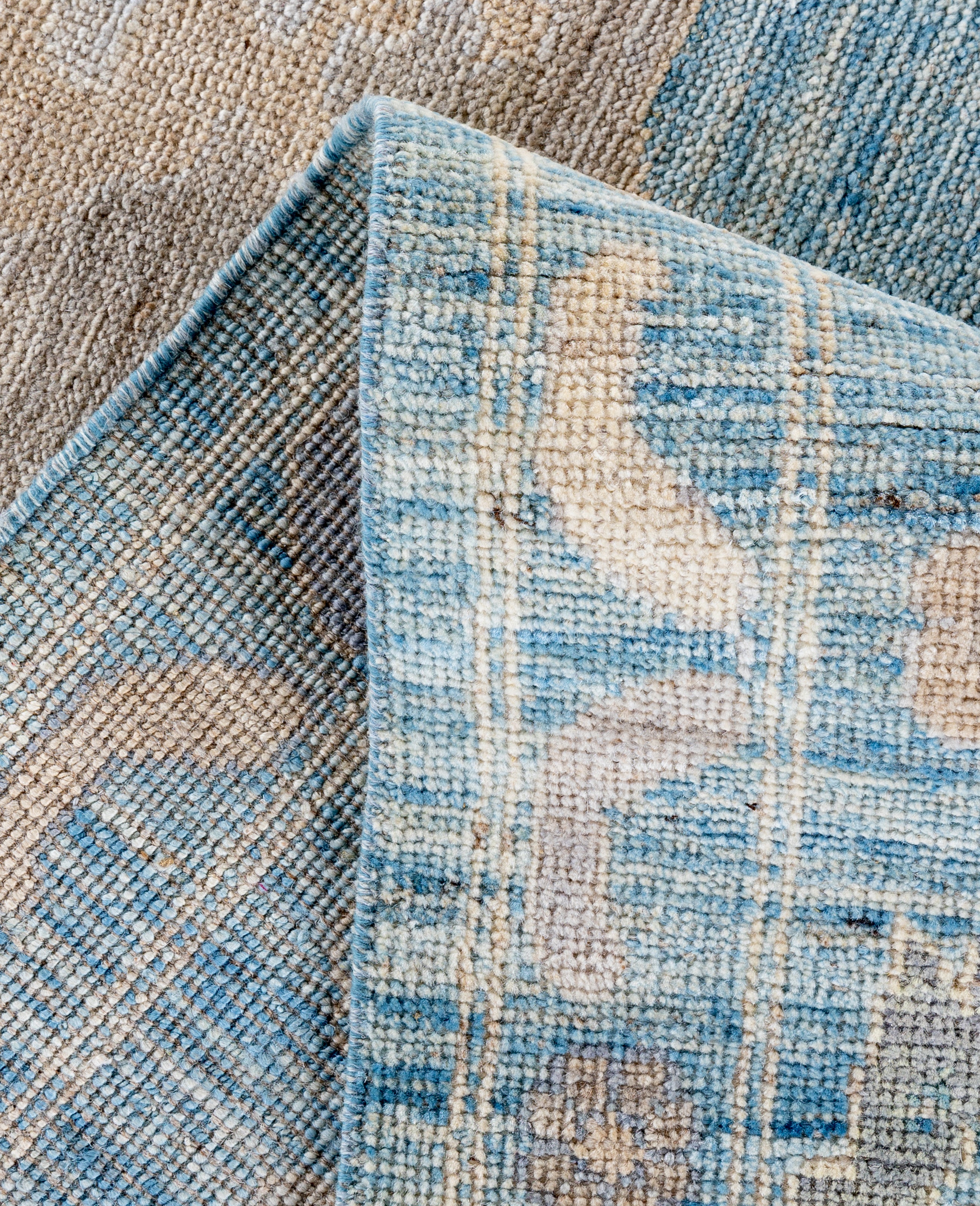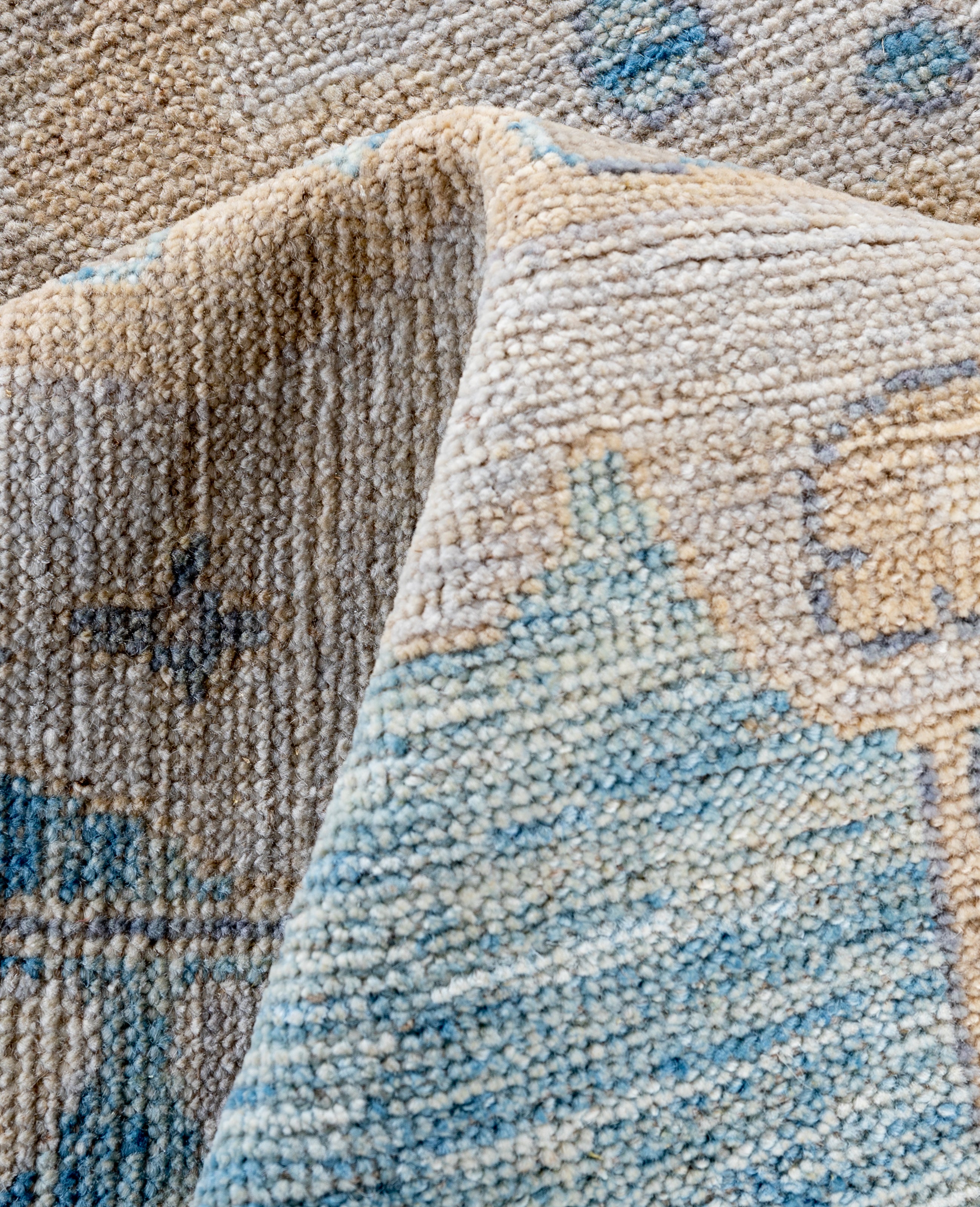 Oushak rugs are known for their soft, muted color palettes and large-scale, flowing designs. They often feature soft tones like beige, cream, gold, and light blue, with motifs that include palmettes, vines, and geometric shapes. These rugs are distinguished by their loose, open patterns, giving them an airy and elegant feel. Originating from the town of Oushak, they emphasize simplicity and a more relaxed aesthetic compared to other ornate designs. Hand-knotted using high-quality wool, Oushak rugs are celebrated for their luxurious texture and durability. Their timeless, understated beauty makes them popular in both traditional and contemporary interiors.