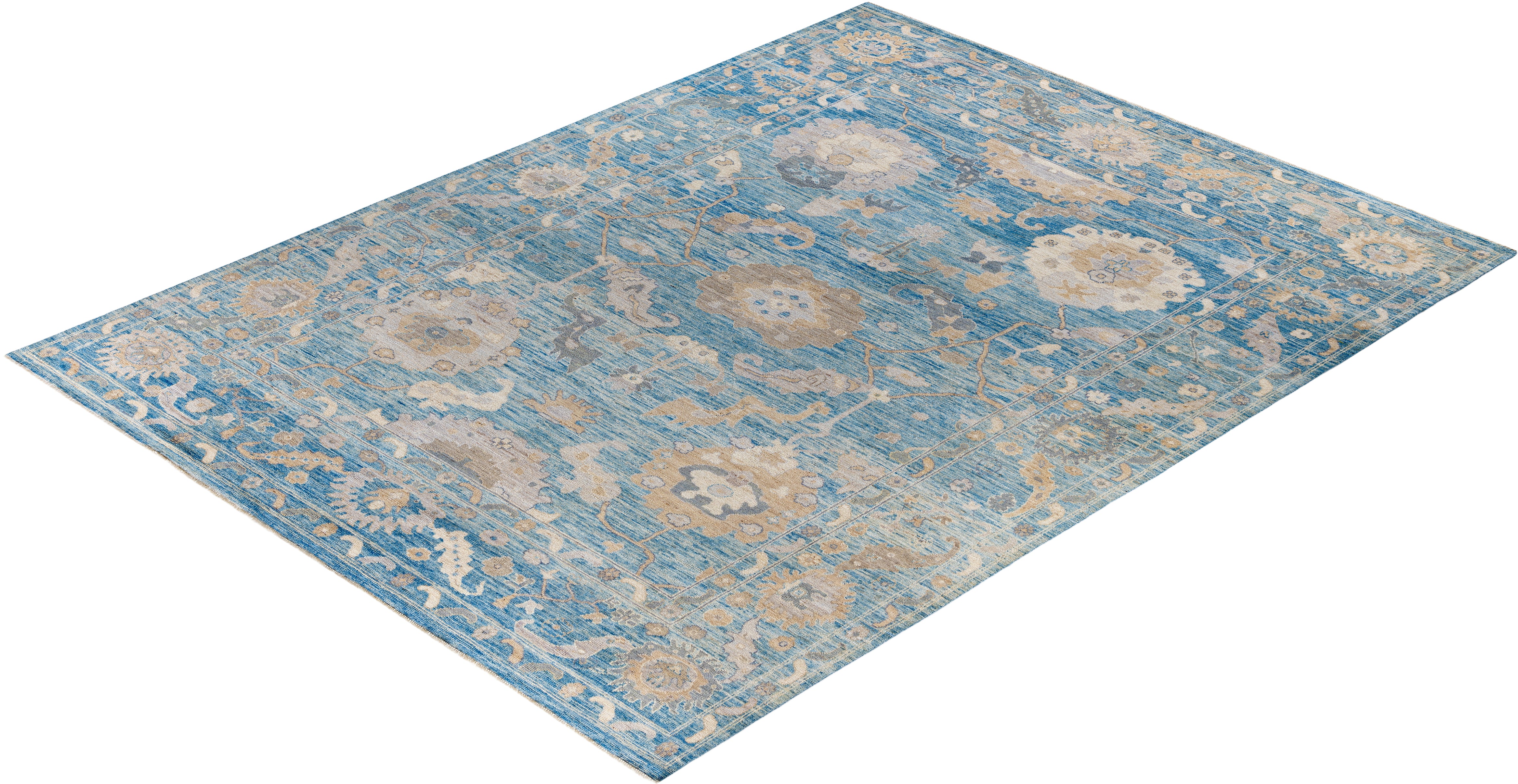 Oushak One of a kind Wool Light Blue Area Rug 9' 0" x 11' 10"