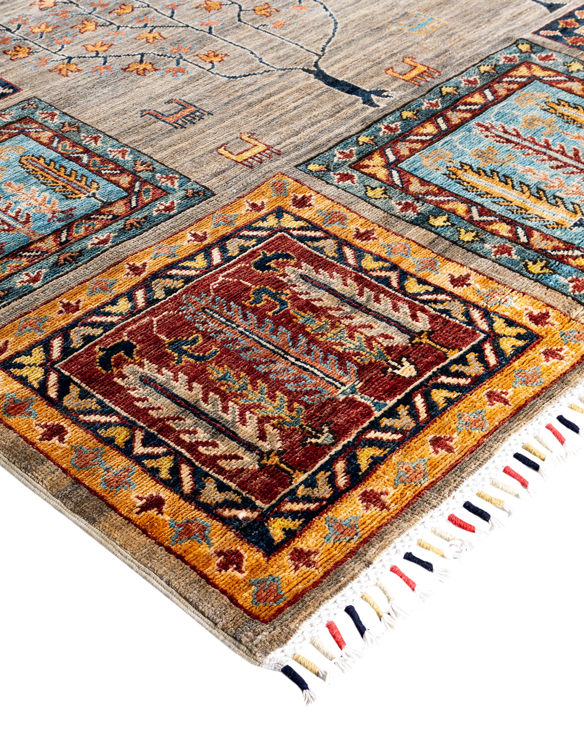 Bohemian Tribal Wool Hand Knotted Fawn Area Rug 9' 1" x 11' 9"