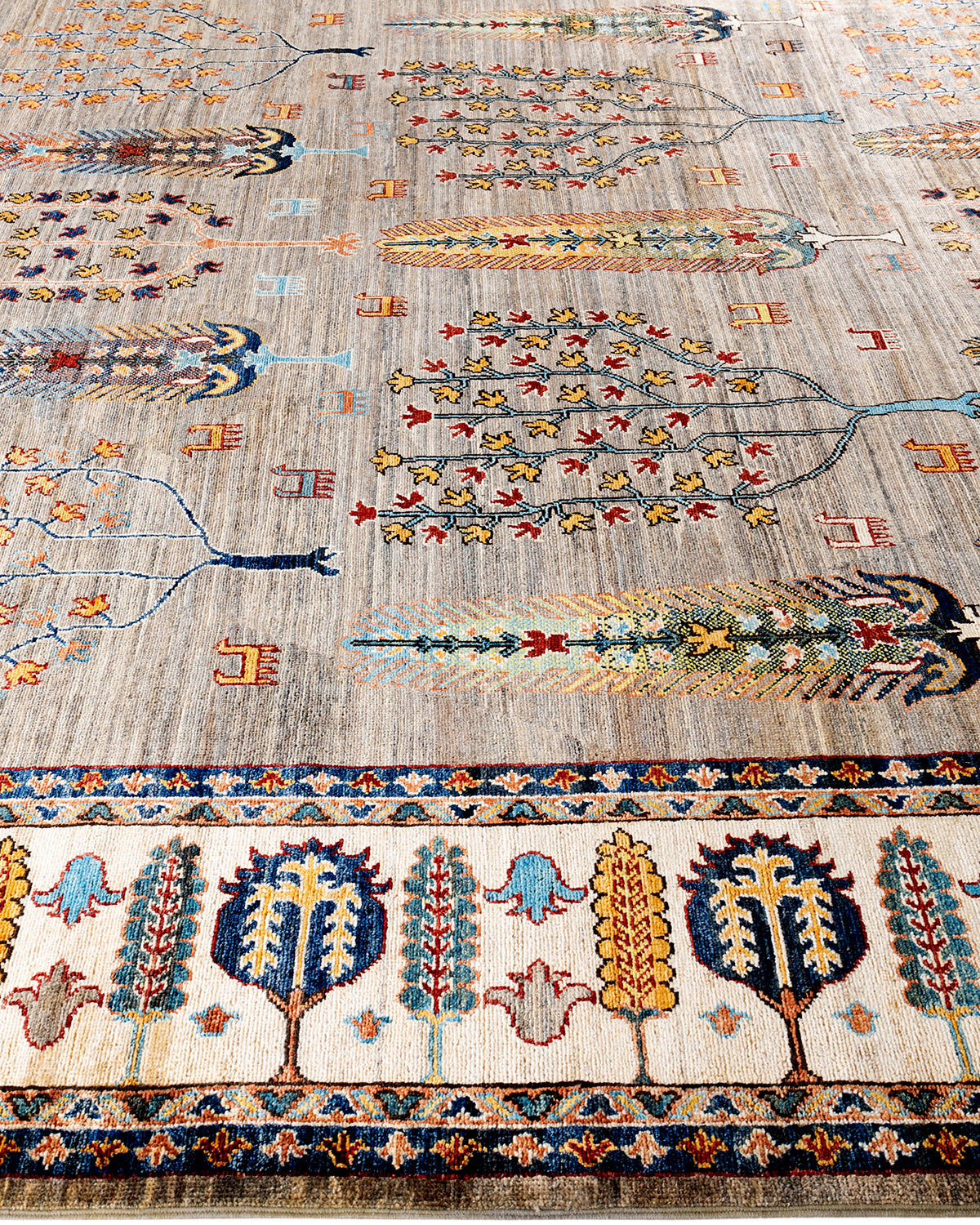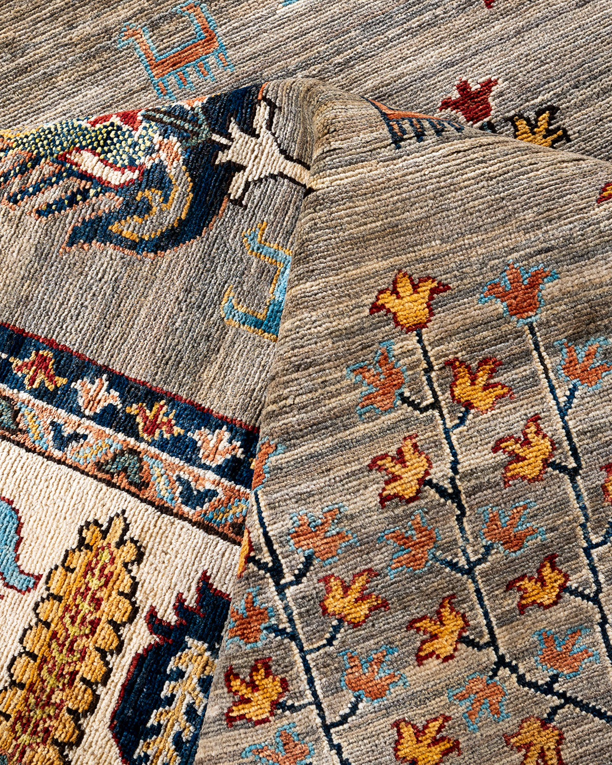 The rich textile tradition of western Africa inspired the Tribal collection of hand-knotted rugs. Incorporating a medley of geometric motifs, in palettes ranging from earthy to vivacious, these rugs bring a sense of energy as well as plush texture to any room.