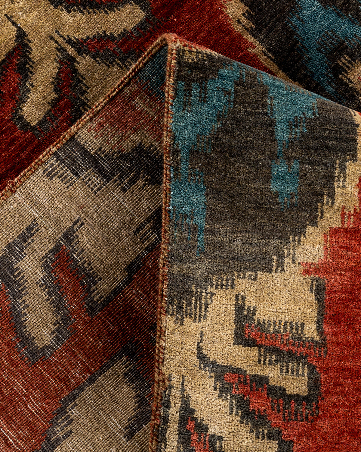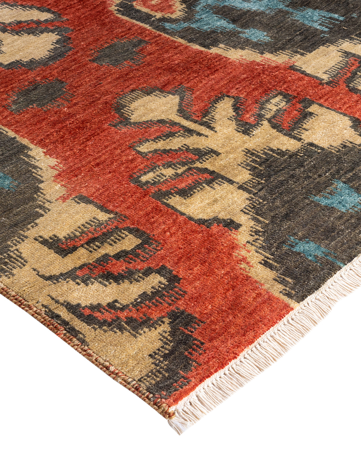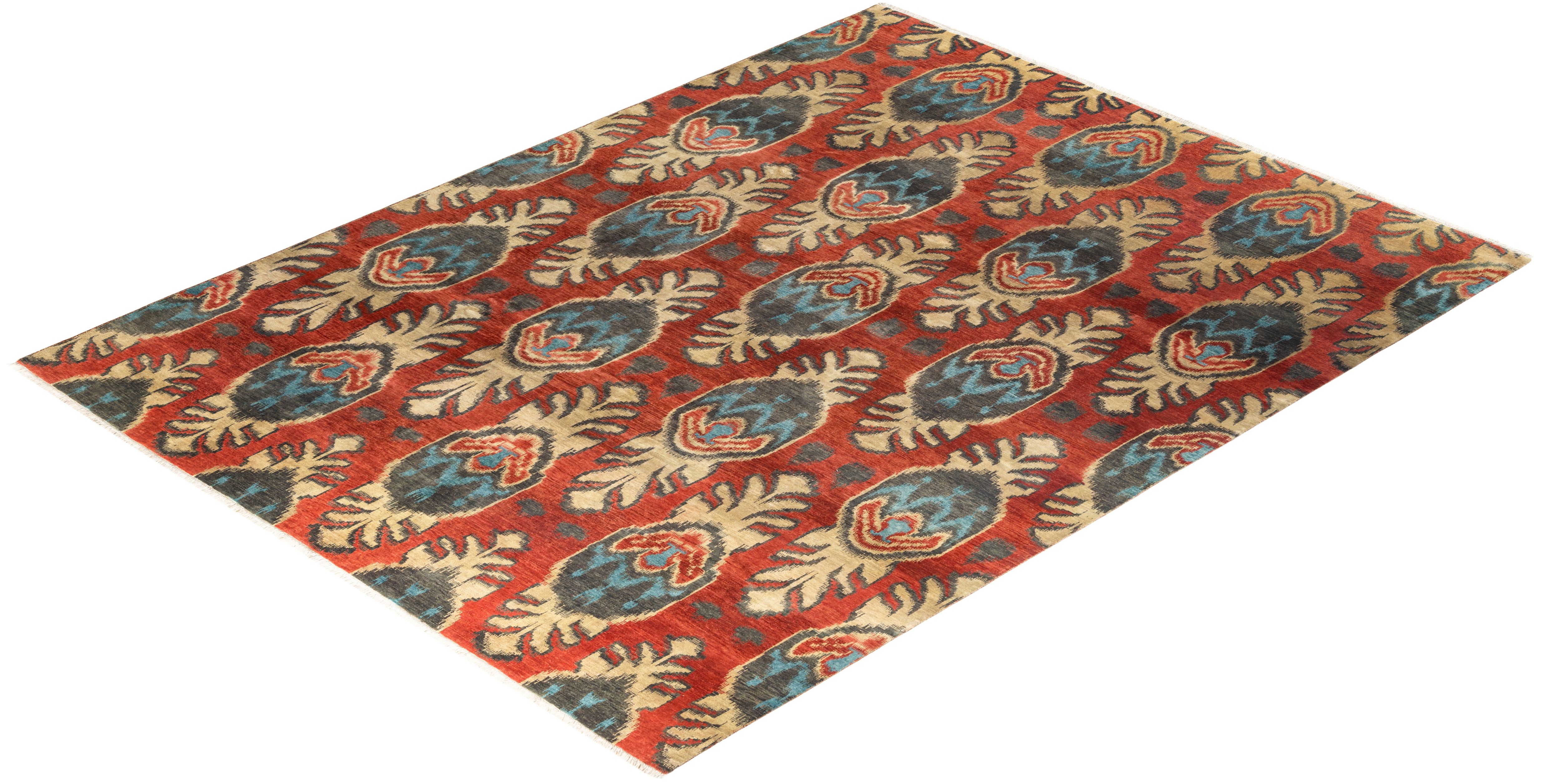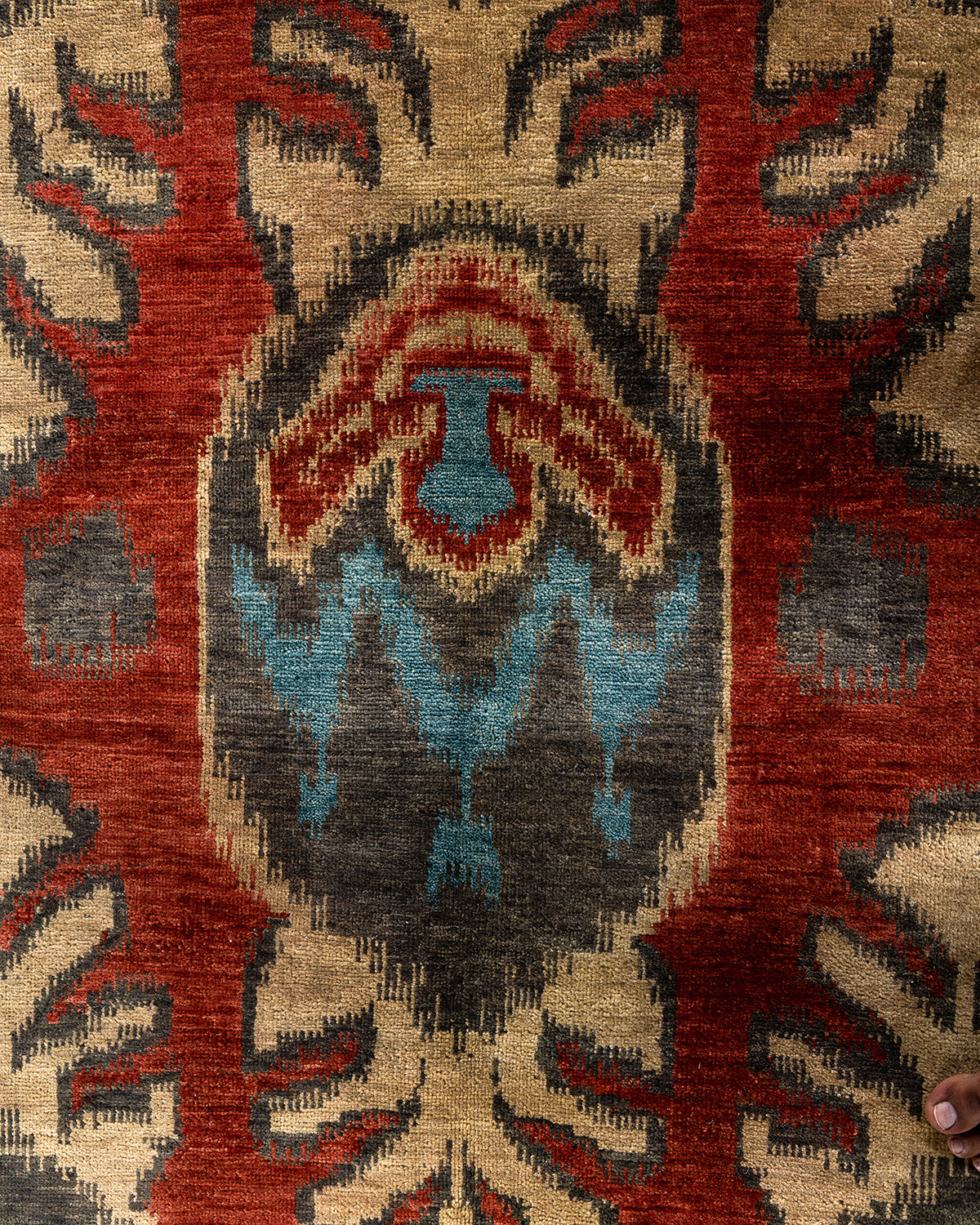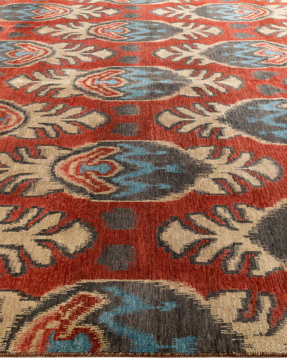 Traditional Ikat Hand Knotted Floral Wool Red Area Rug 9' 1" x 11' 9"
