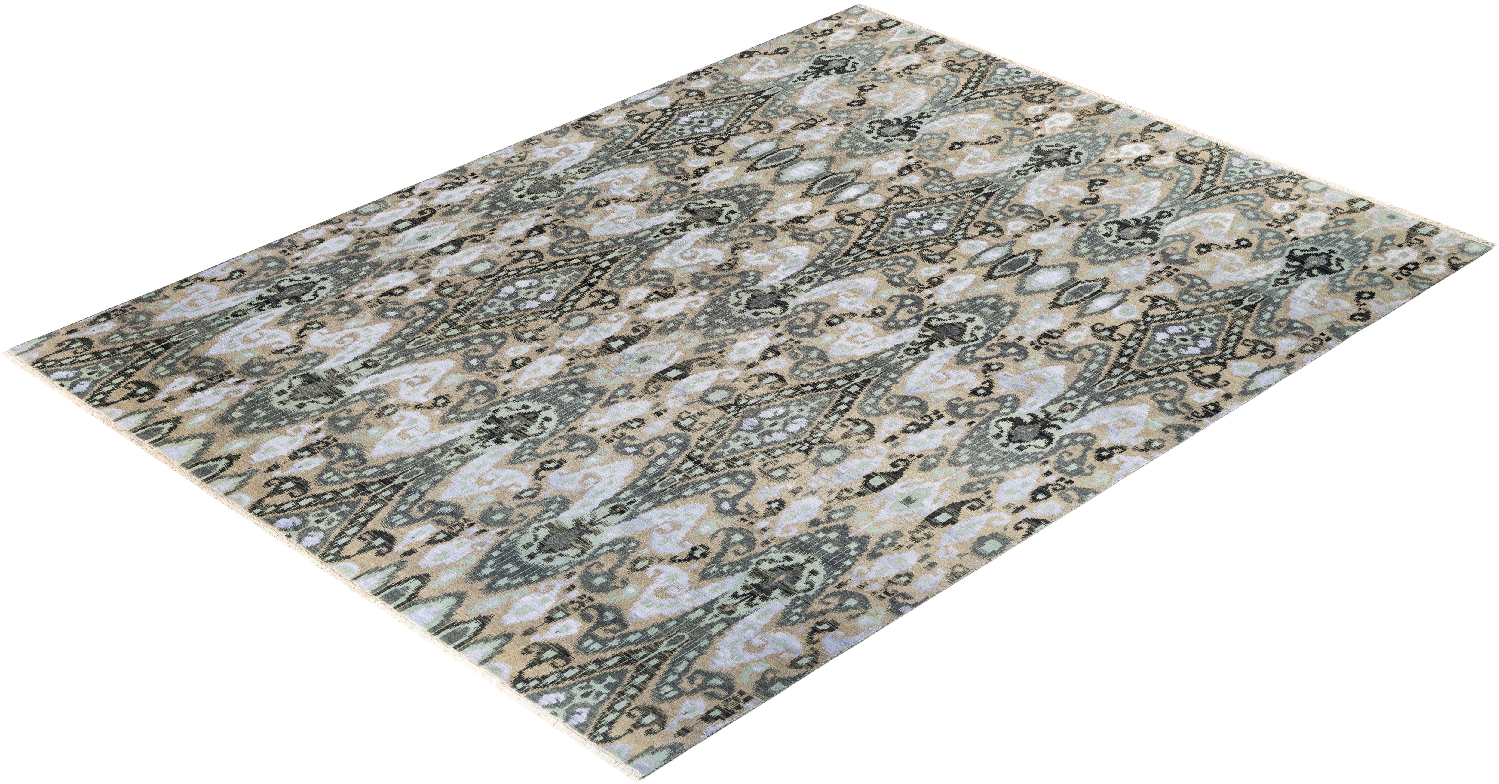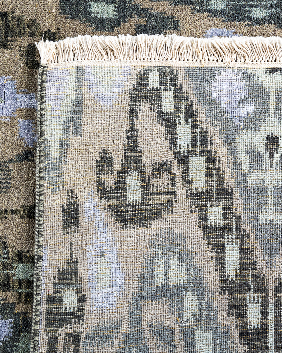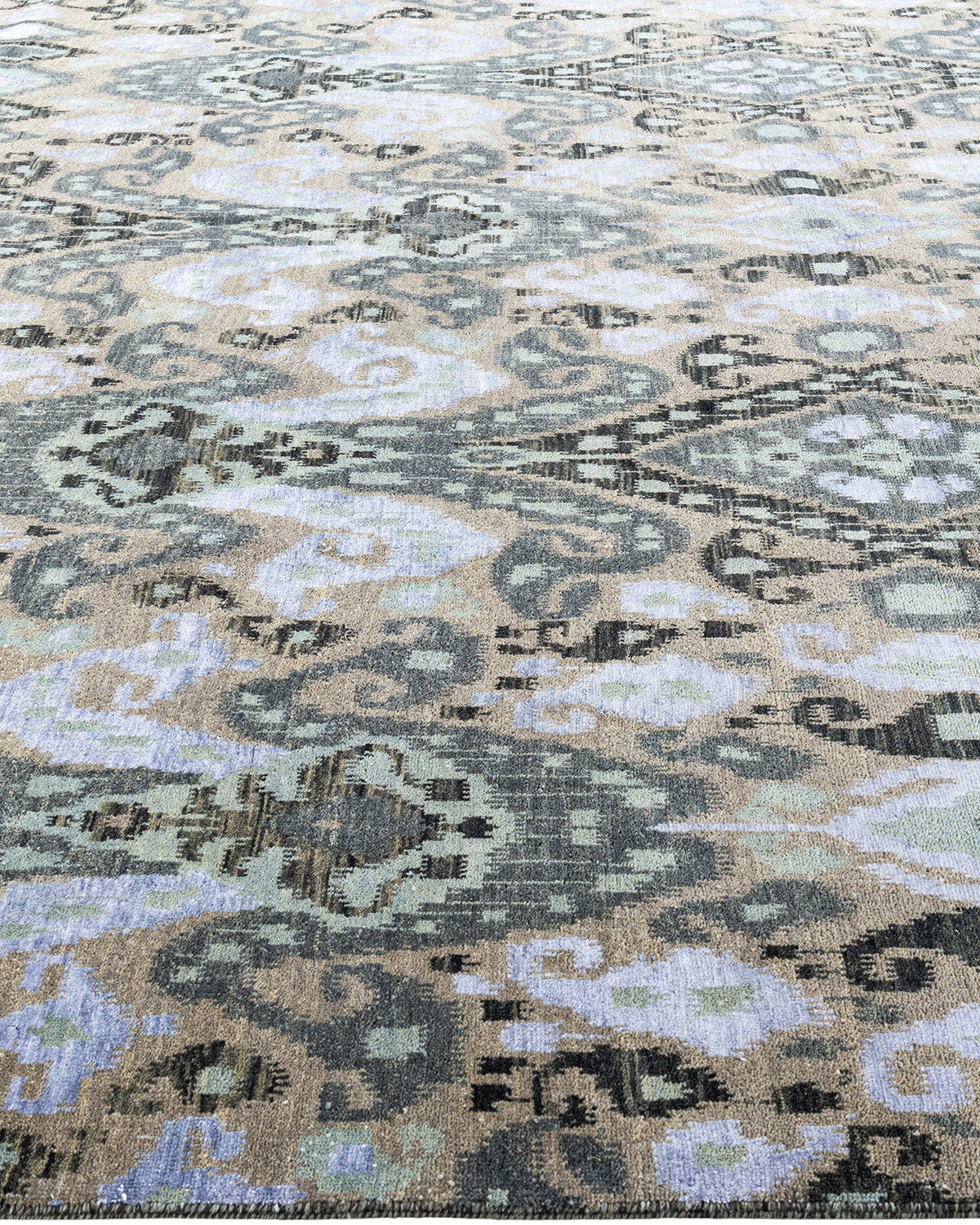 Traditional Ikat Hand Knotted Floral Silk & Wool Blend Green Area Rug 9' 1" x 12' 2"