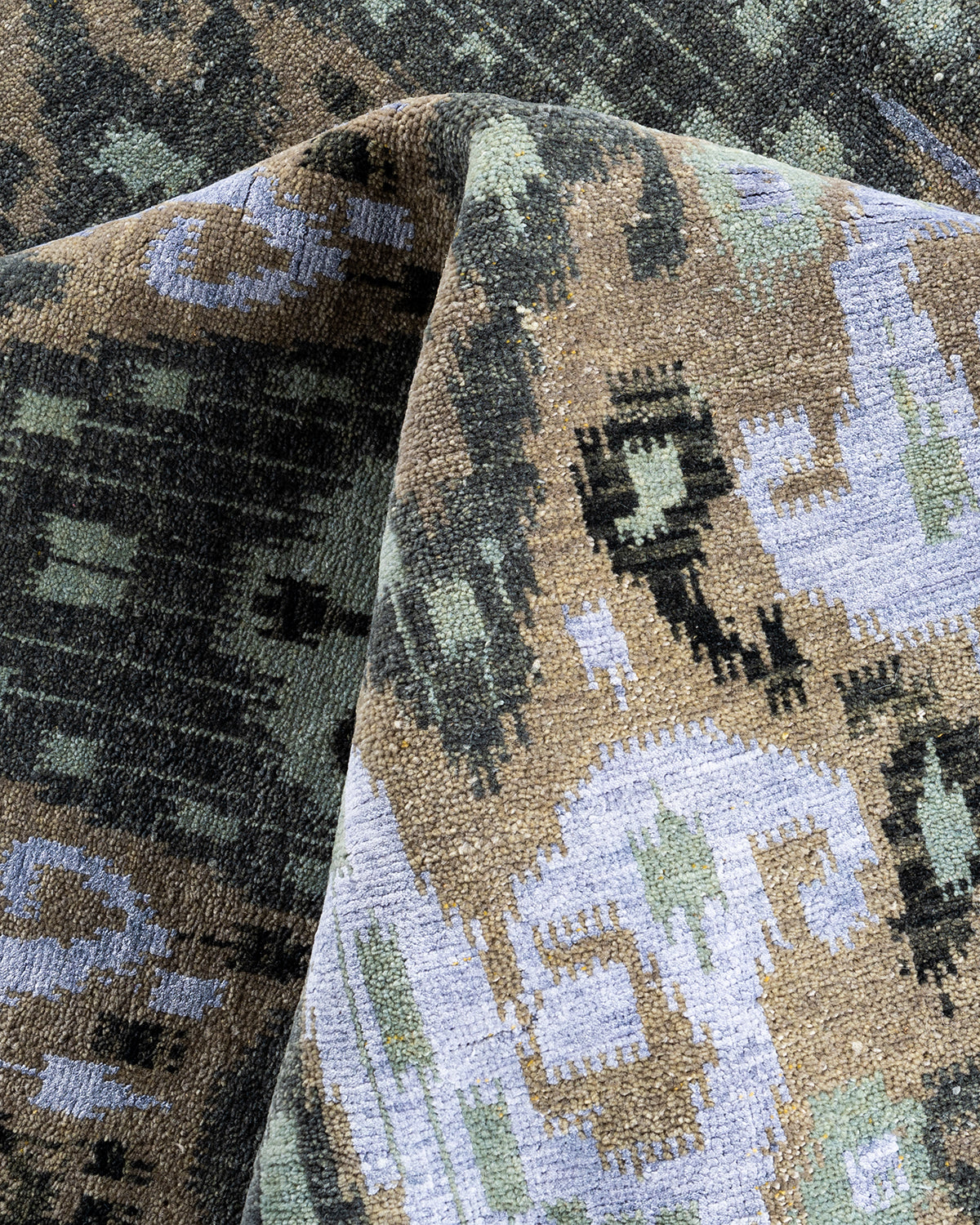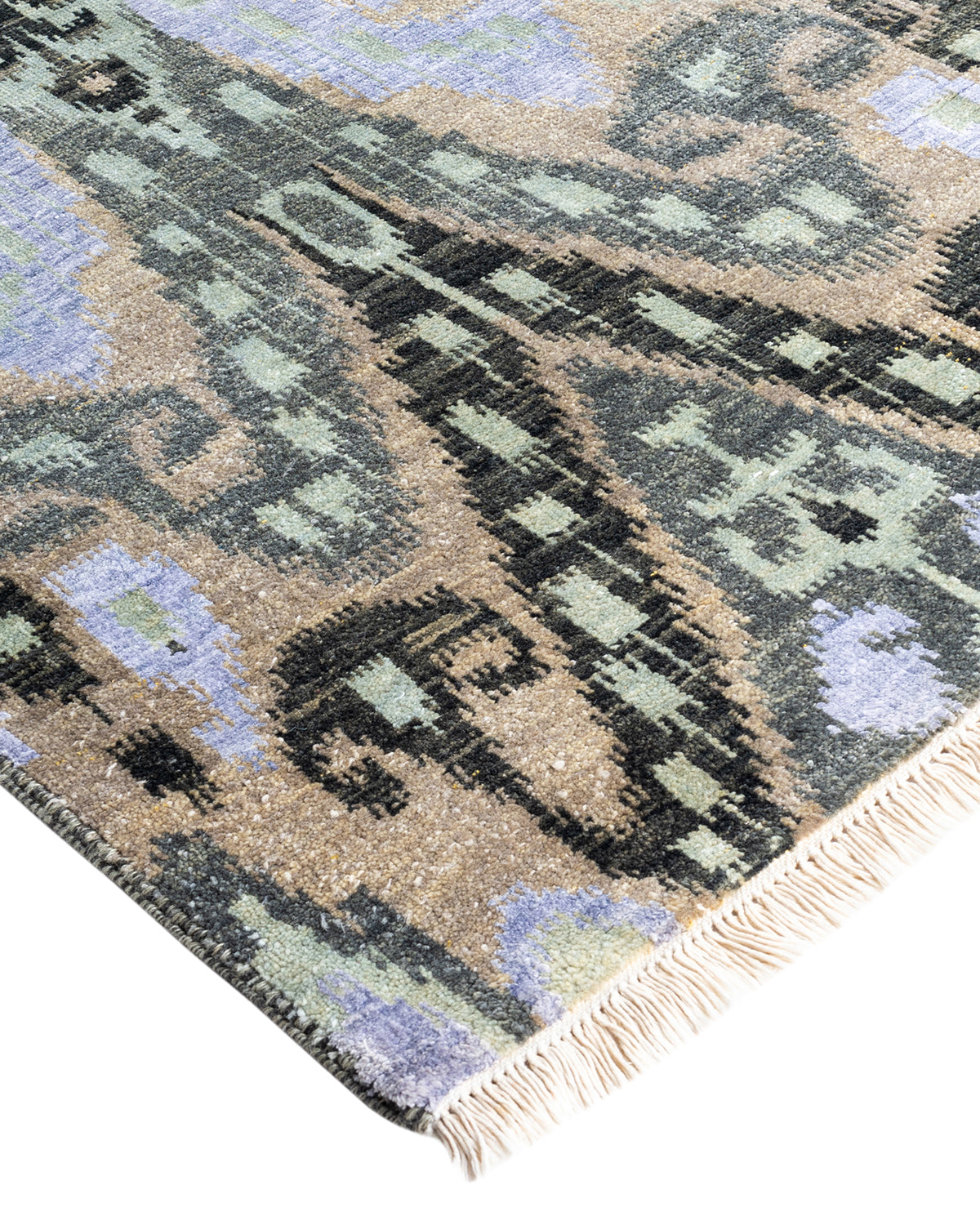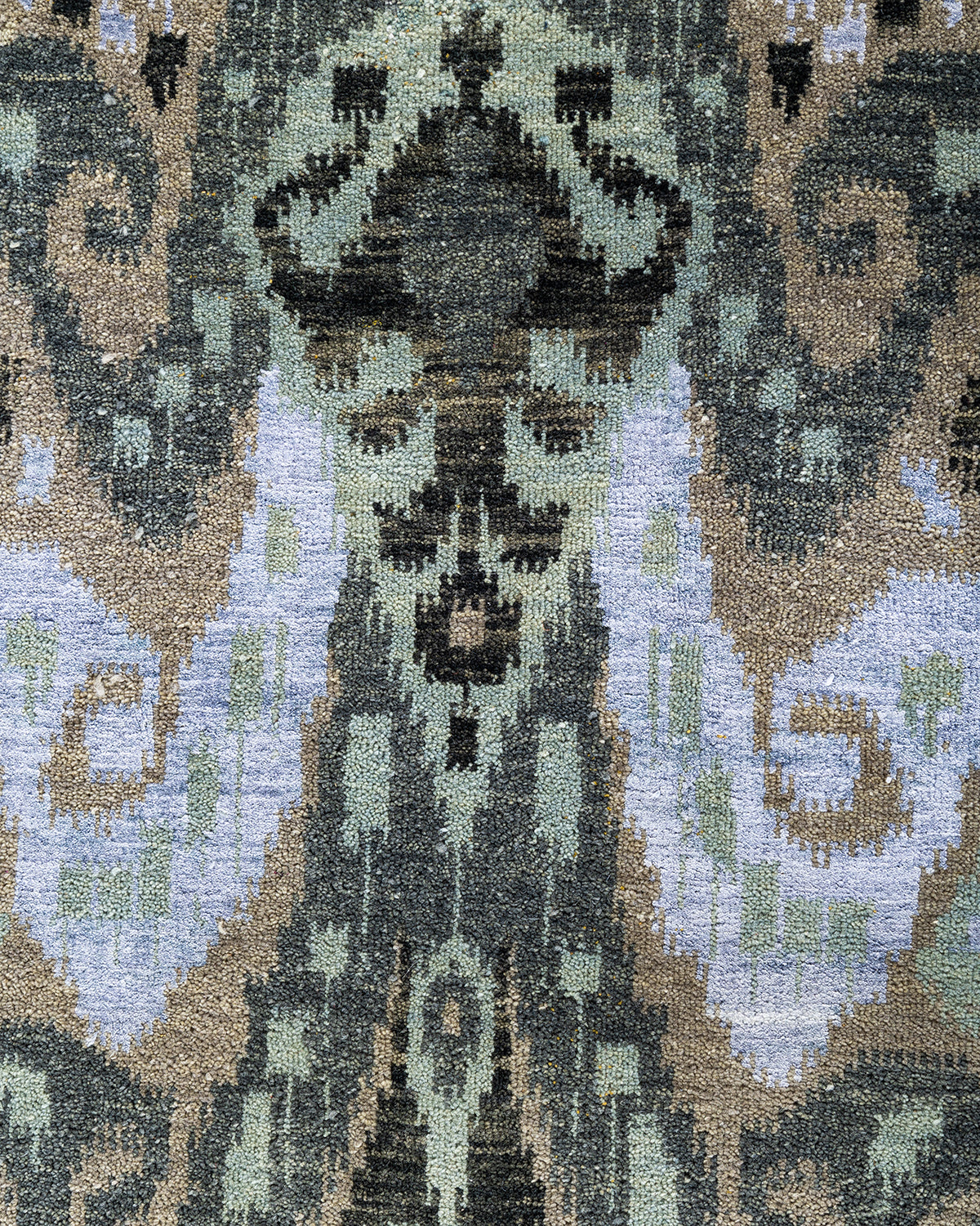 Traditional Ikat Hand Knotted Floral Silk & Wool Blend Green Area Rug 9' 1" x 12' 2"