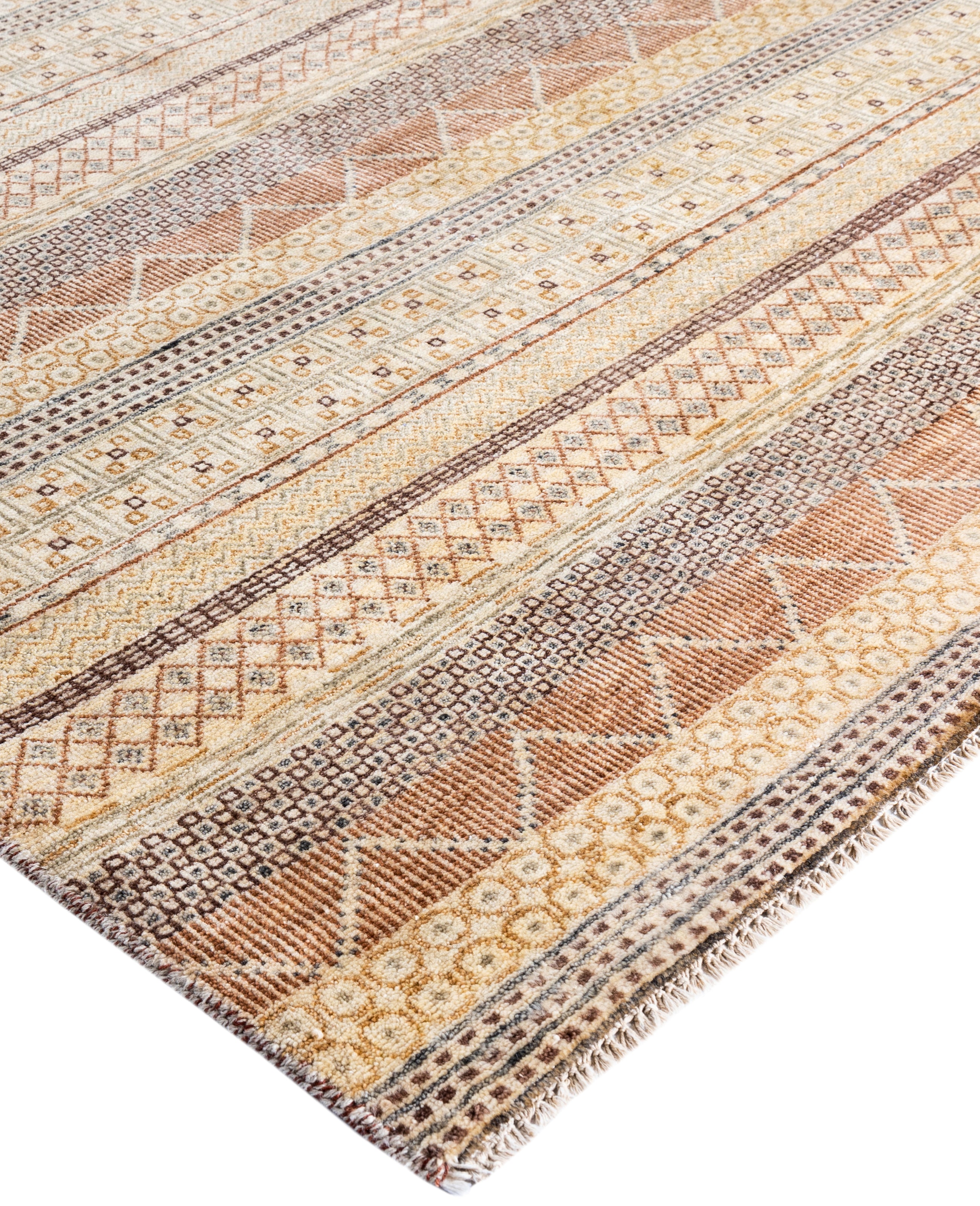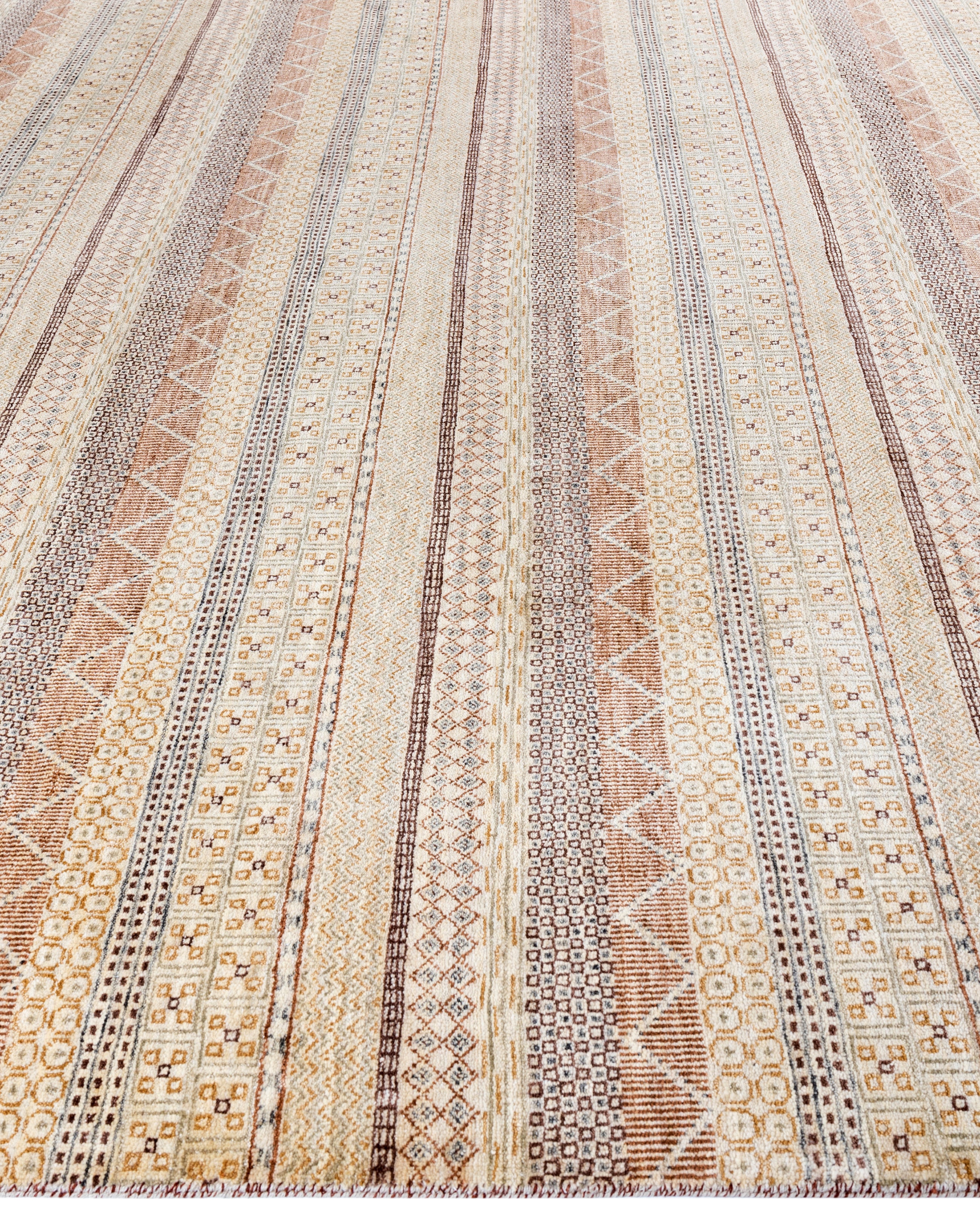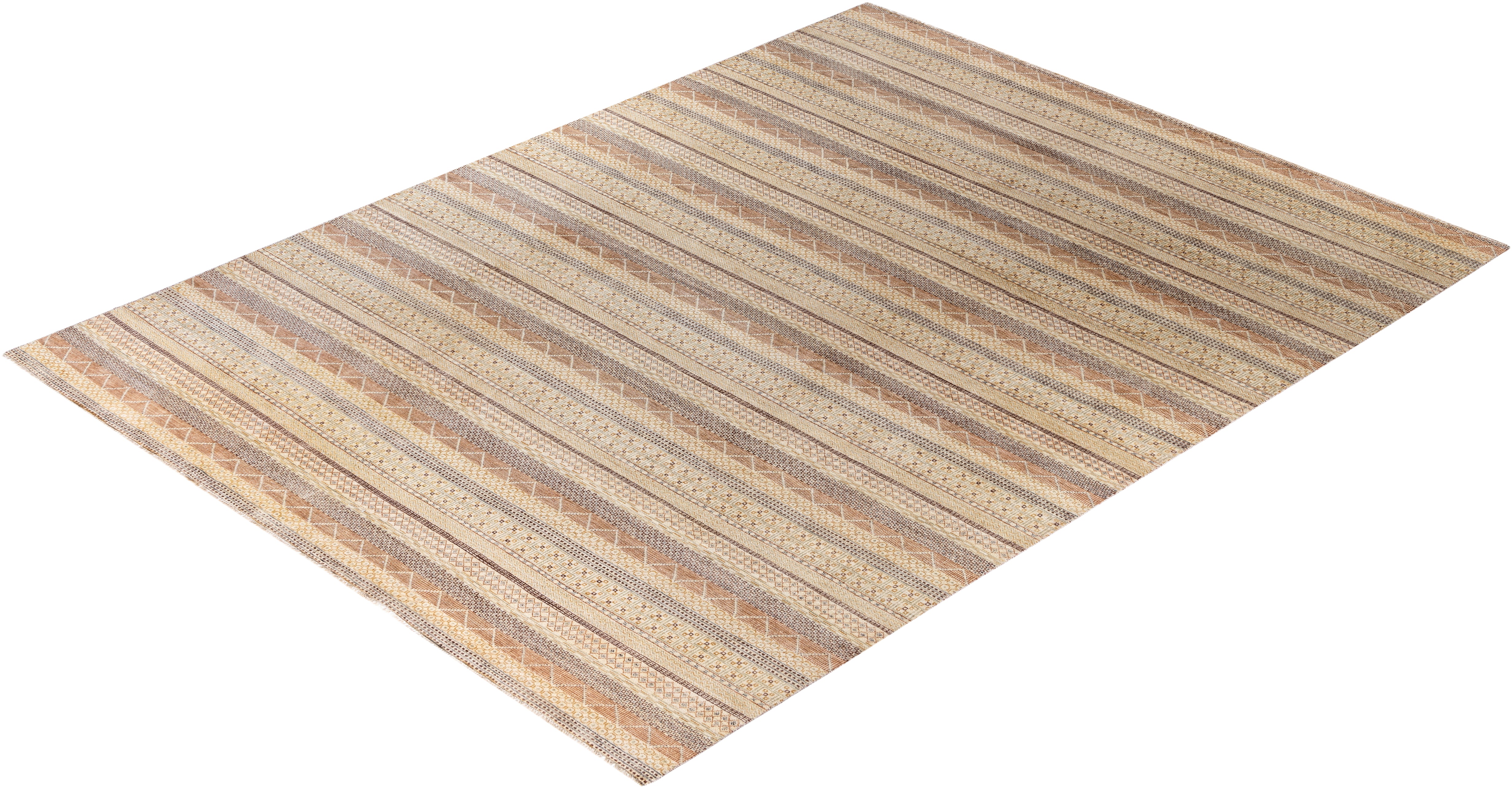 Contemporary Striped Wool Hand Knotted Beige Area Rug 9' 2" x 12' 3"