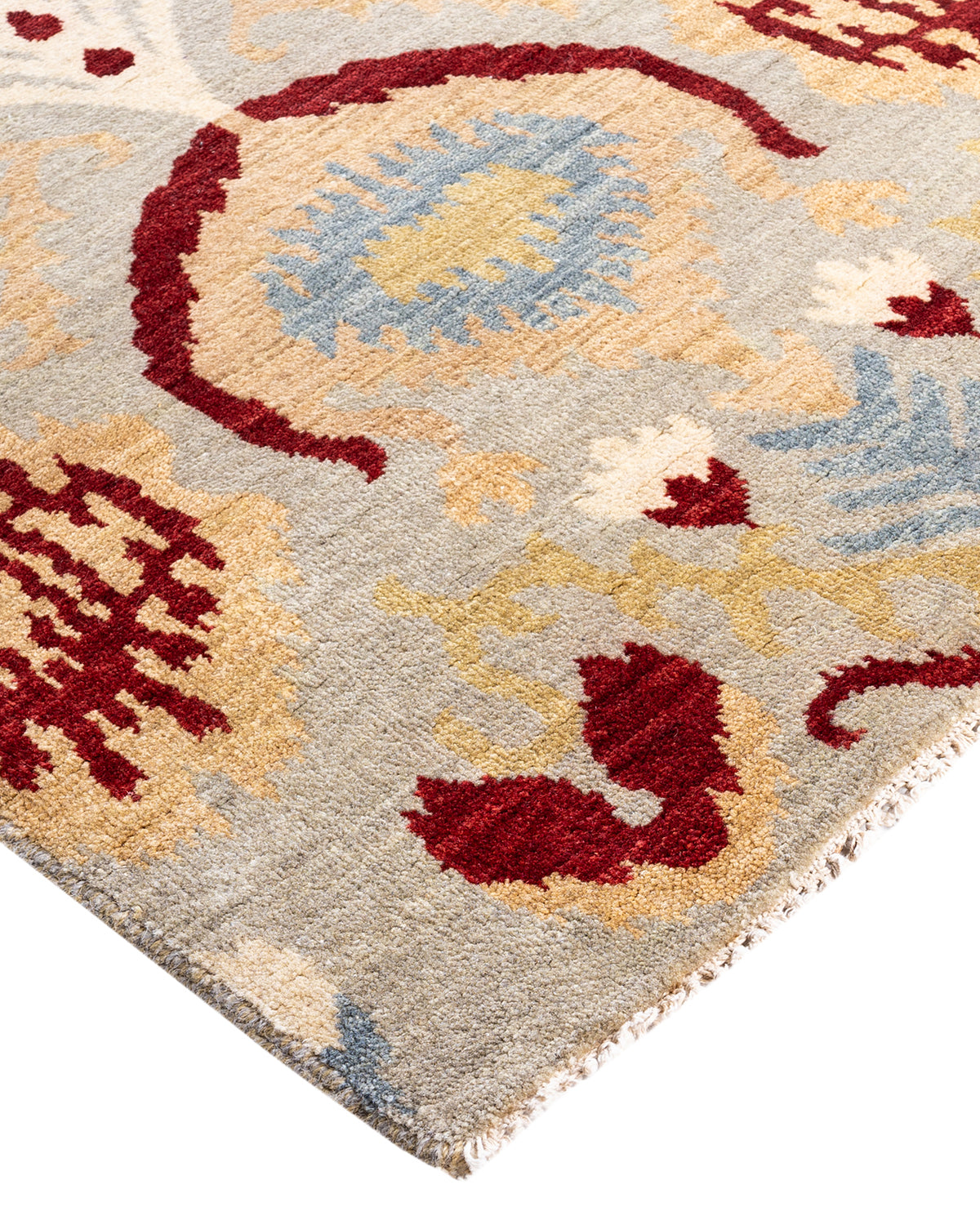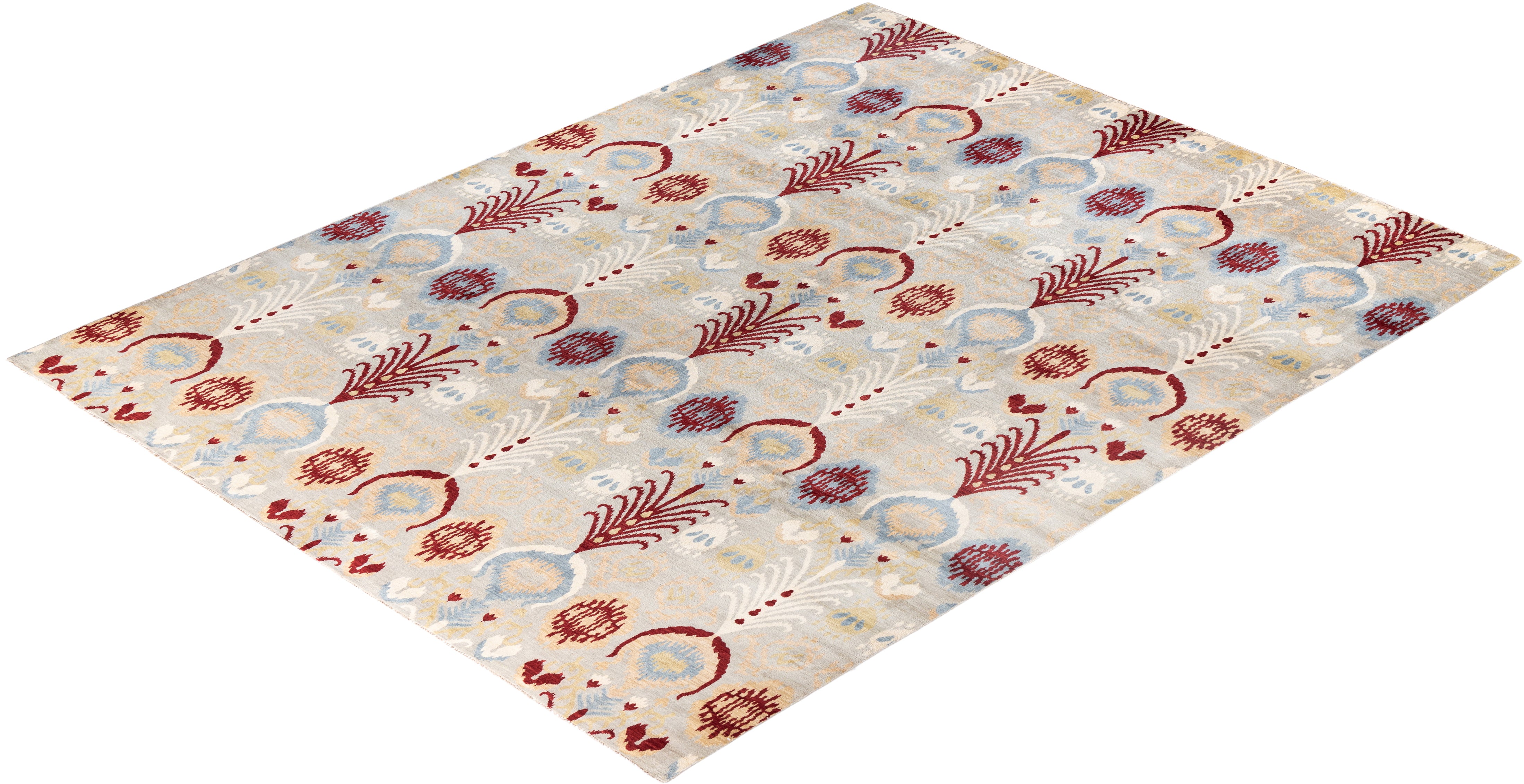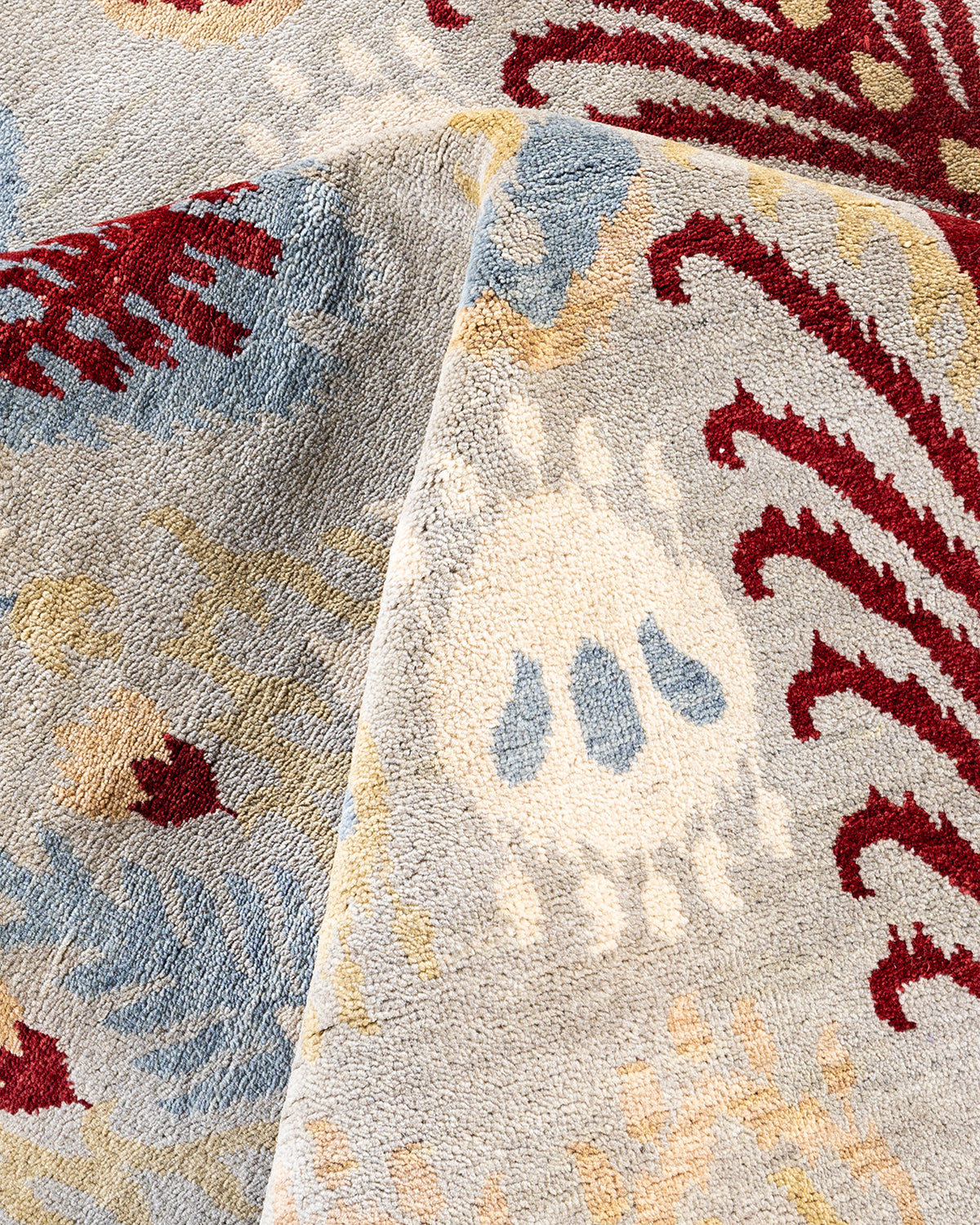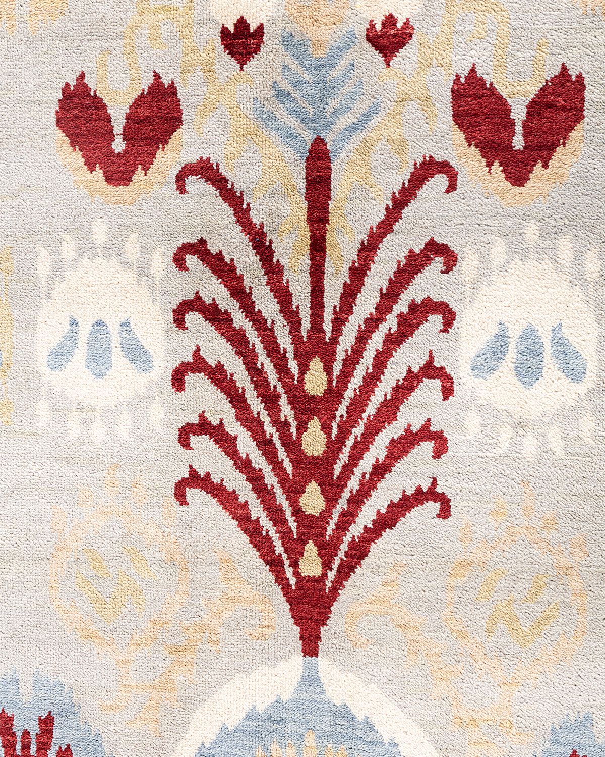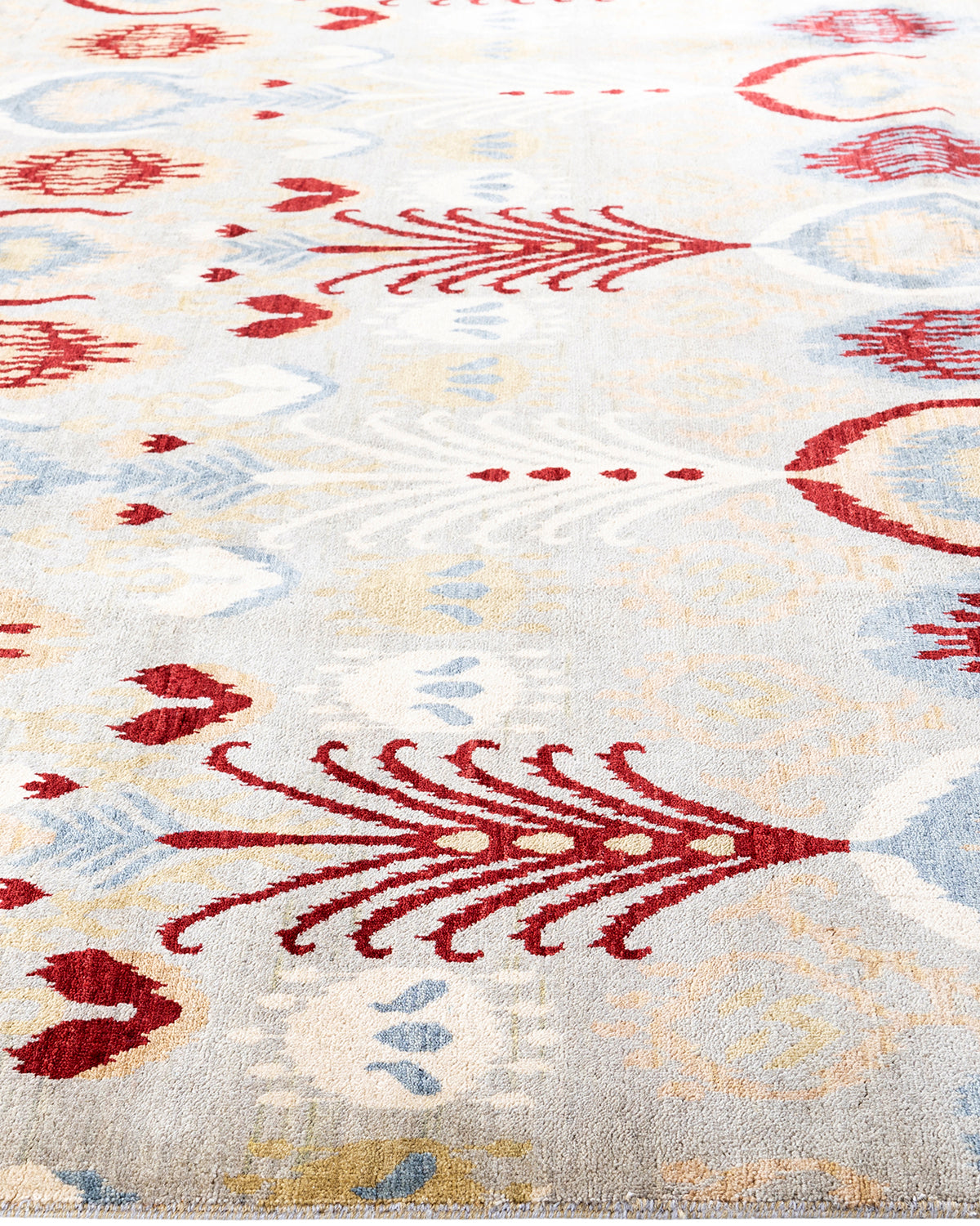 Traditional Ikat Hand Knotted Floral Wool Gray Area Rug 9' 3" x 12' 1"