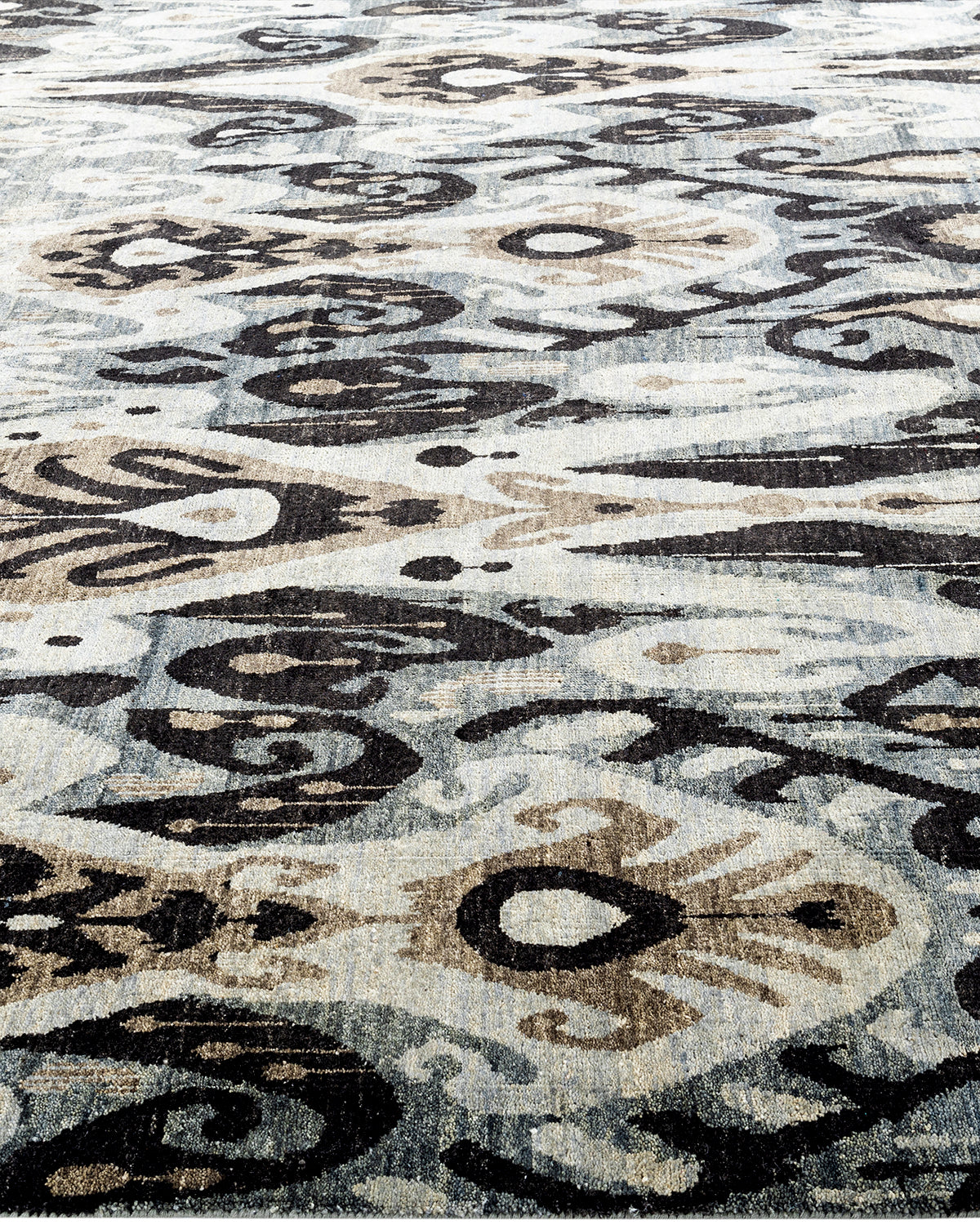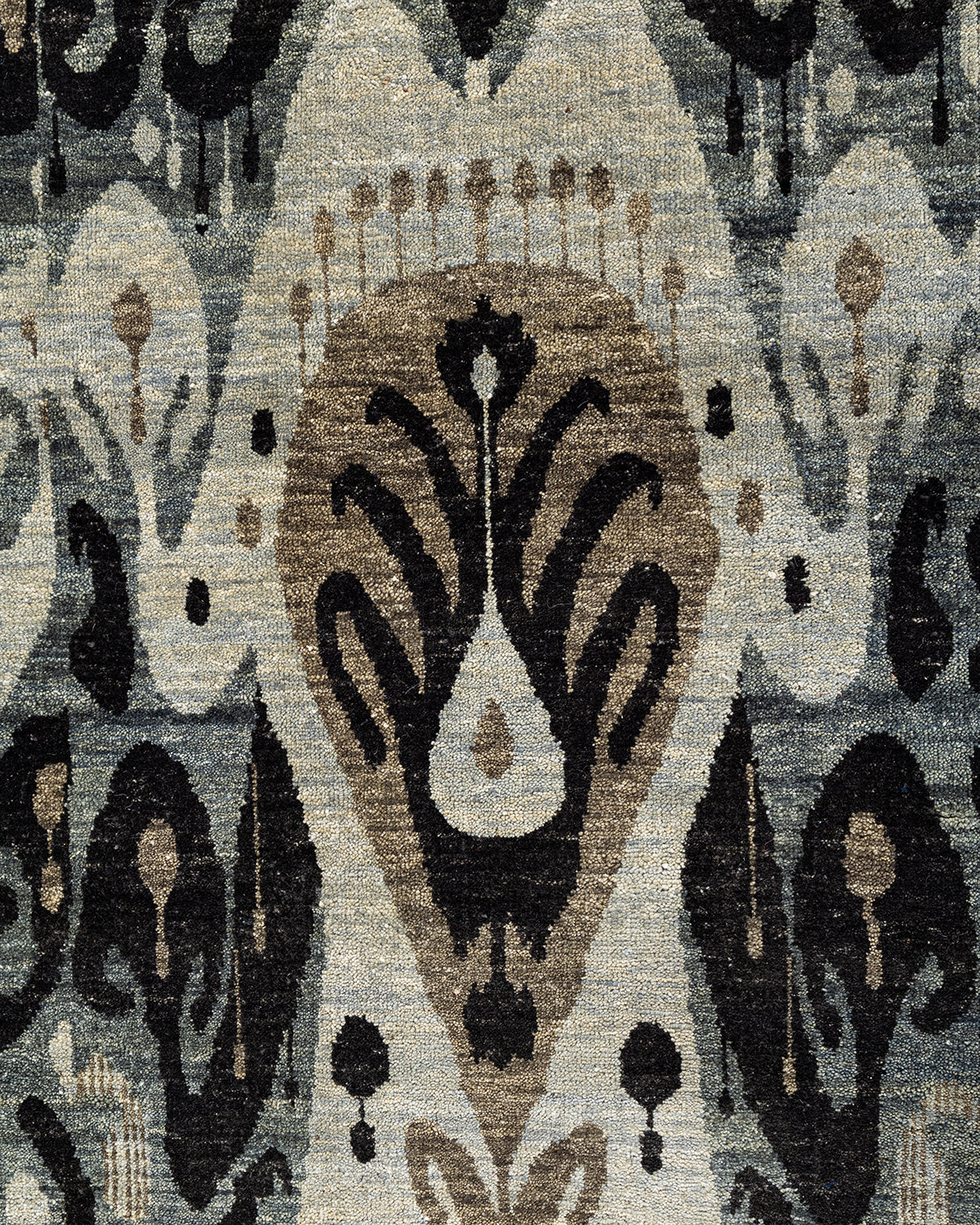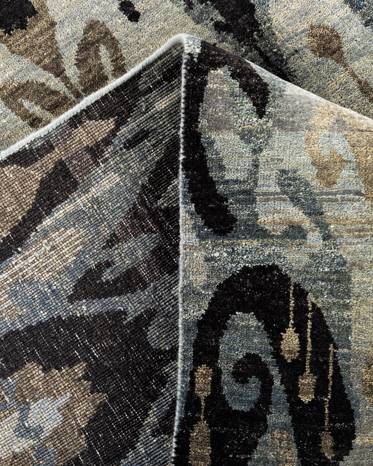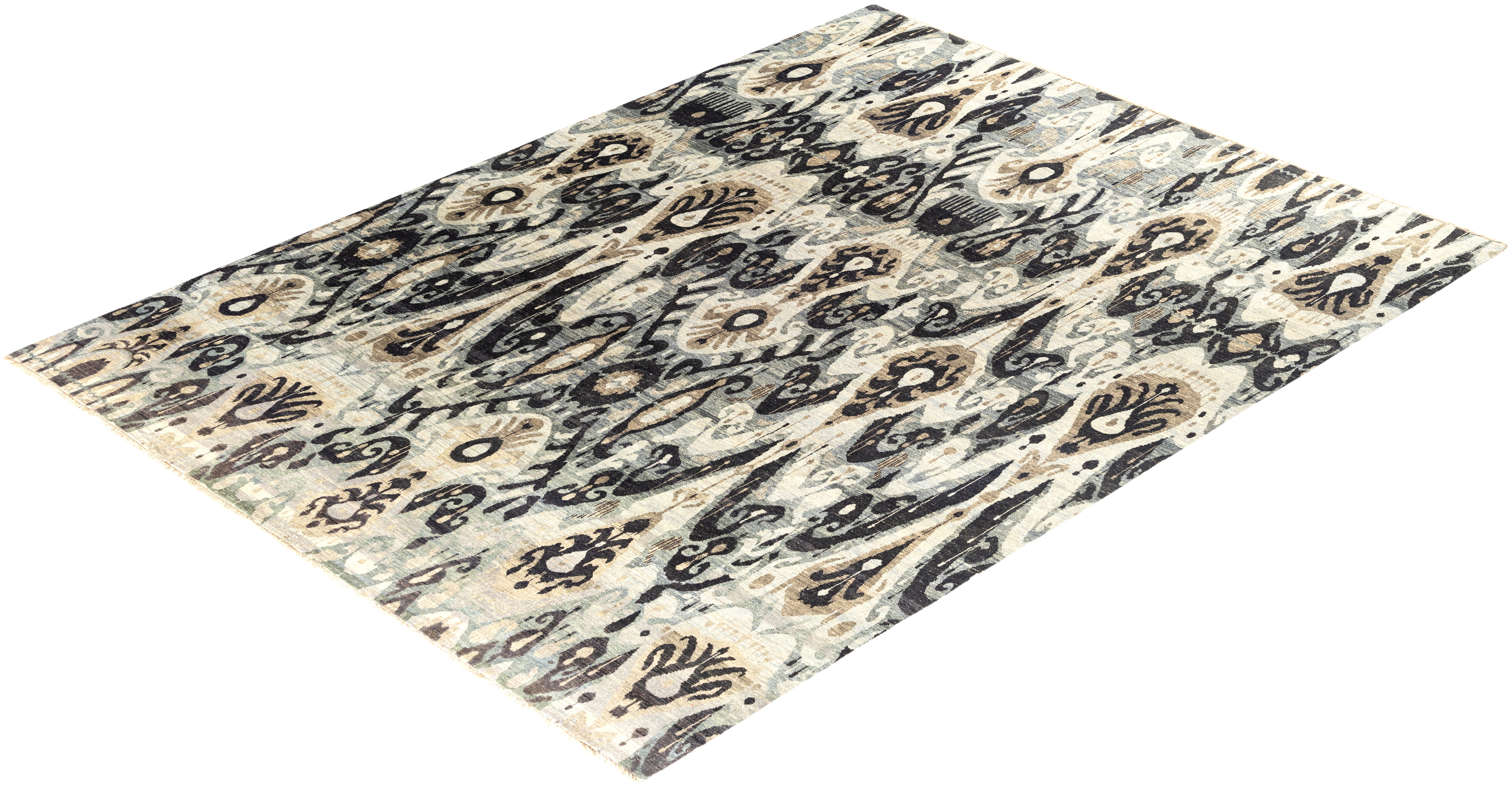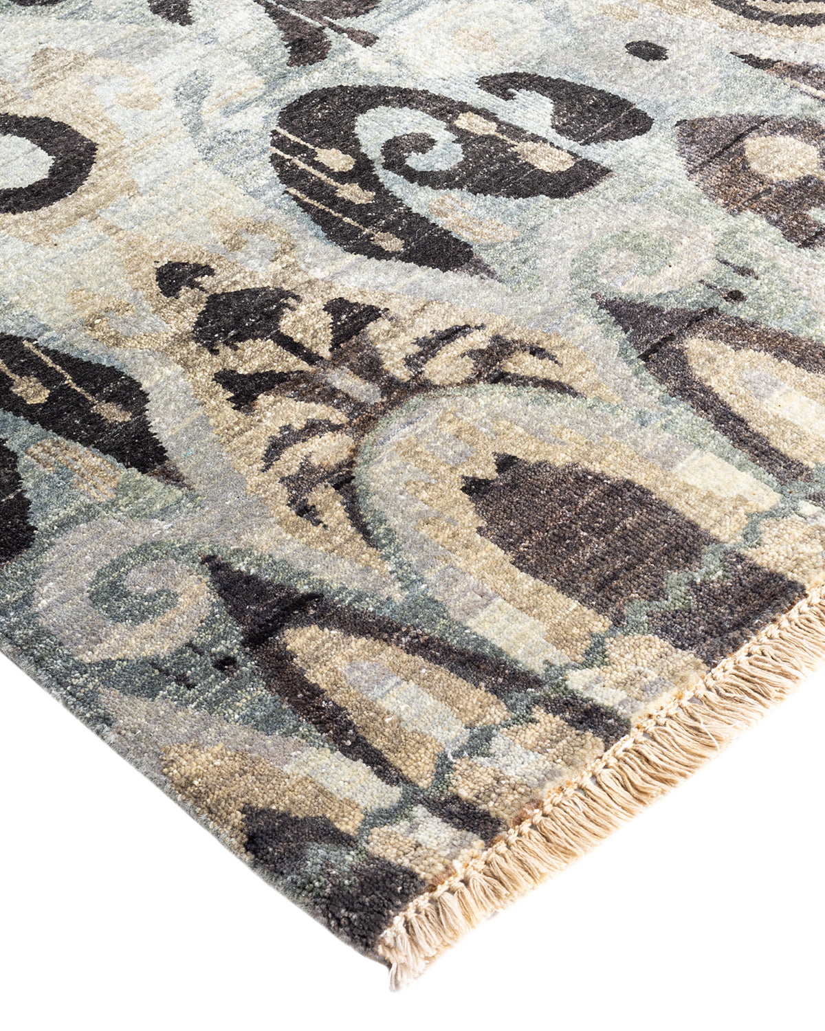 Traditional Ikat Hand Knotted Floral Wool Gray Area Rug 9' 0" x 12' 3"
