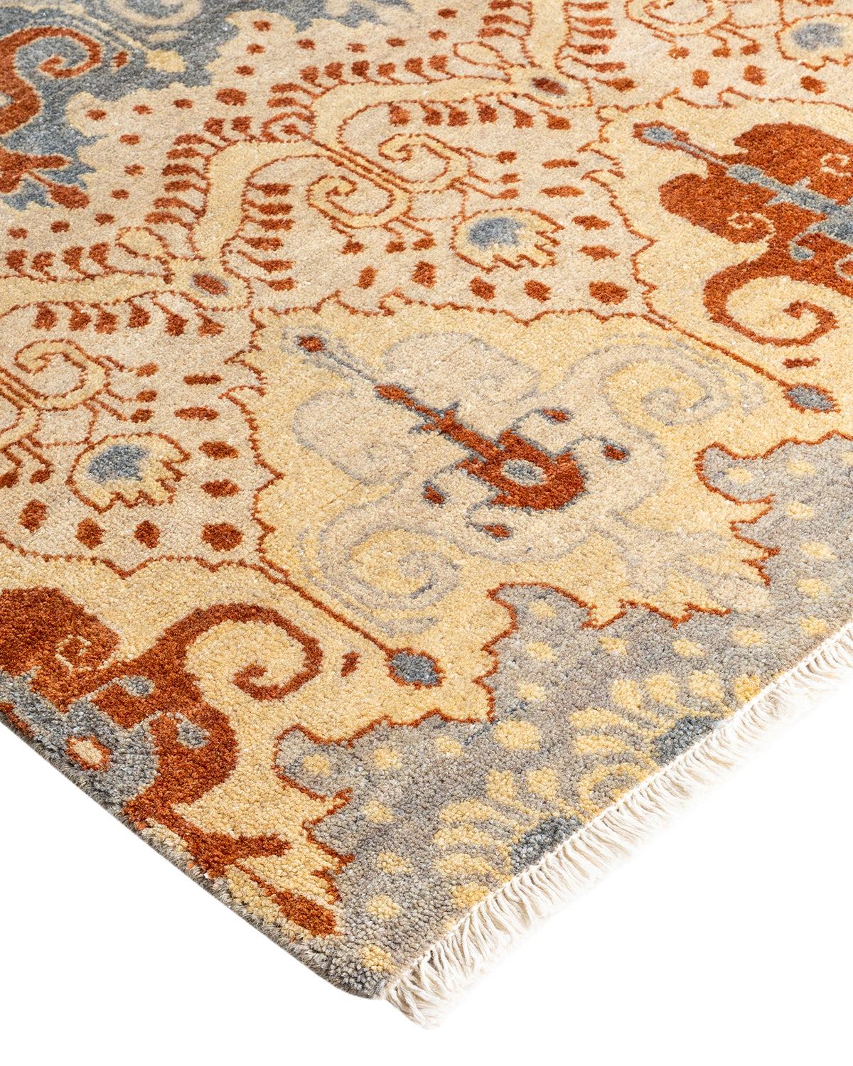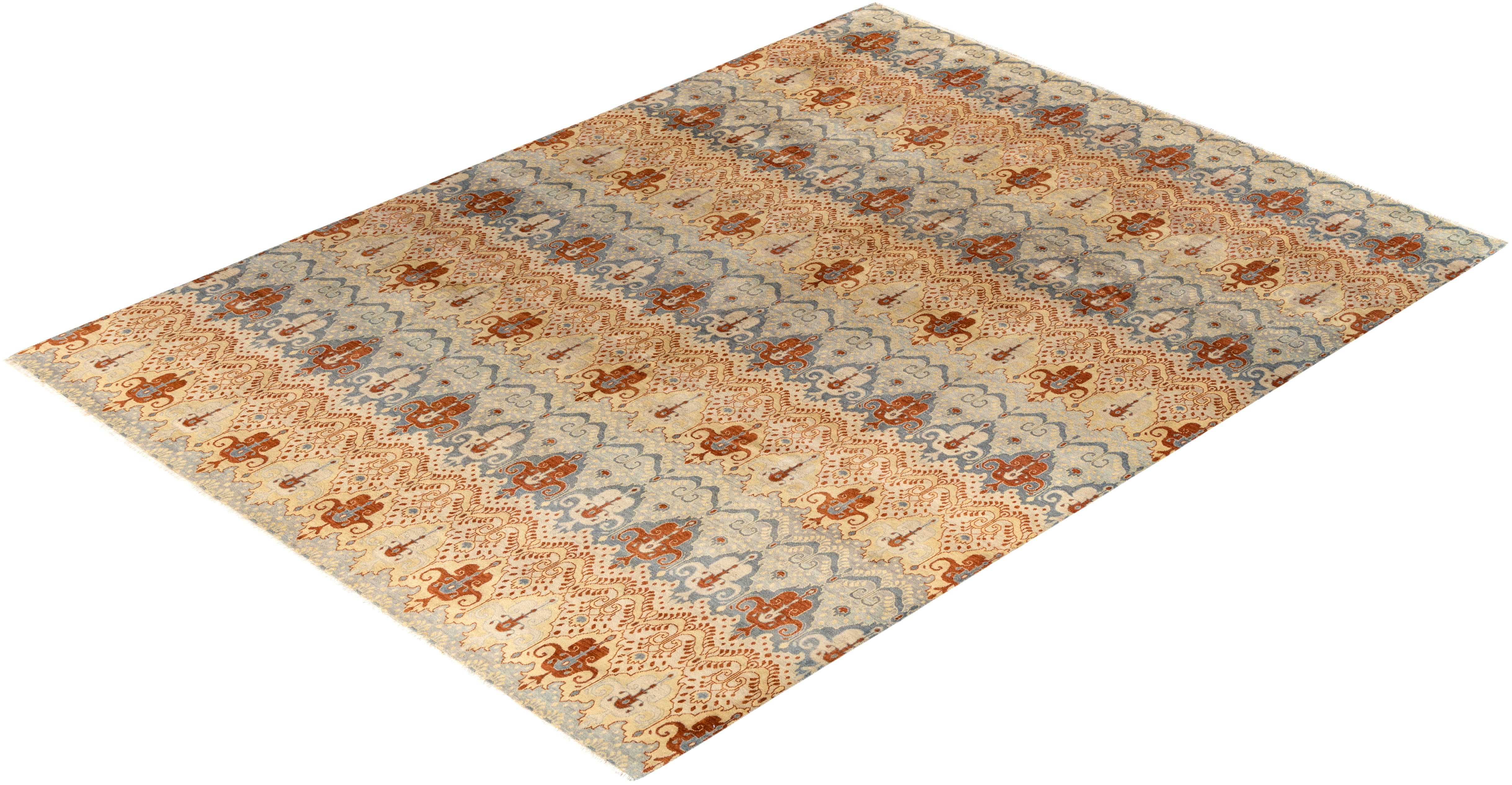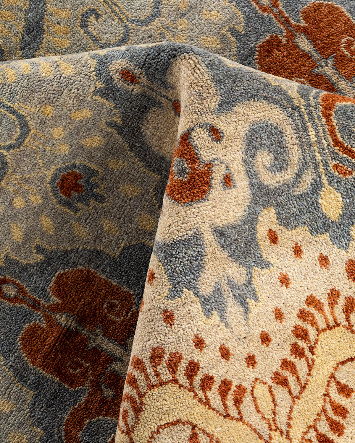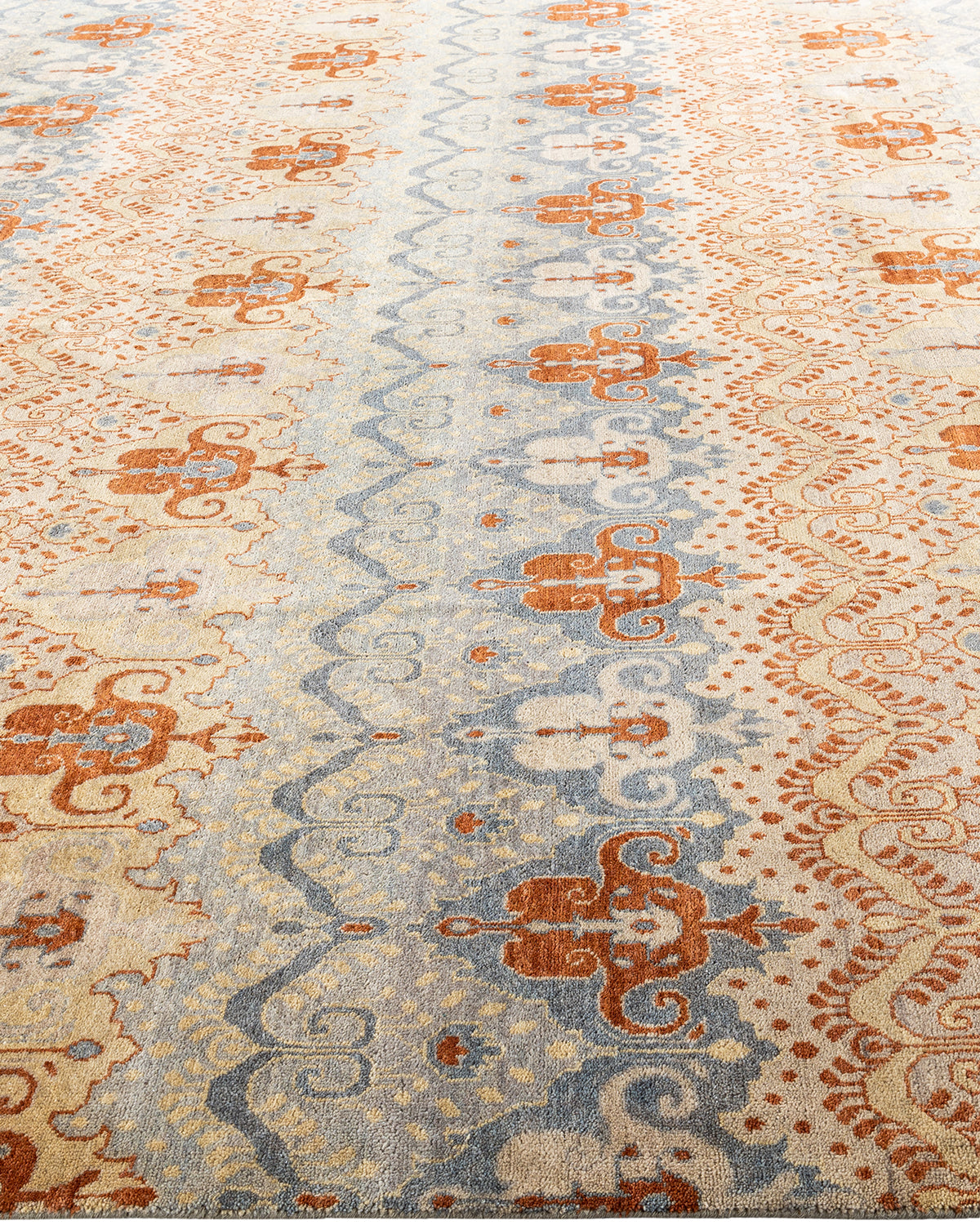 Traditional Ikat Hand Knotted Floral Wool Gray Area Rug 9' 3" x 12' 3"