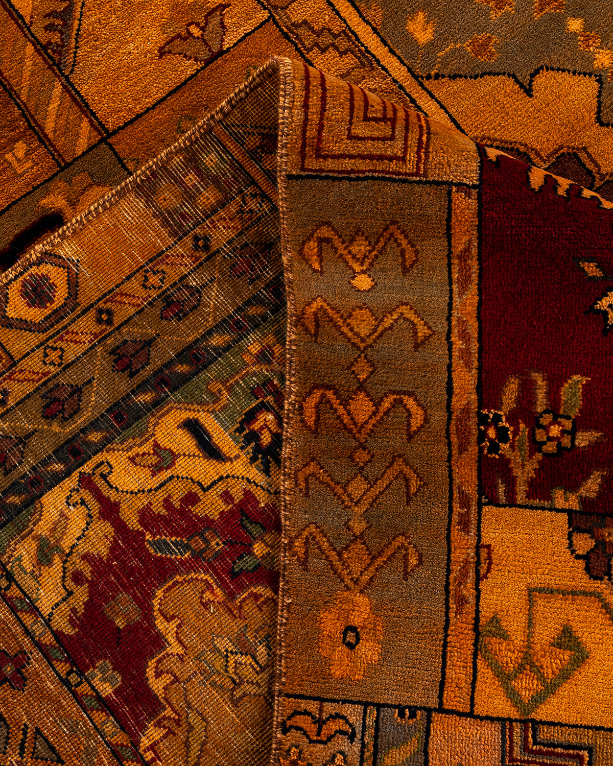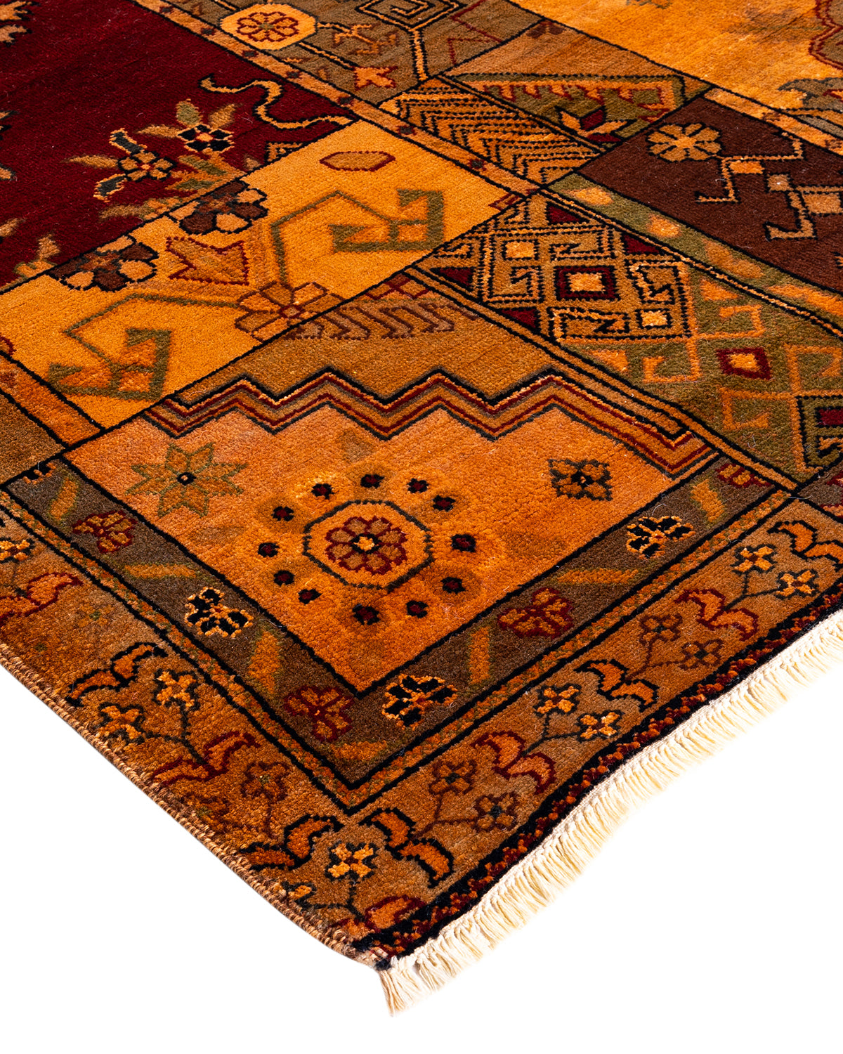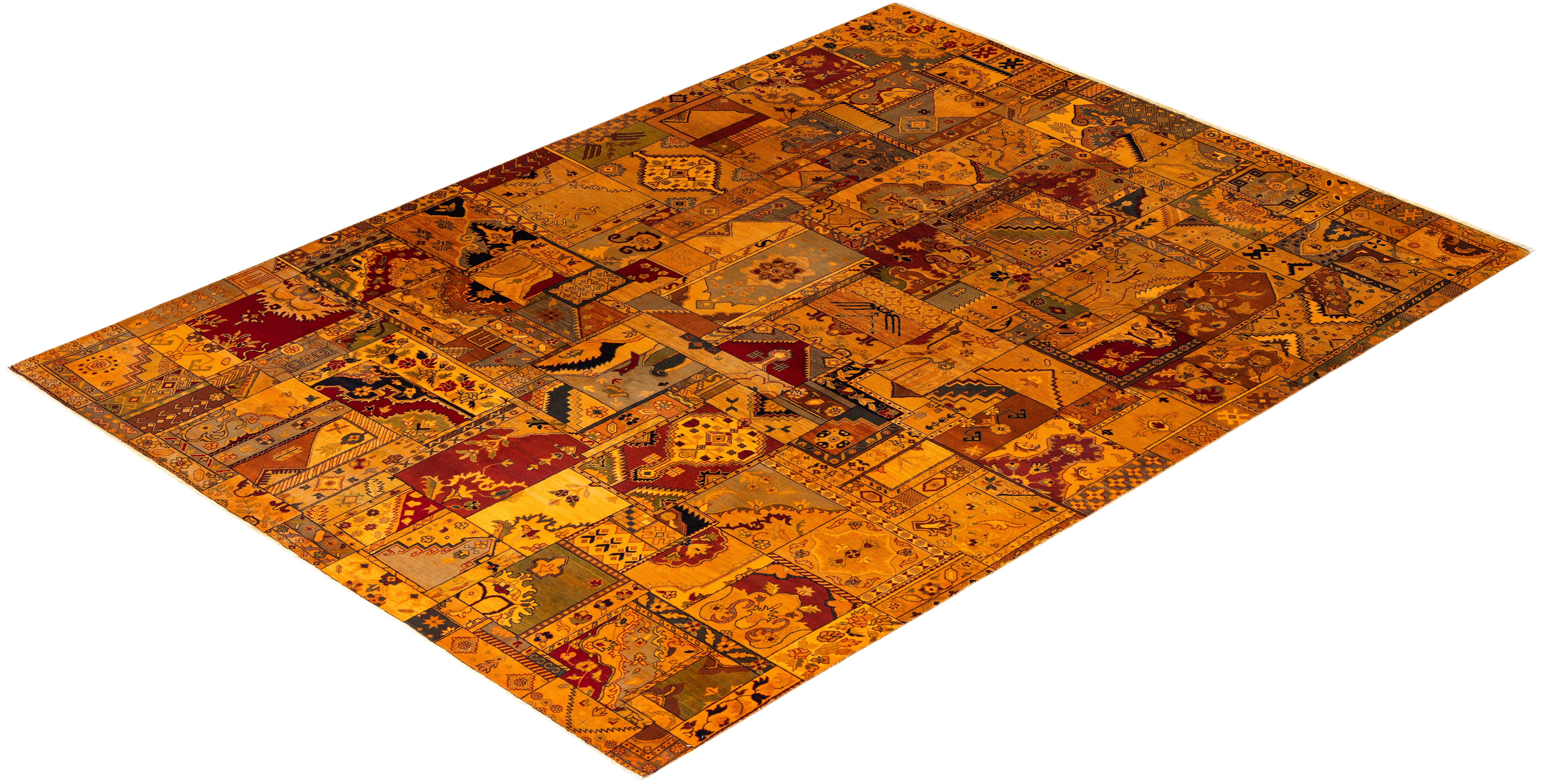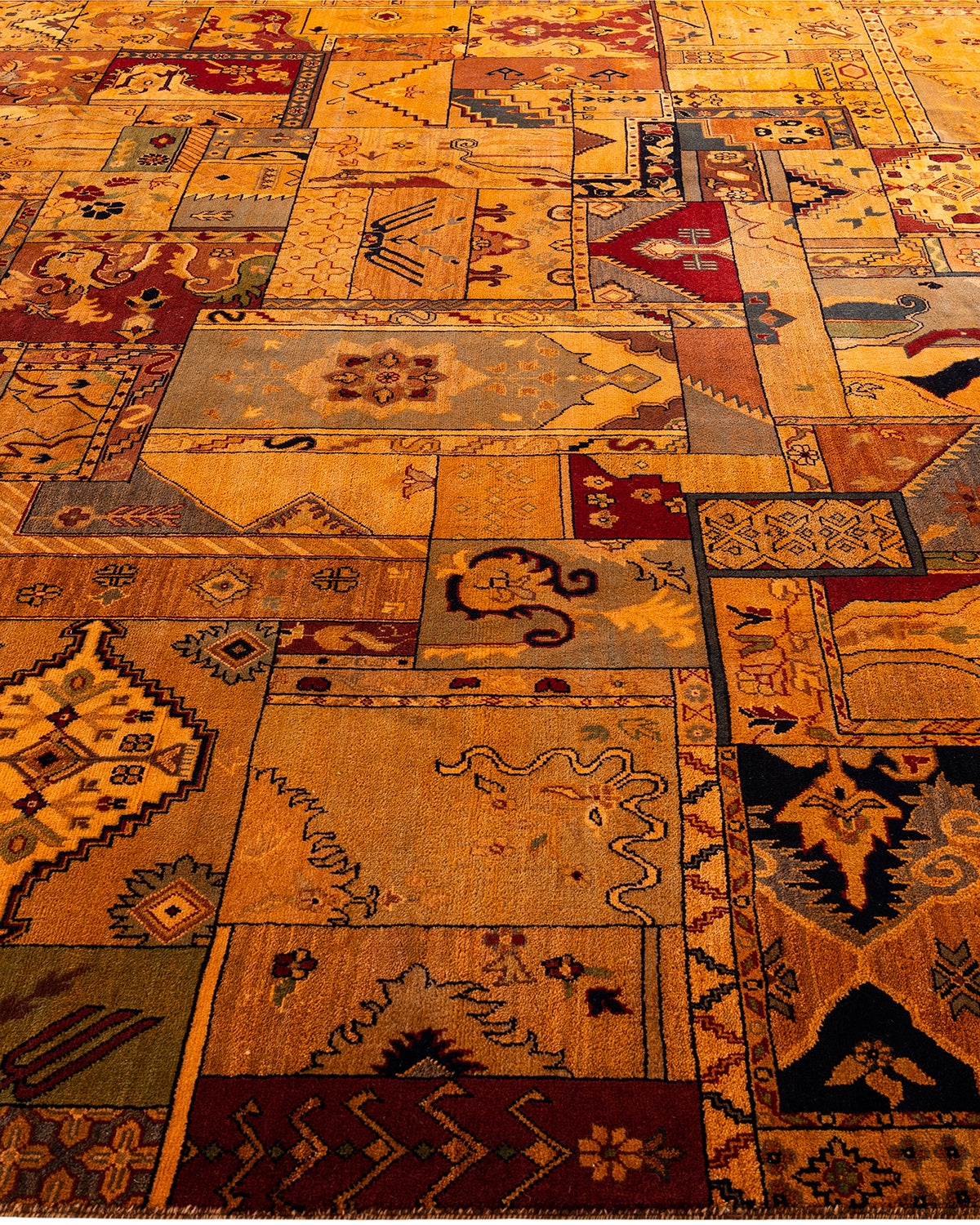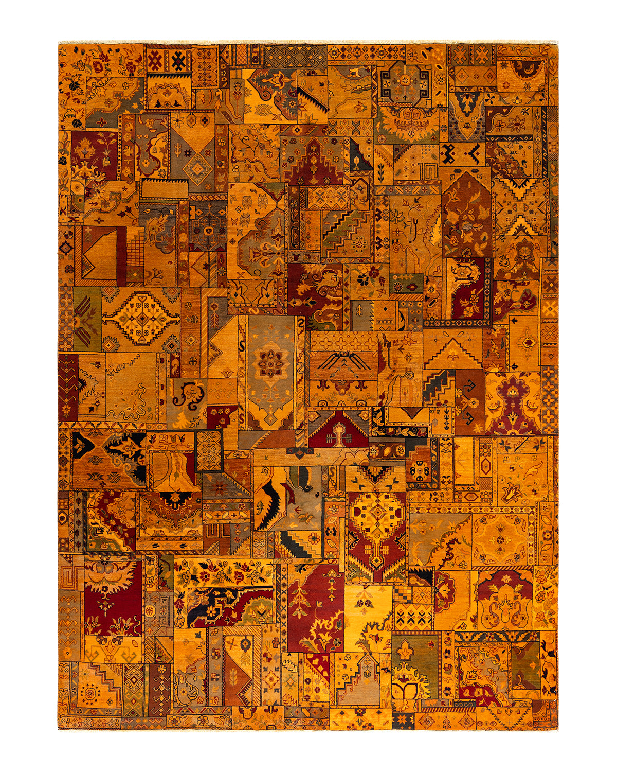 Contemporary Vibrance Hand Knotted Patchwork Wool Orange Area Rug 8' 10" x 12' 0"