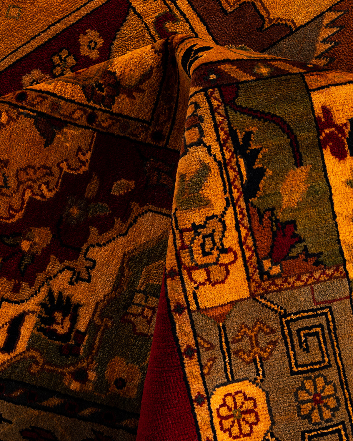 Vibrance rugs epitomize classic with a twist: traditional patterns overdyed in brilliant color. Each hand-knotted rug is washed in a 100%-natural botanical dye that reveals hidden nuances in the designs. These are rugs that transcend trends, and their sturdy construction ensures that they’ll withstand years of heavy traffic.
