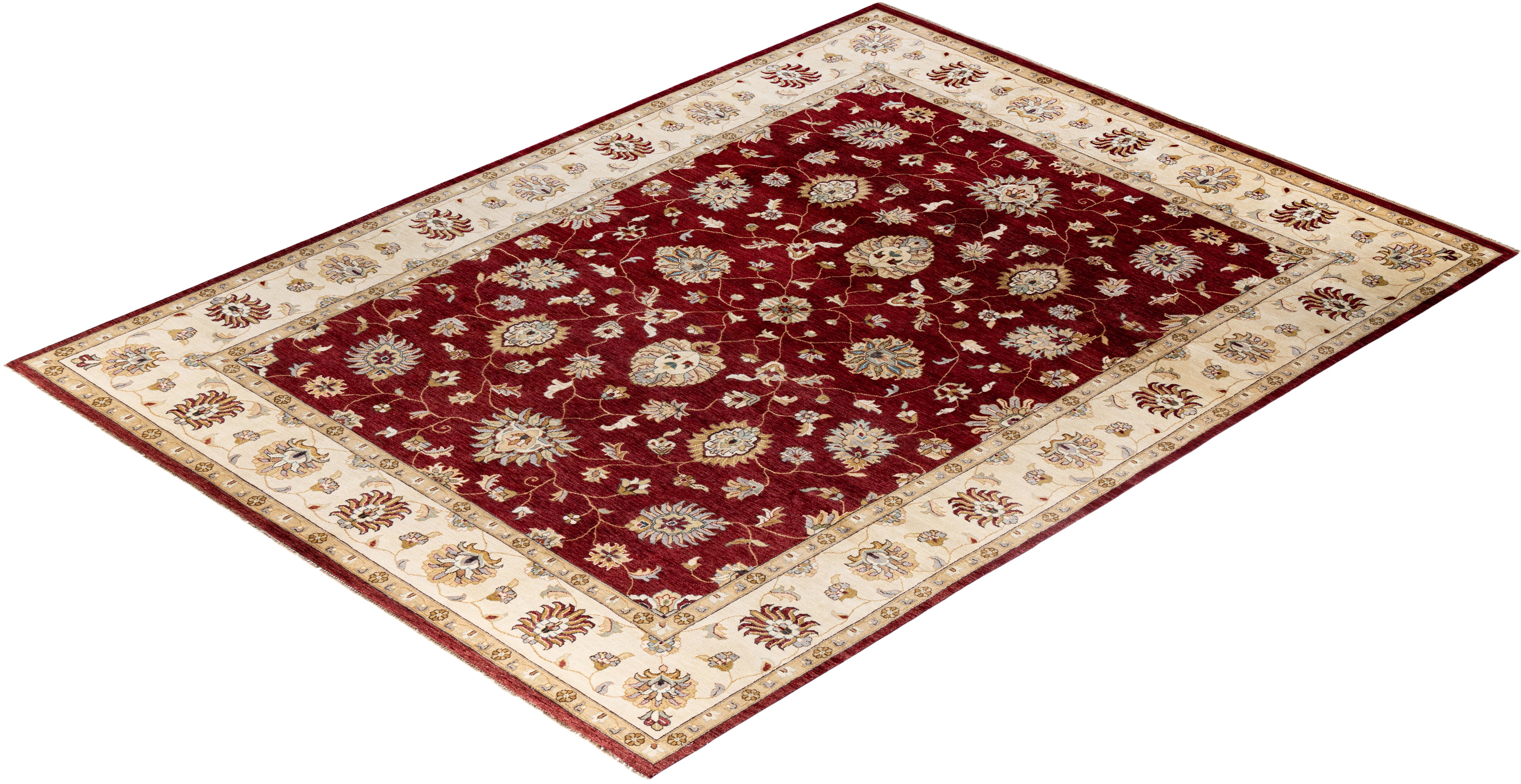Traditional Oushak Hand Knotted Floral Wool Red Area Rug 9' 1" x 12' 2"