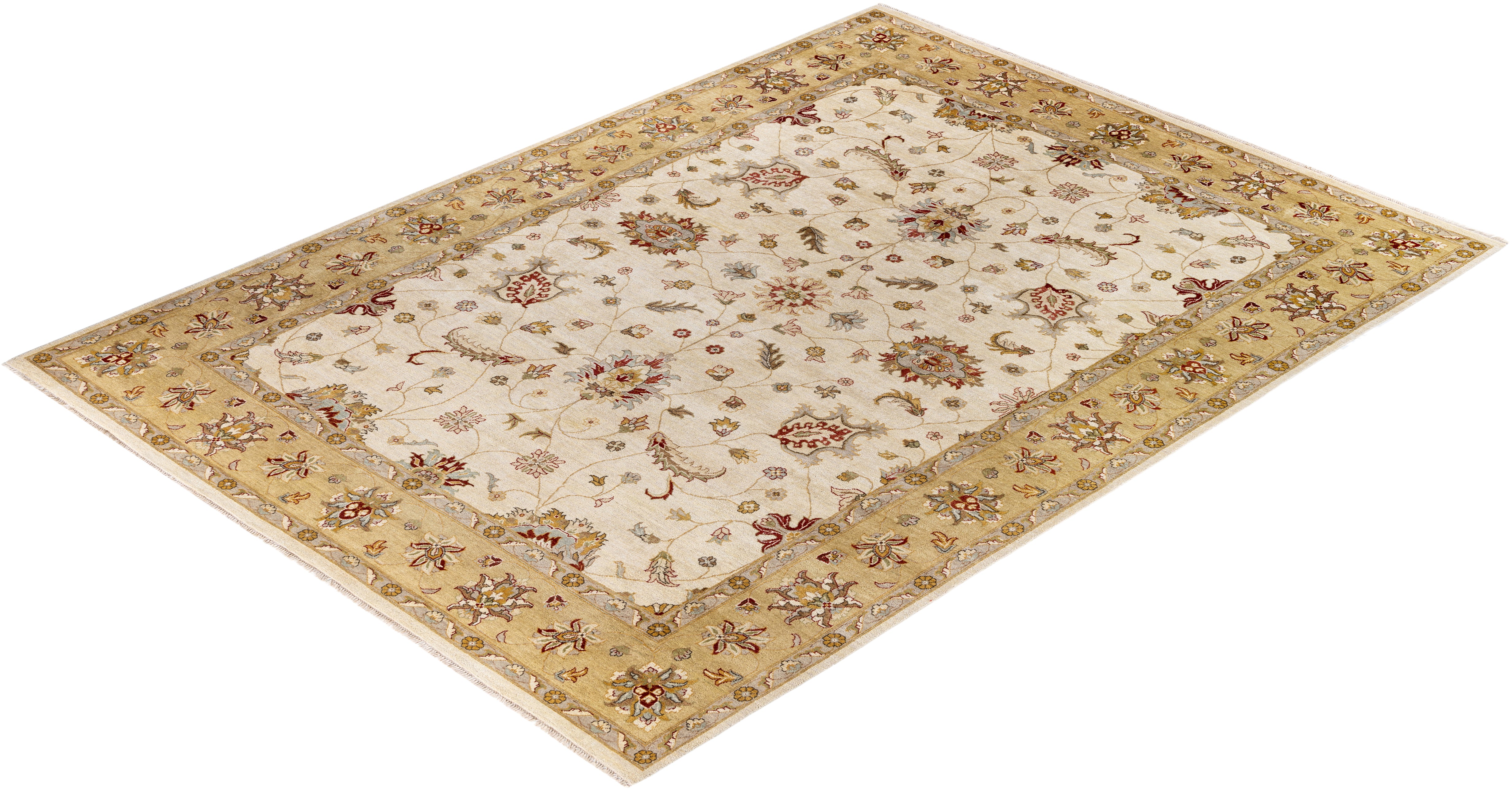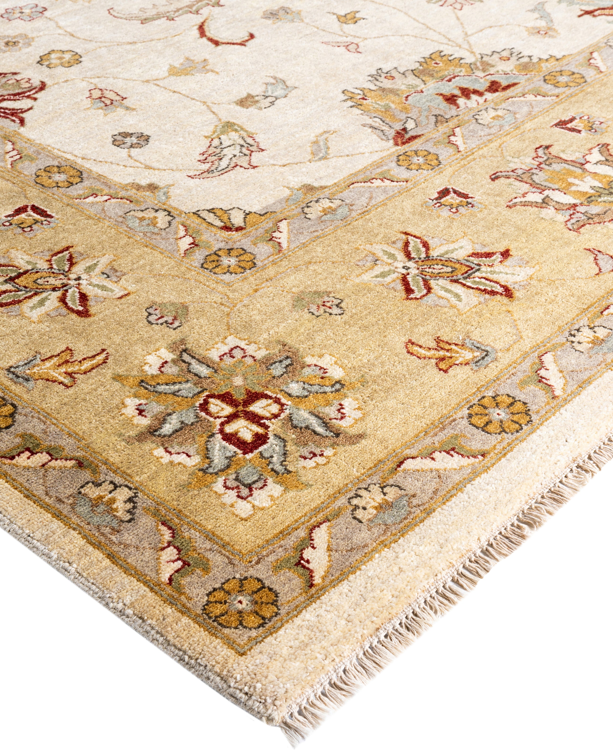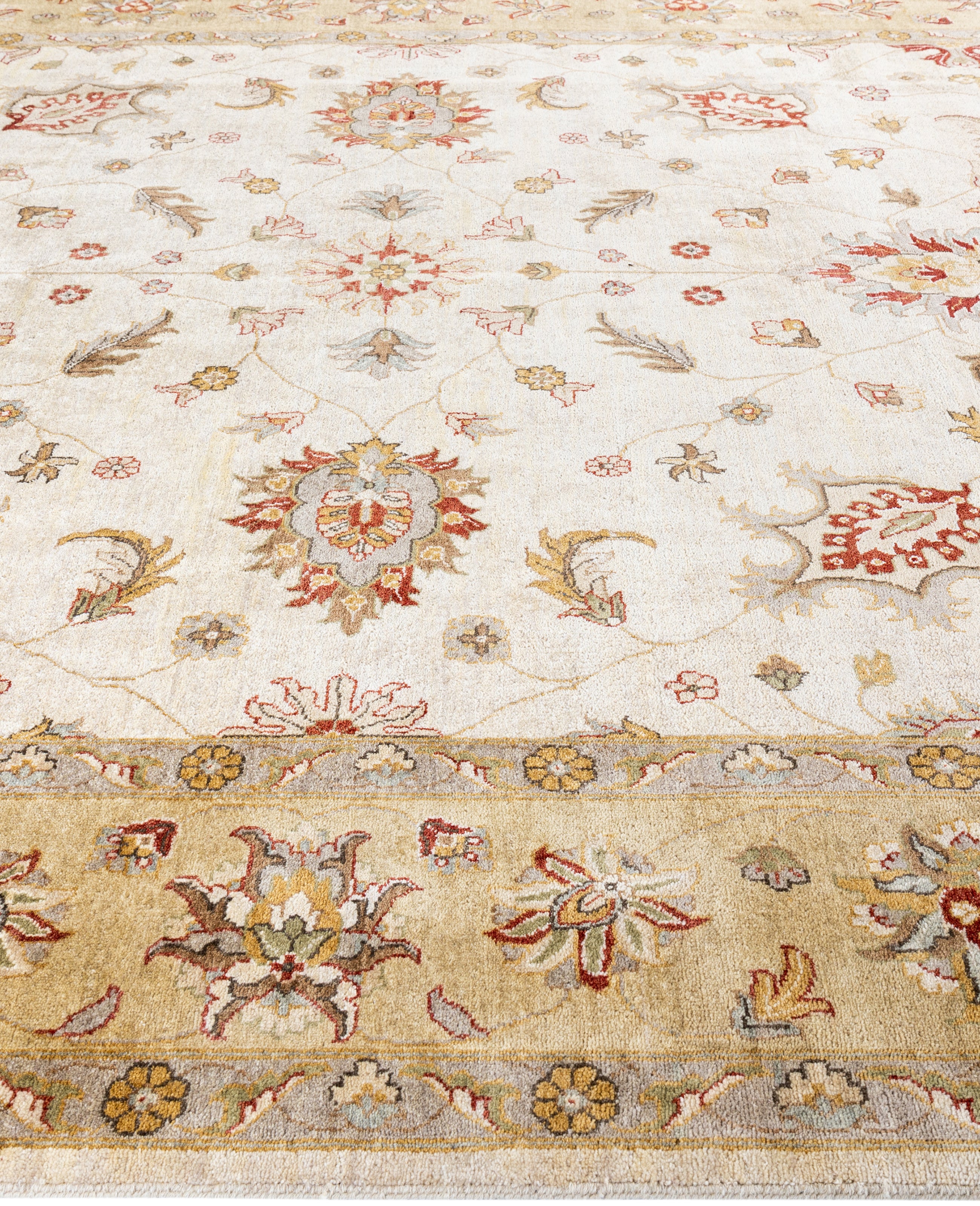 Traditional Floral Wool Hand Knotted Ivory Area Rug 9' 1" x 12' 4"