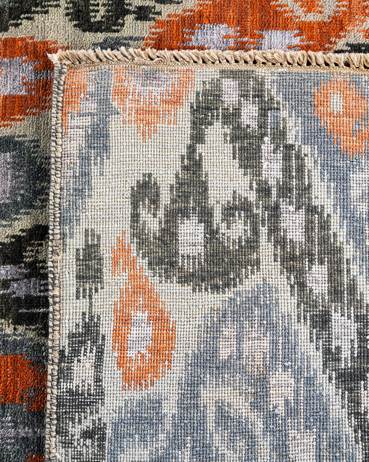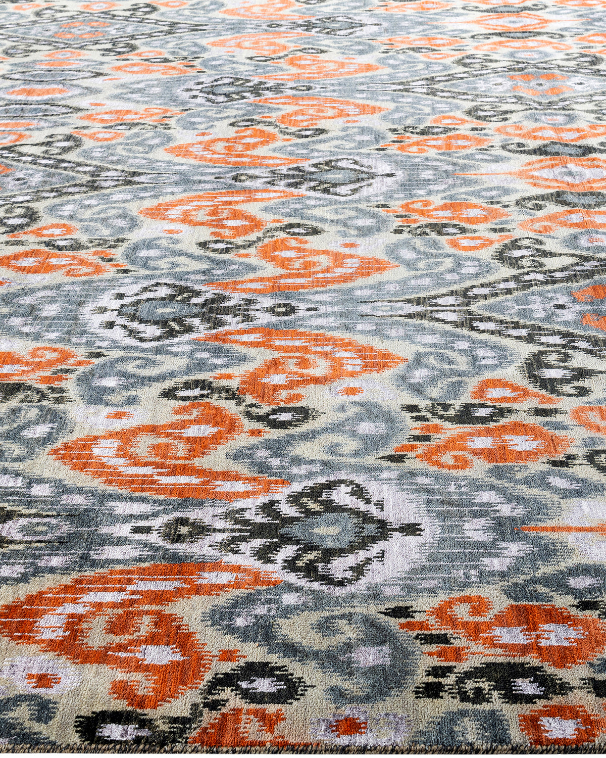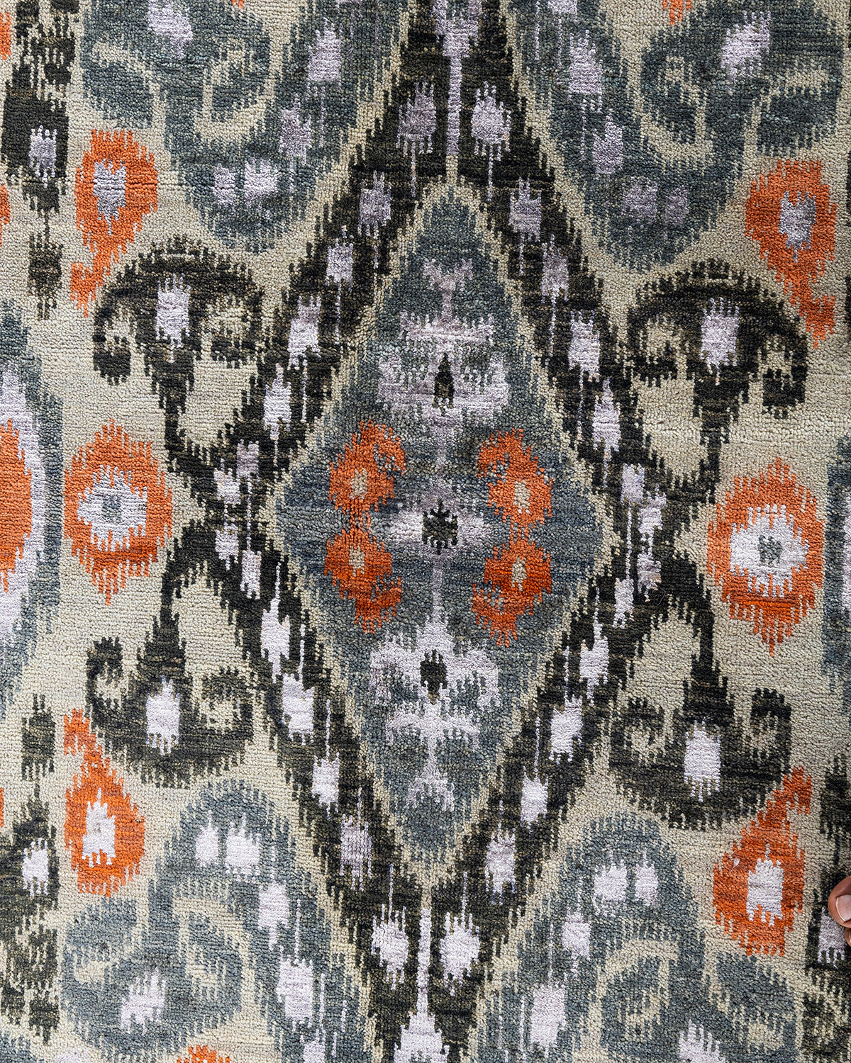 Traditional Ikat Hand Knotted Floral Silk & Wool Blend Gray Area Rug 9' 1" x 12' 4"