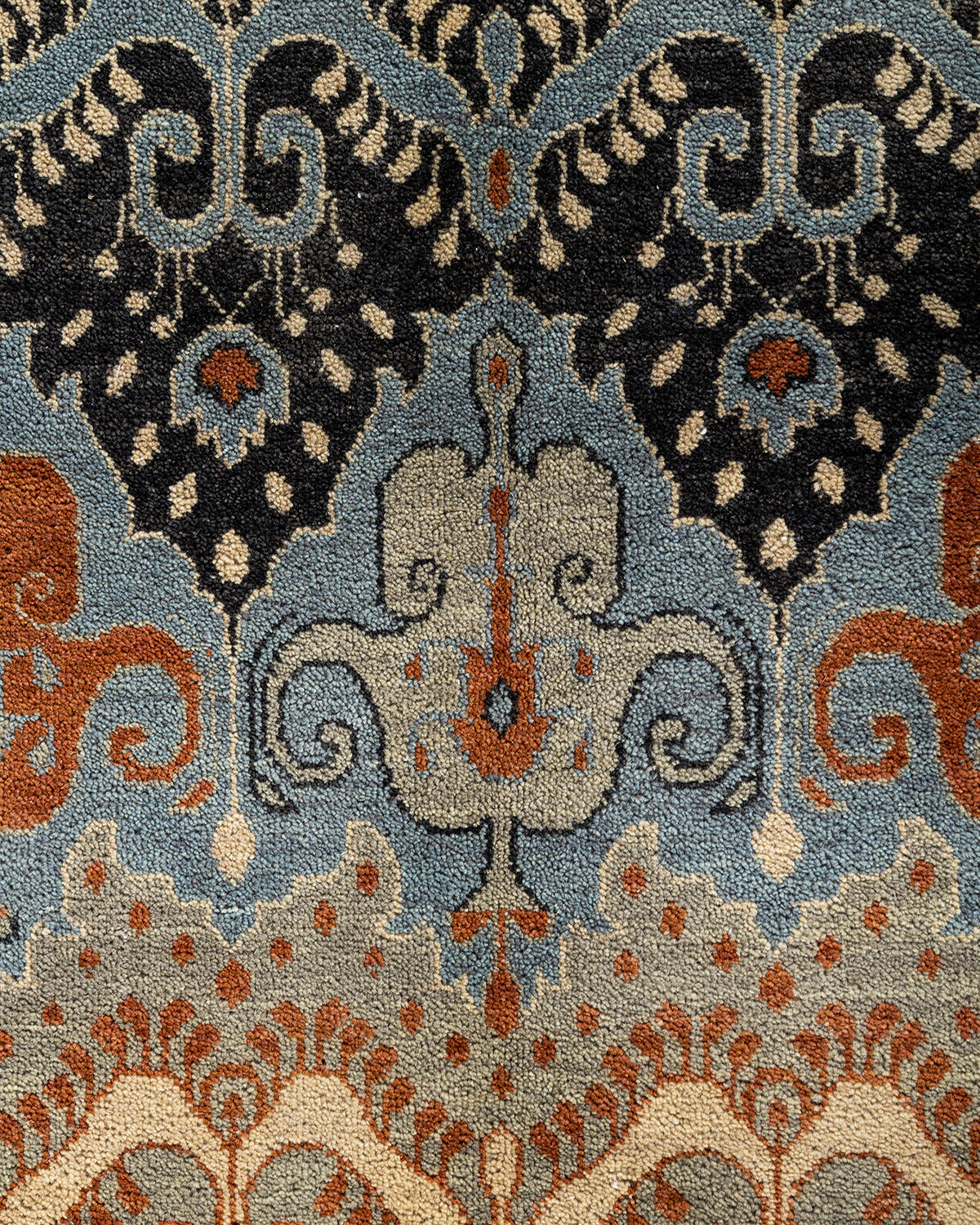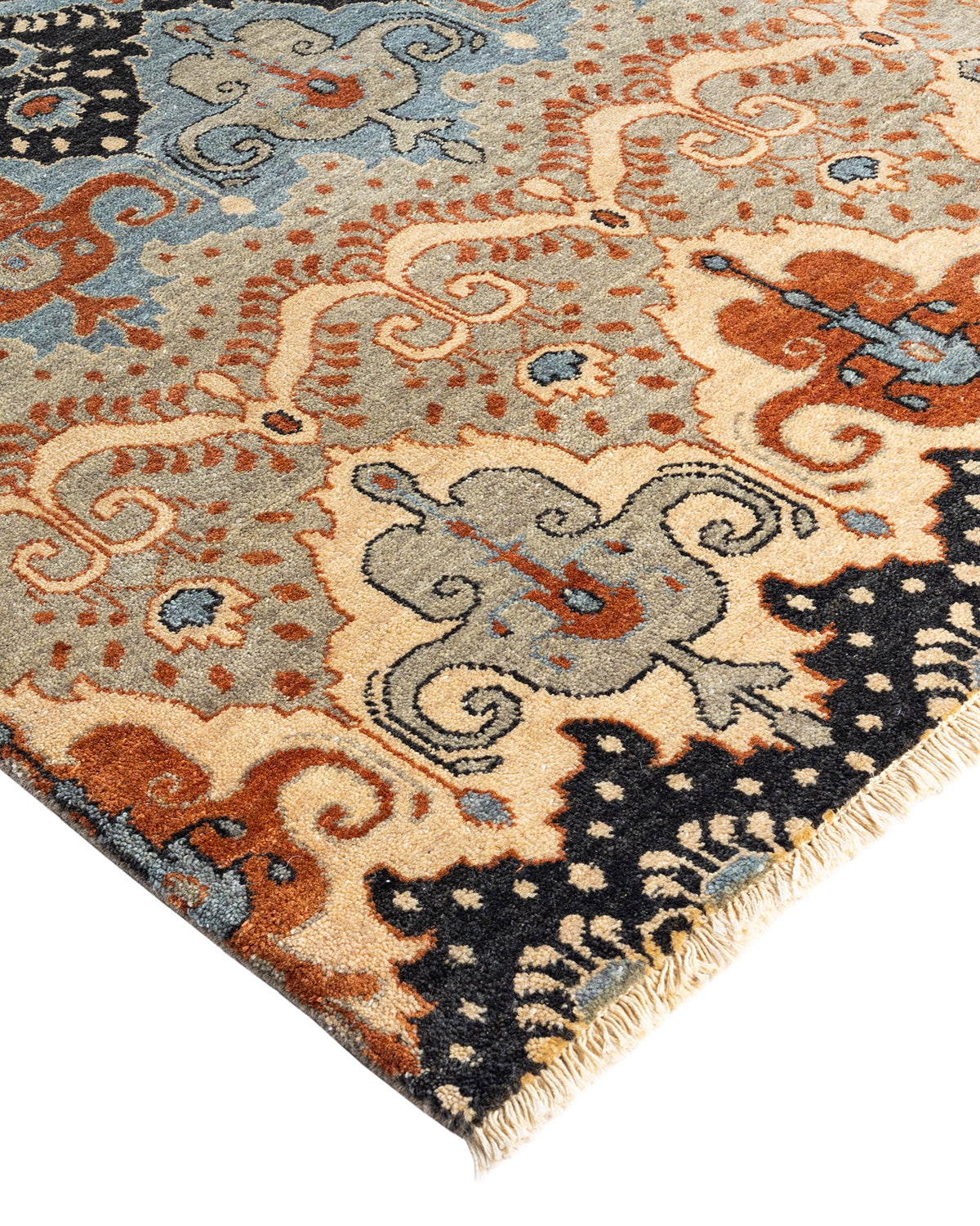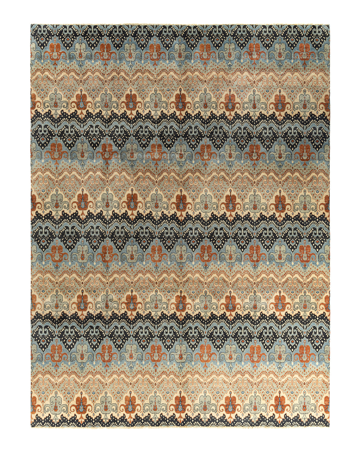 Traditional Ikat Hand Knotted Floral Wool Gray Area Rug 9' 1" x 12' 3"