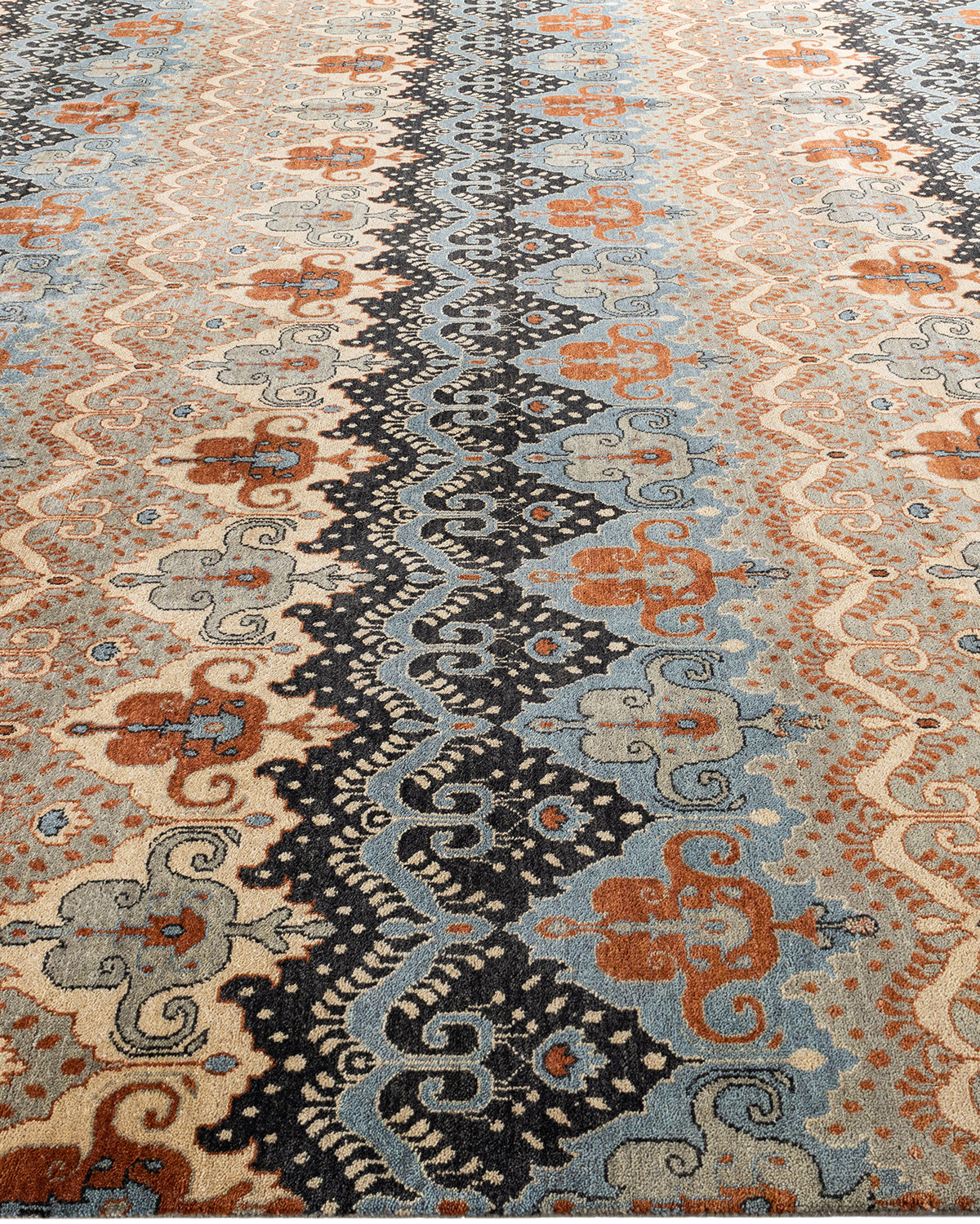 Kazak rugs have been sought after for generations, their unique design aesthetic a captivating combination of tribal history and geographic influence. Intricately hand-knotted from wool, the medallions, allover patterns, and central design reflect the inspiration the weavers drew from Caucasian rugs. A vivacious use of color, including brilliant reds, navies and ivories make these compelling, timeless additions to any room.