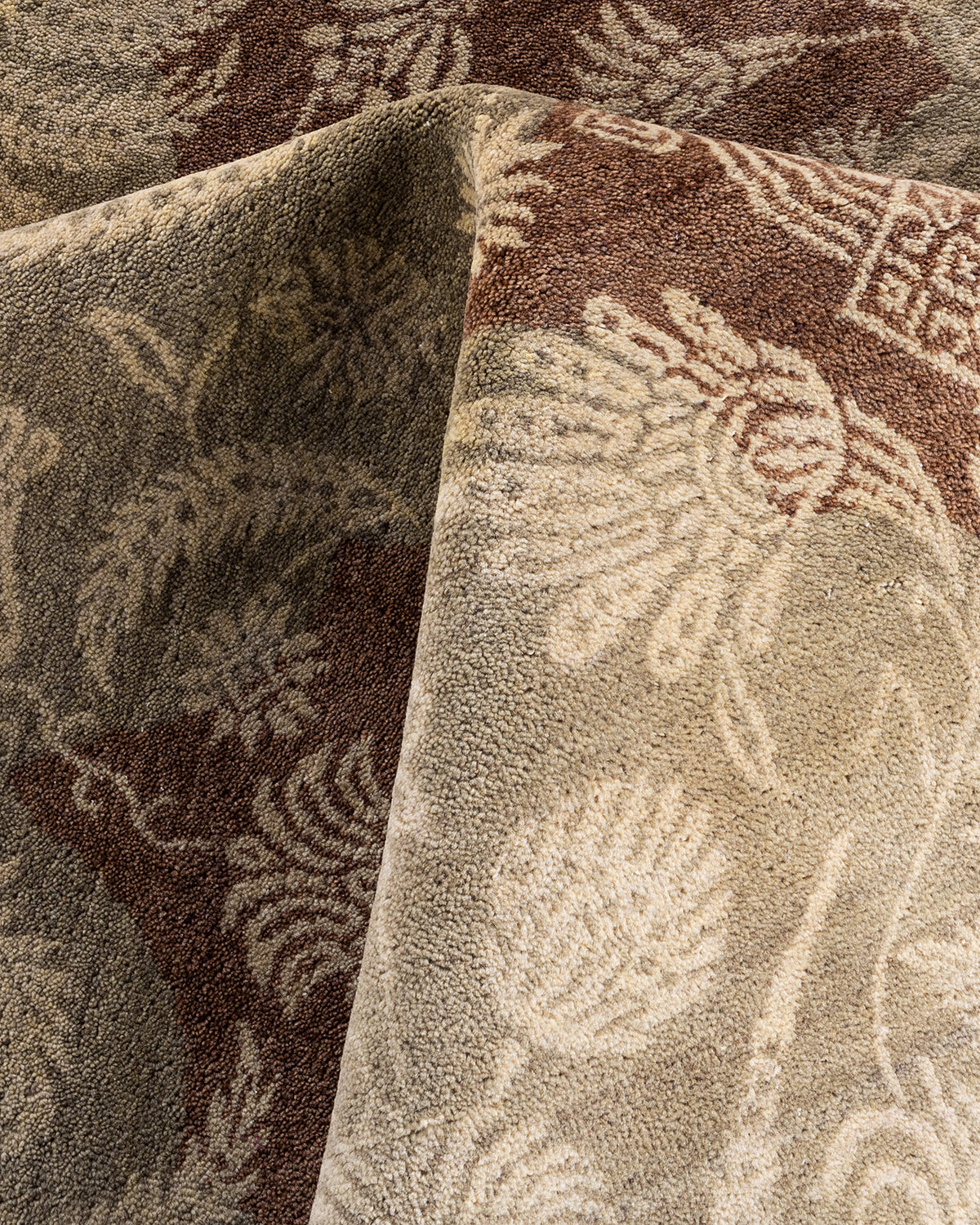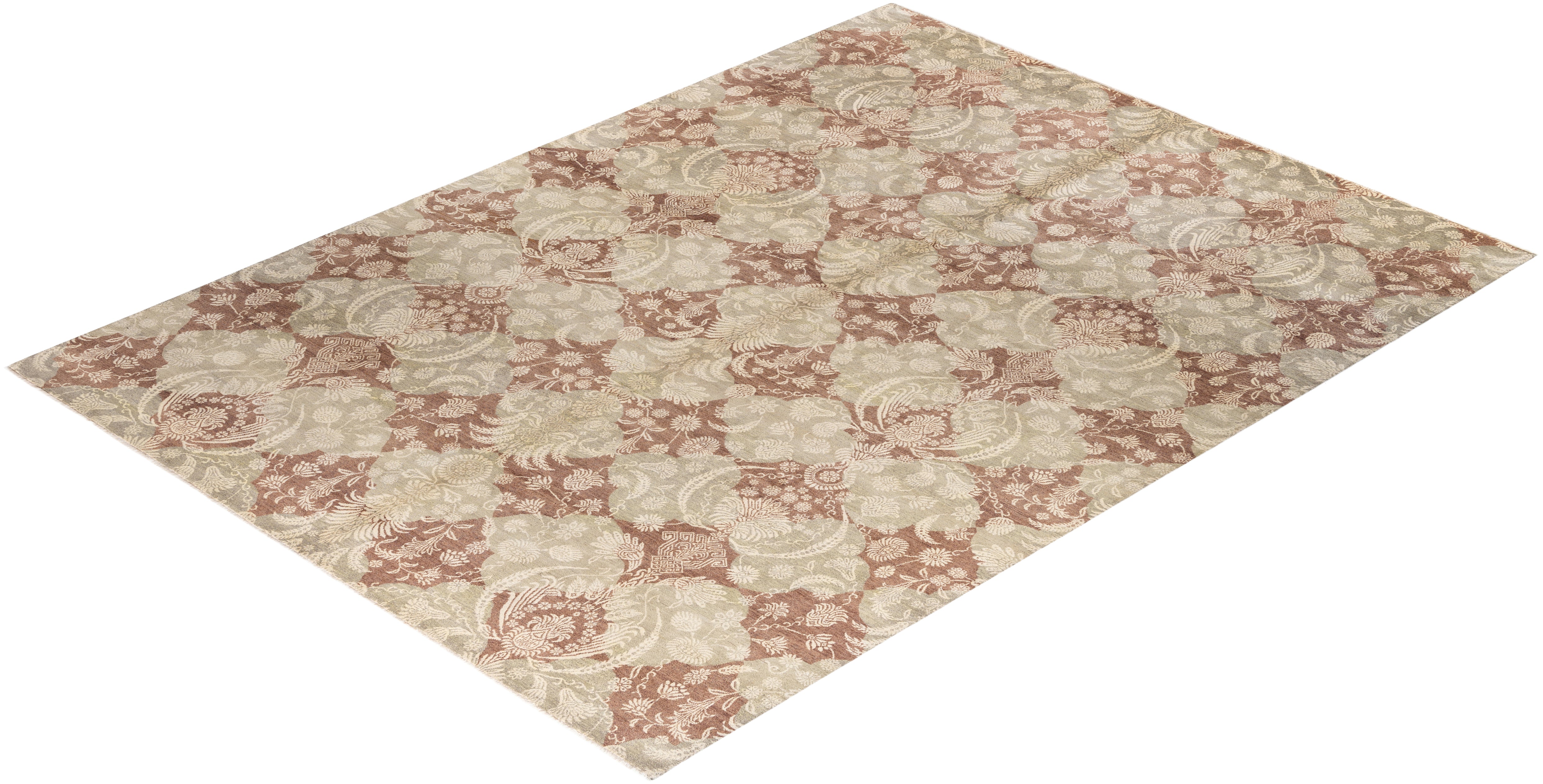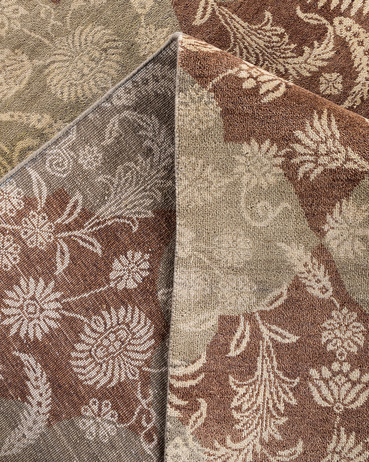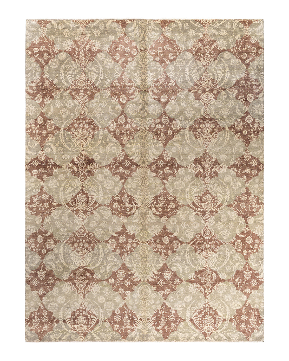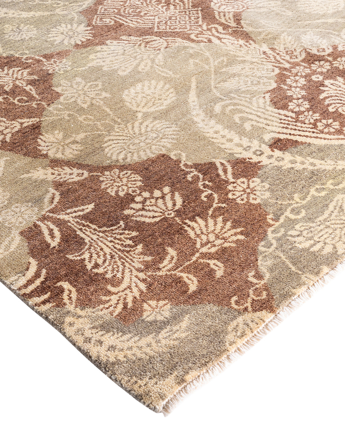 Traditional Ikat Hand Knotted Floral Wool Brown Area Rug 9' 2" x 12' 4"