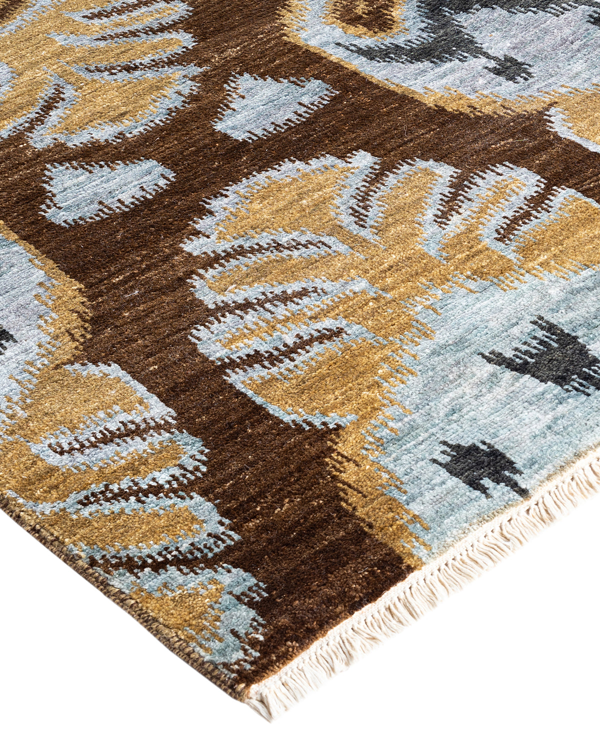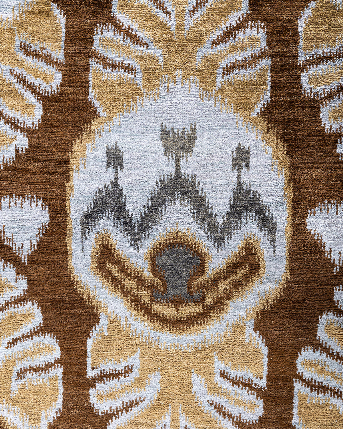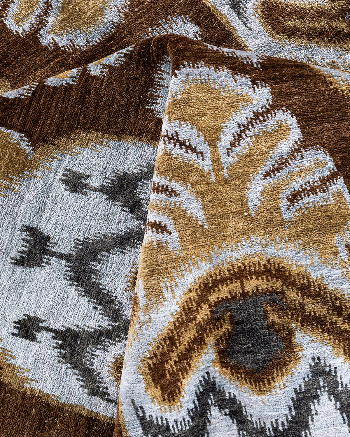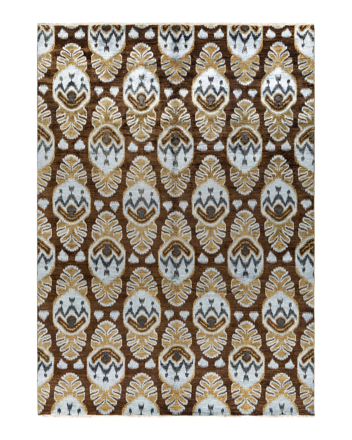 Traditional Ikat Hand Knotted Floral Silk & Wool Blend Brown Area Rug 8' 10" x 12' 4"
