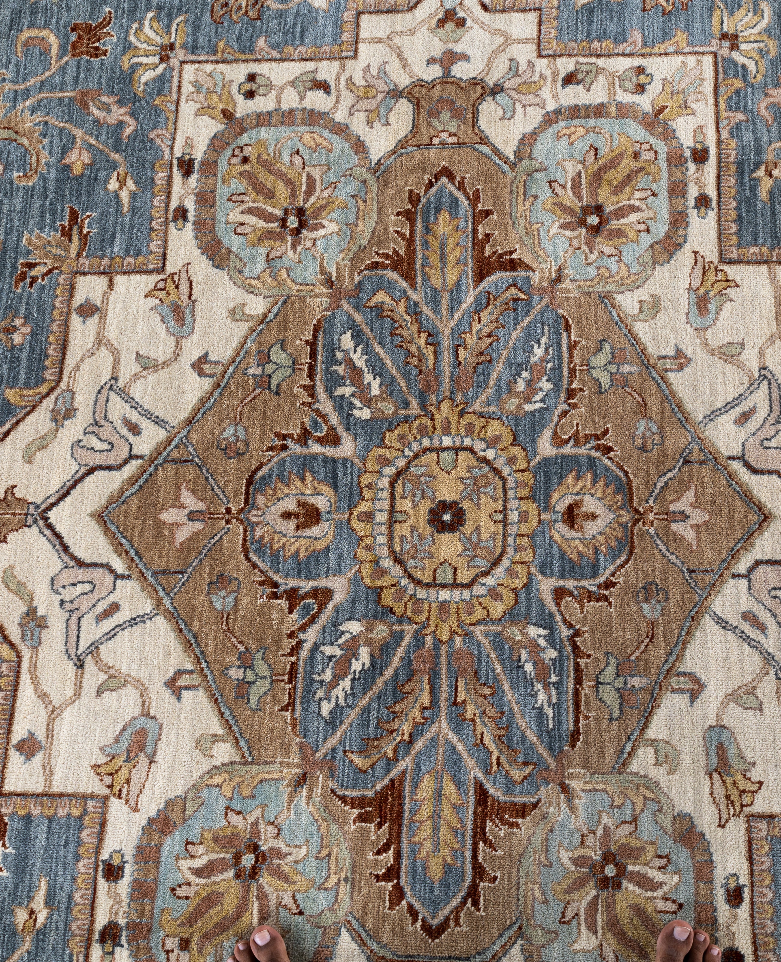 Originating centuries ago in what is now Turkey, Oushak rugs have long been sought after for their intricate patterns, lush yet subtle colors, and soft luster. These rugs continue that tradition. Hand-knotted of wool by skilled artisans, they will last for years—especially fortunate given that they will never fall out of fashion.