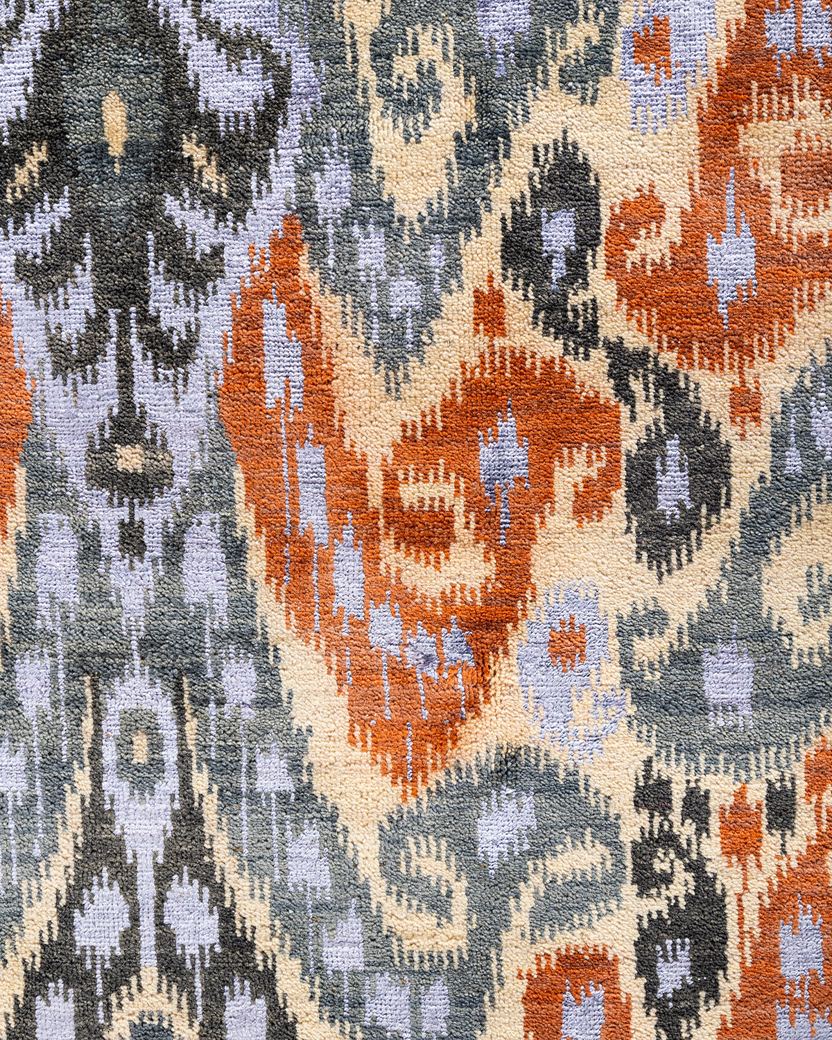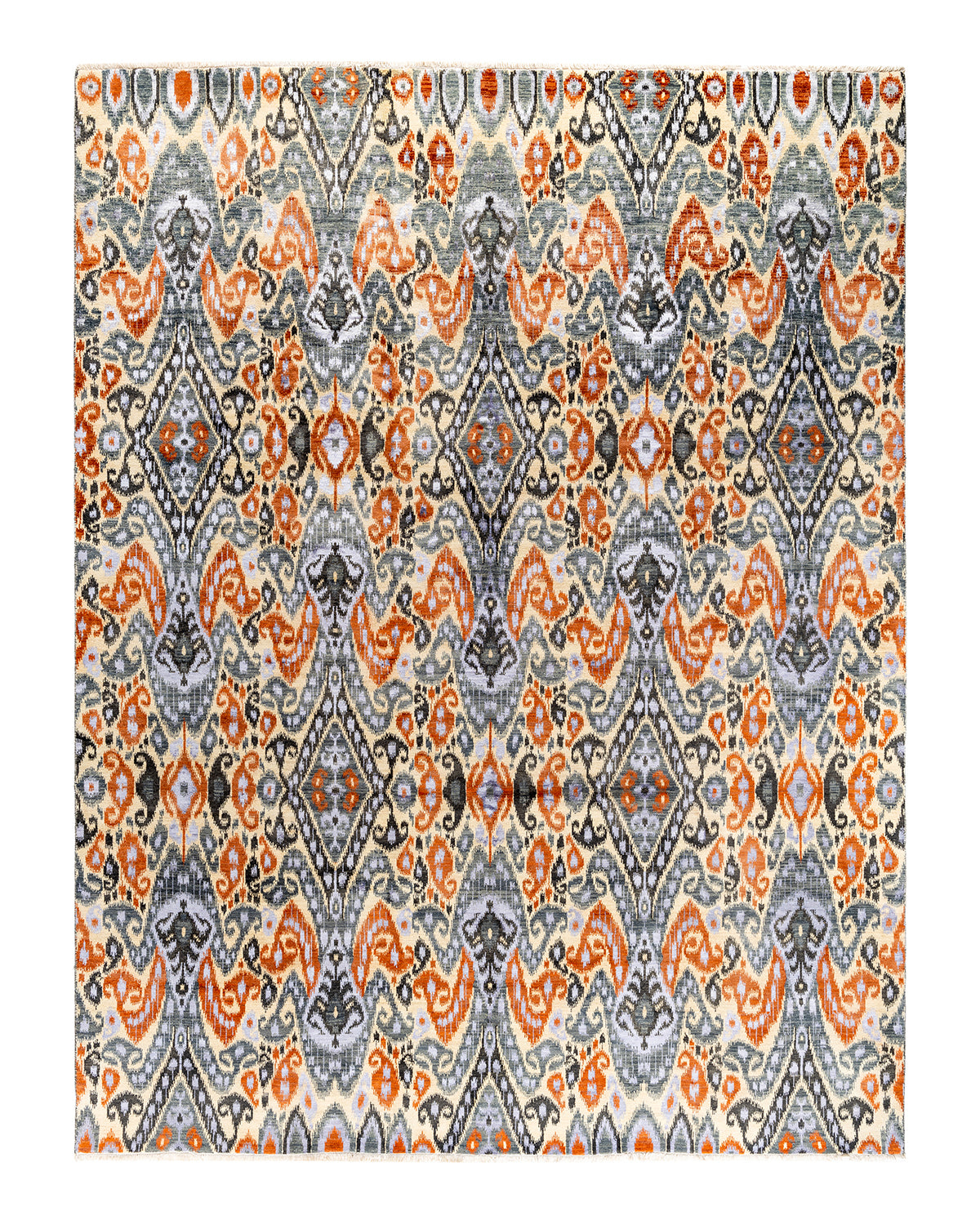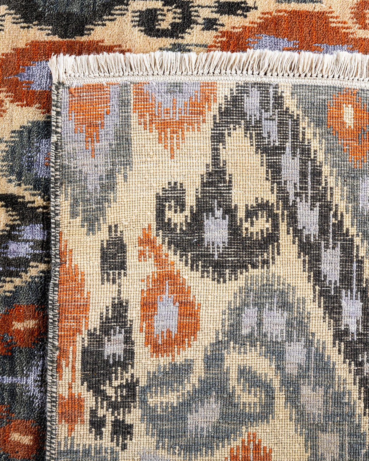 Traditional Ikat Hand Knotted Floral Silk & Wool Blend Gray Area Rug 9' 0" x 11' 7"