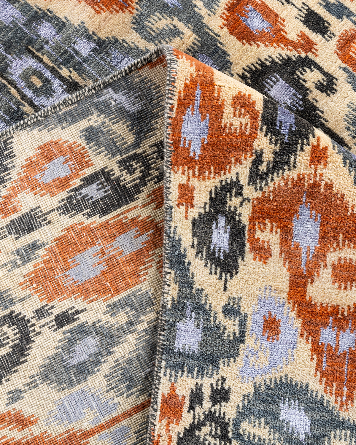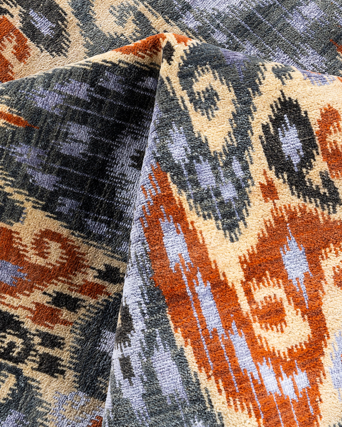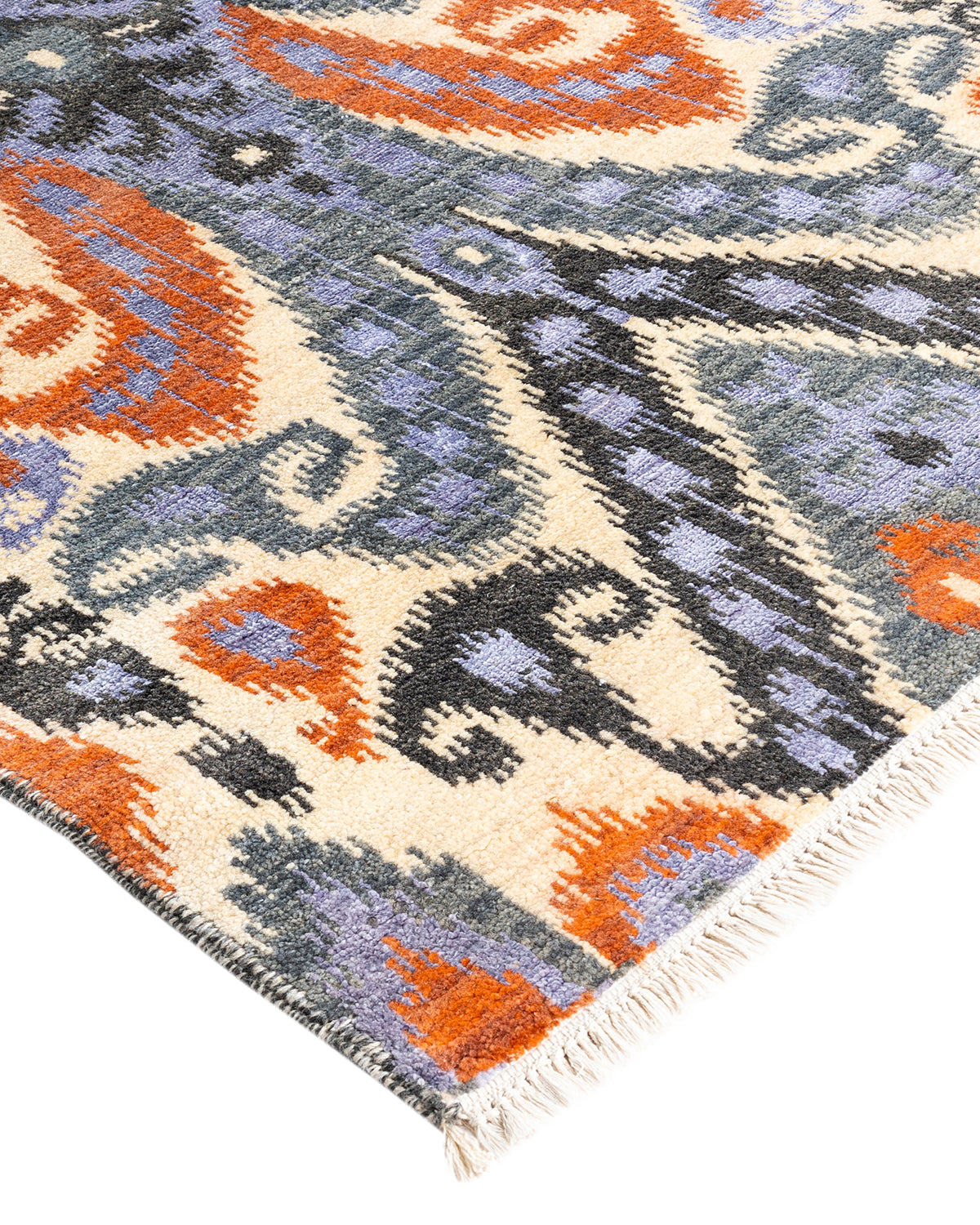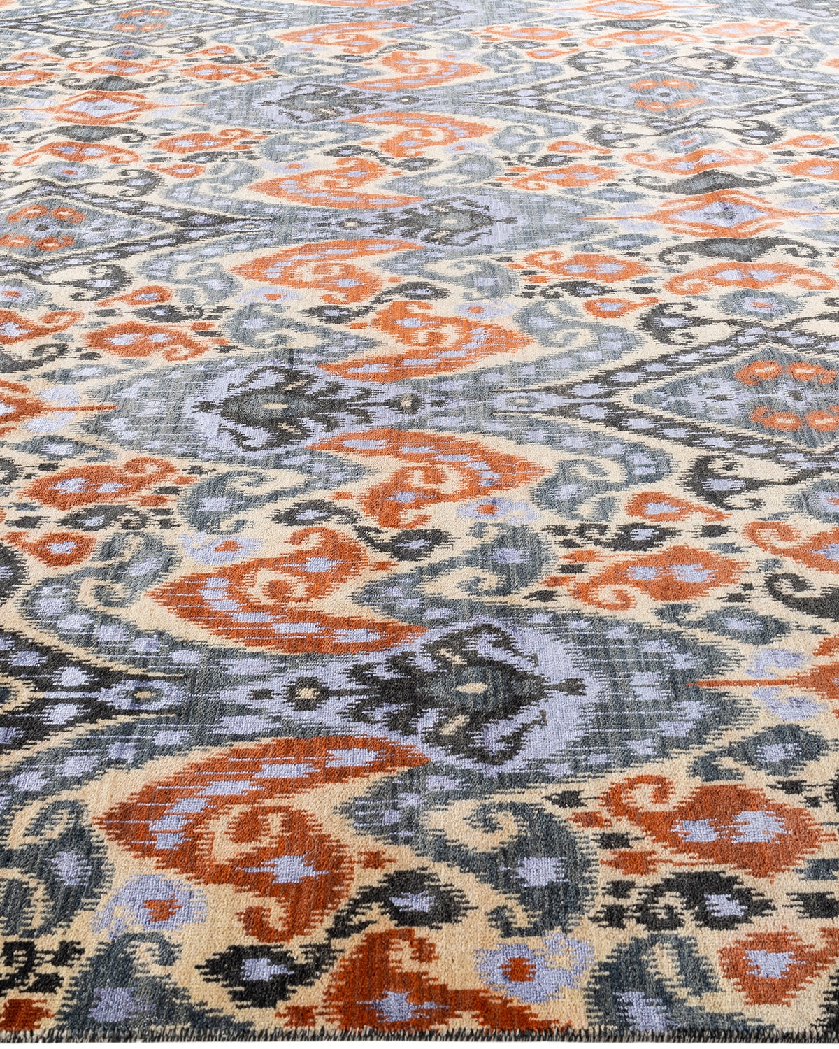 Traditional Ikat Hand Knotted Floral Silk & Wool Blend Gray Area Rug 9' 0" x 11' 7"