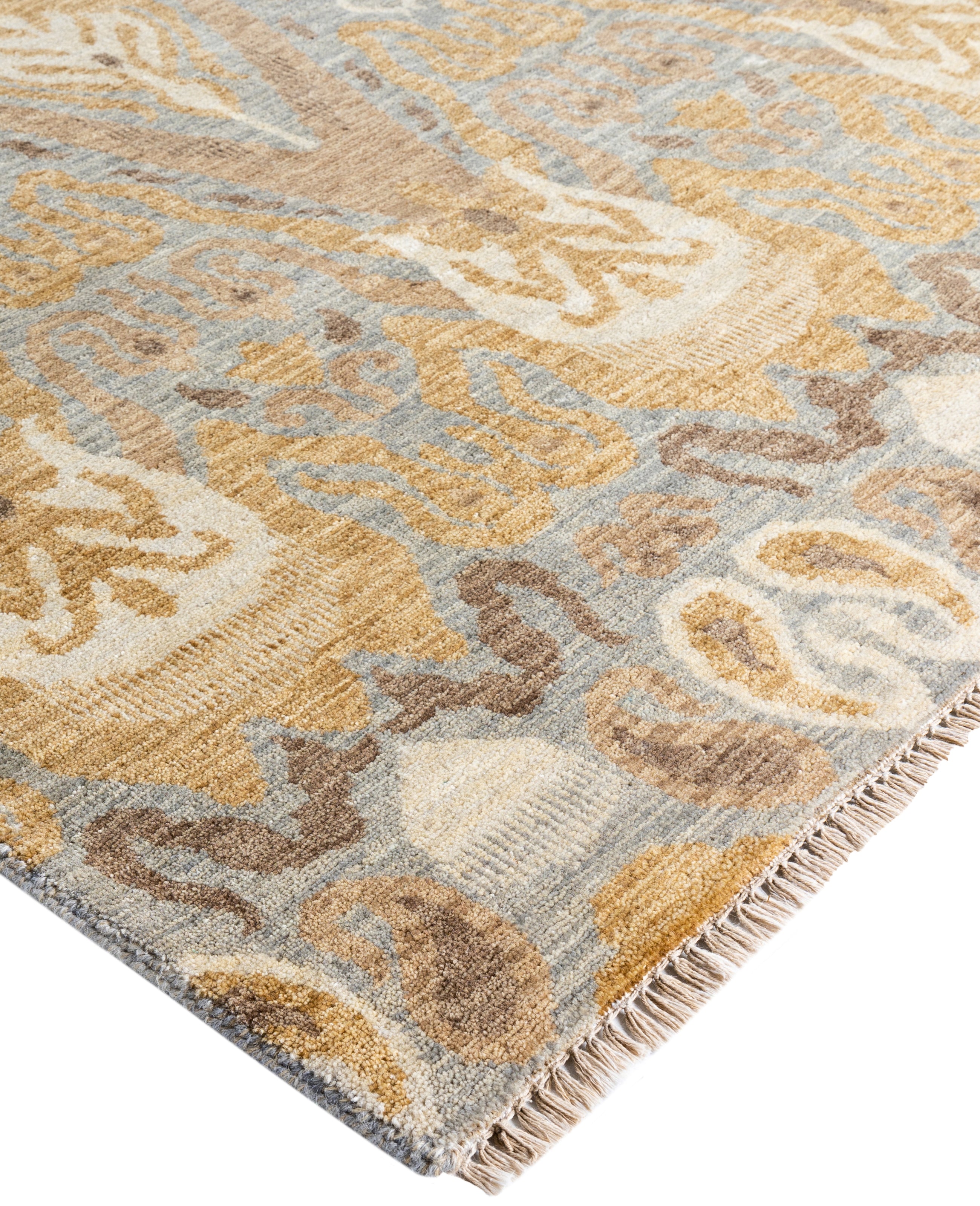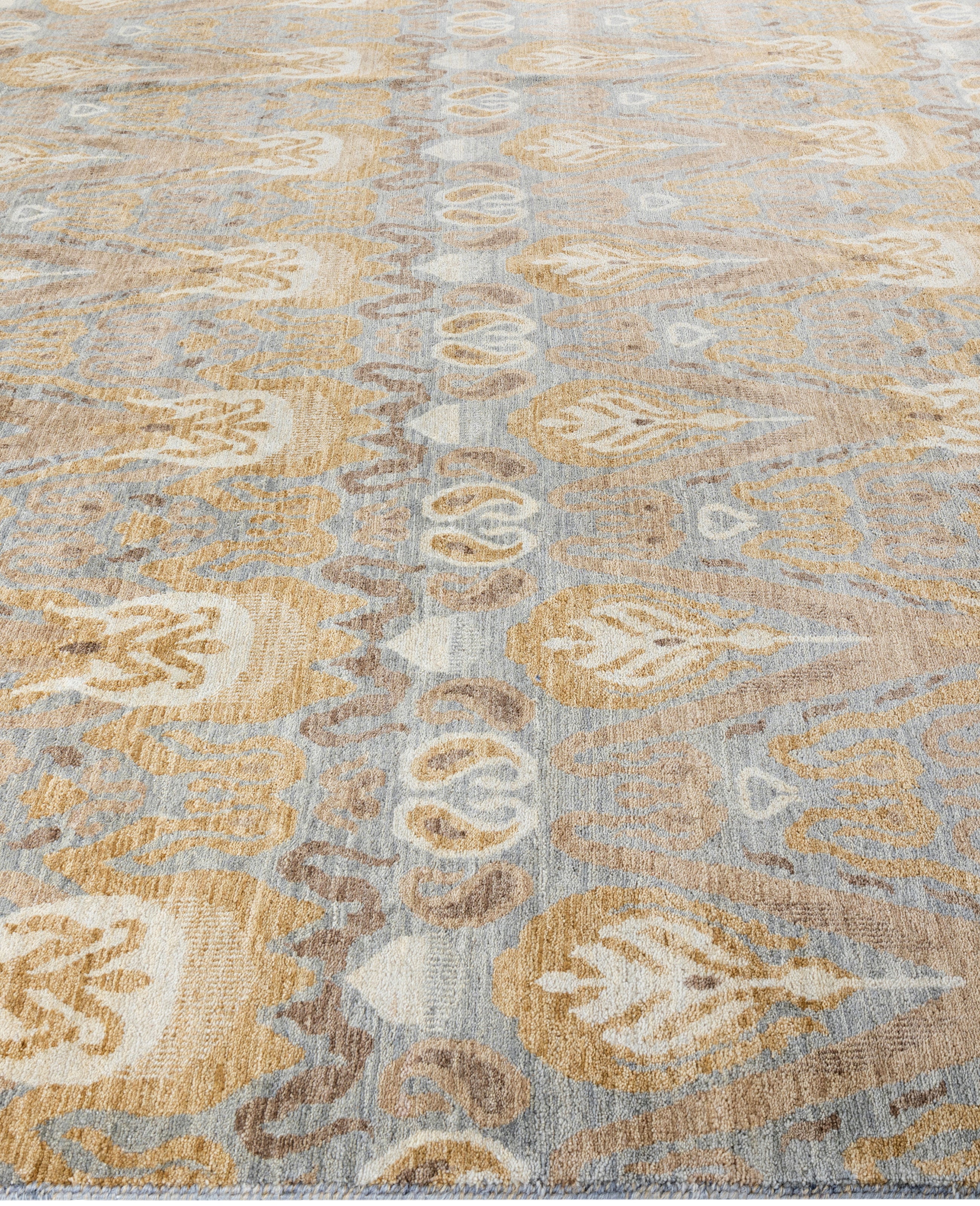 Traditional Floral Wool, Silk Hand Knotted Gray Area Rug 9' 2" x 12' 2"