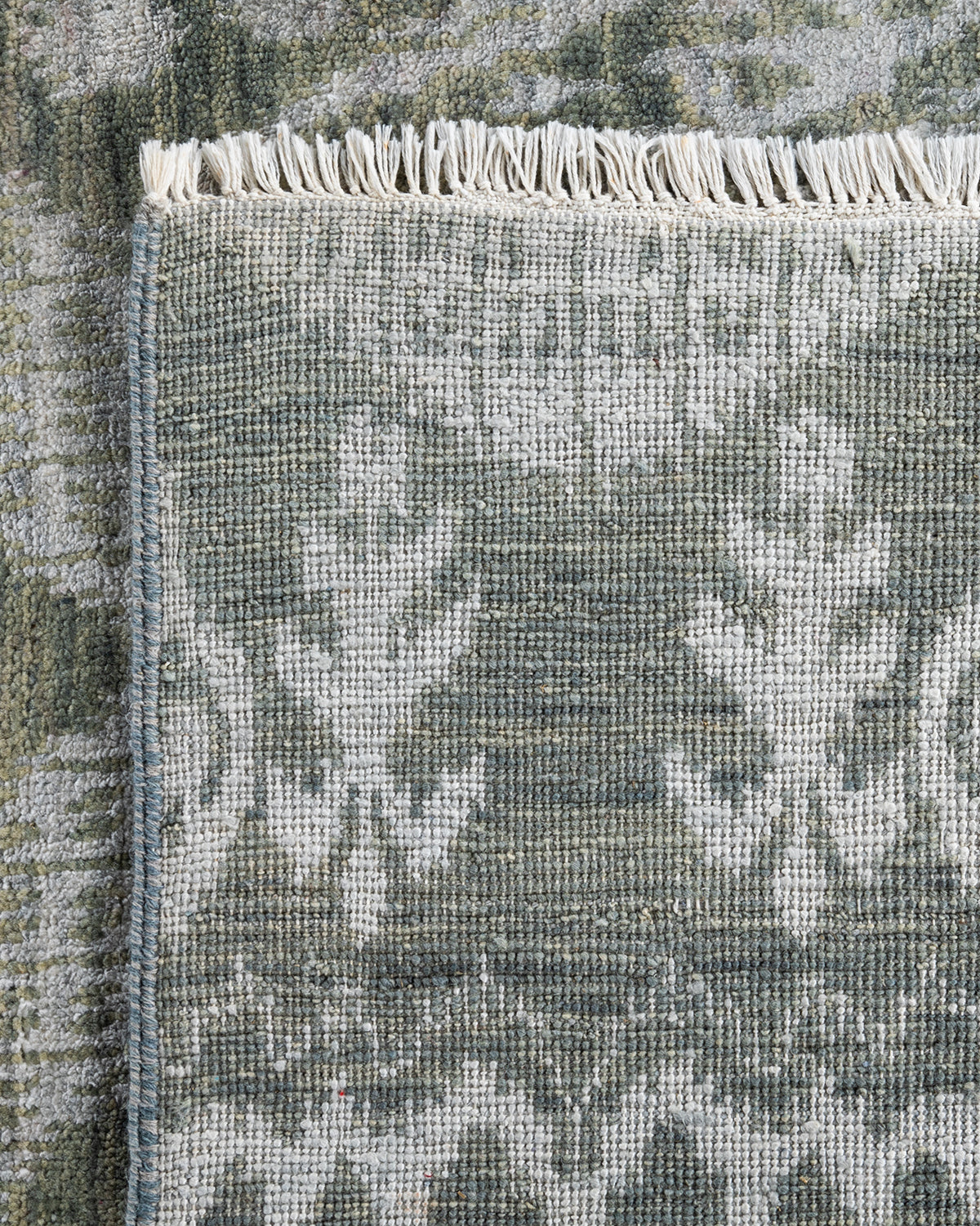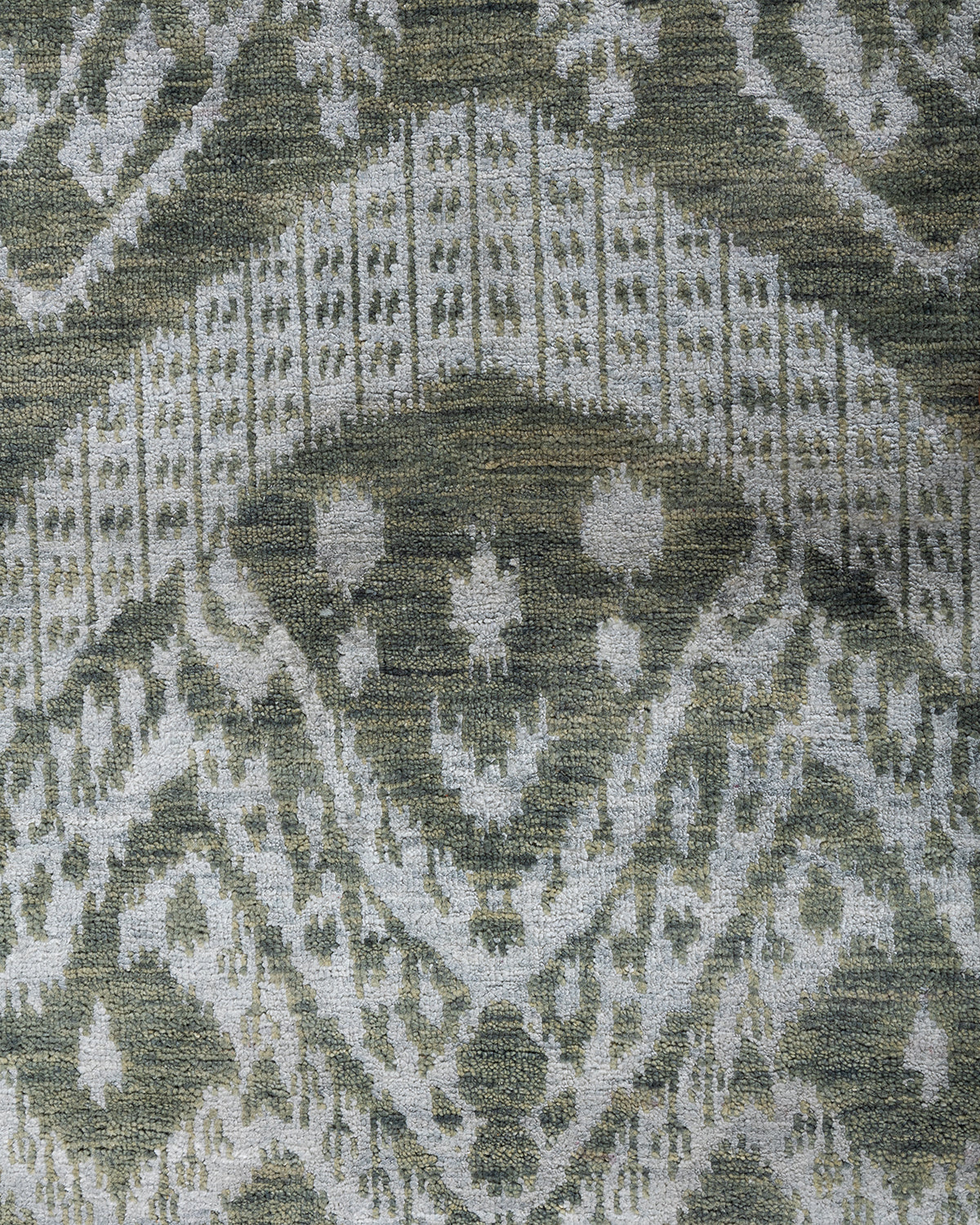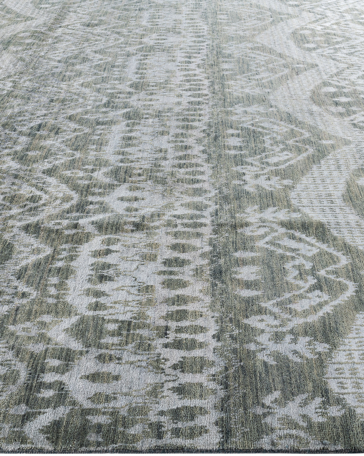 Traditional Ikat Hand Knotted Floral Silk & Wool Blend Gray Area Rug 9' 0" x 12' 1"