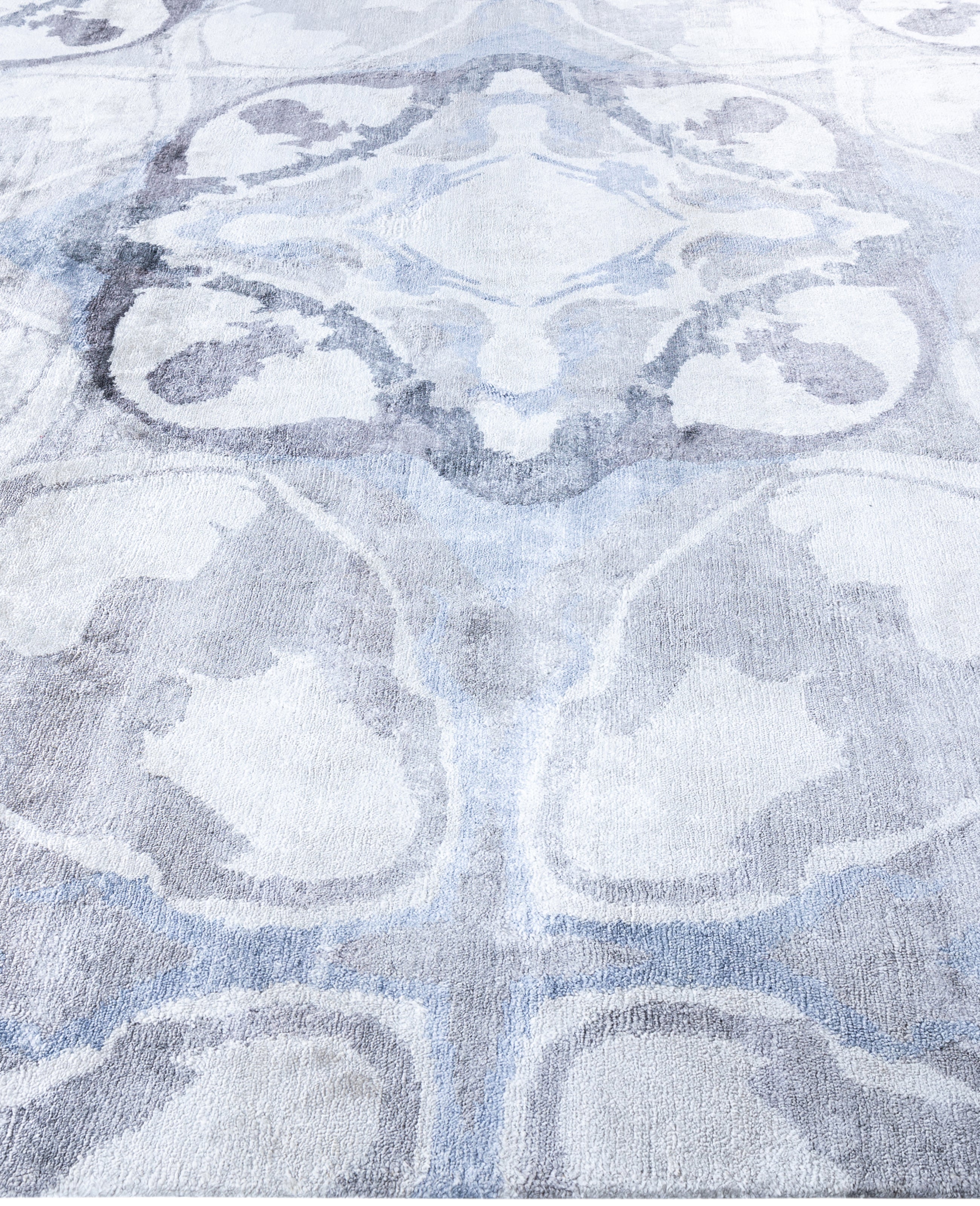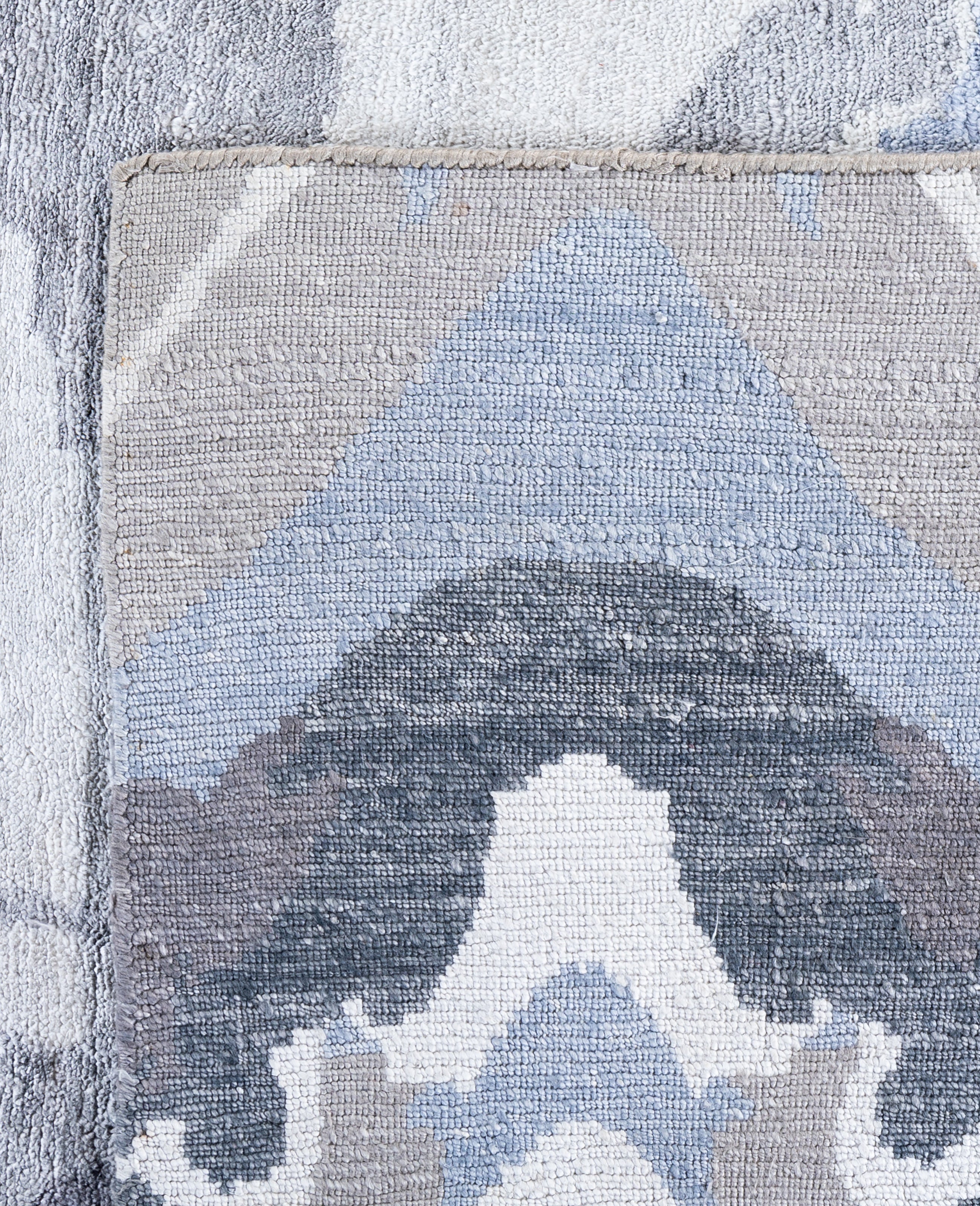 Contemporary Geometric Silk Hand Knotted Ivory Area Rug 9' 0" x 12' 1"