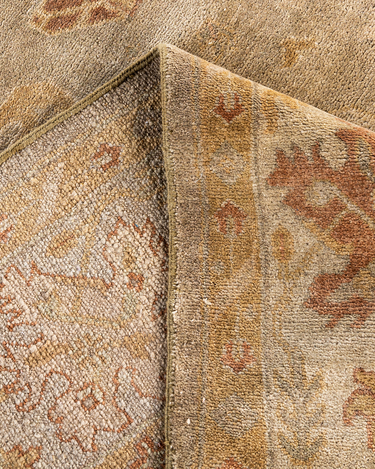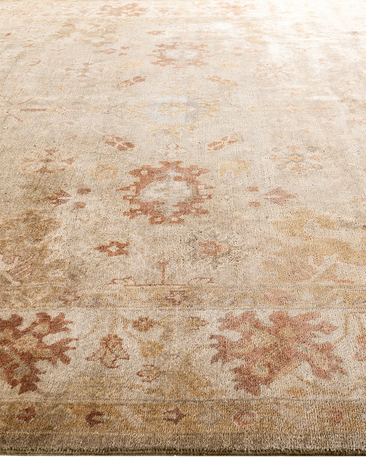 Originating centuries ago in what is now Turkey, Oushak rugs have long been sought after for their intricate patterns, lush yet subtle colors, and soft luster. These rugs continue that tradition. Hand-knotted of wool by skilled artisans, they will last for years—especially fortunate given that they will never fall out of fashion.