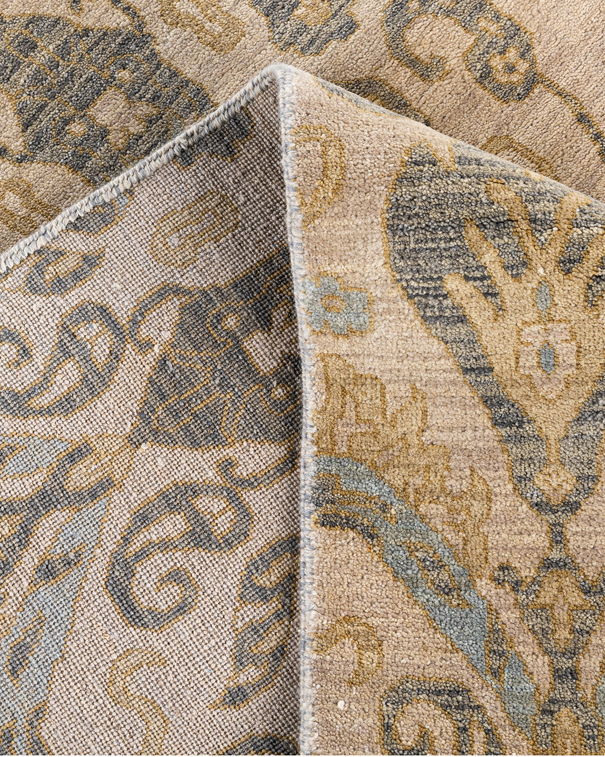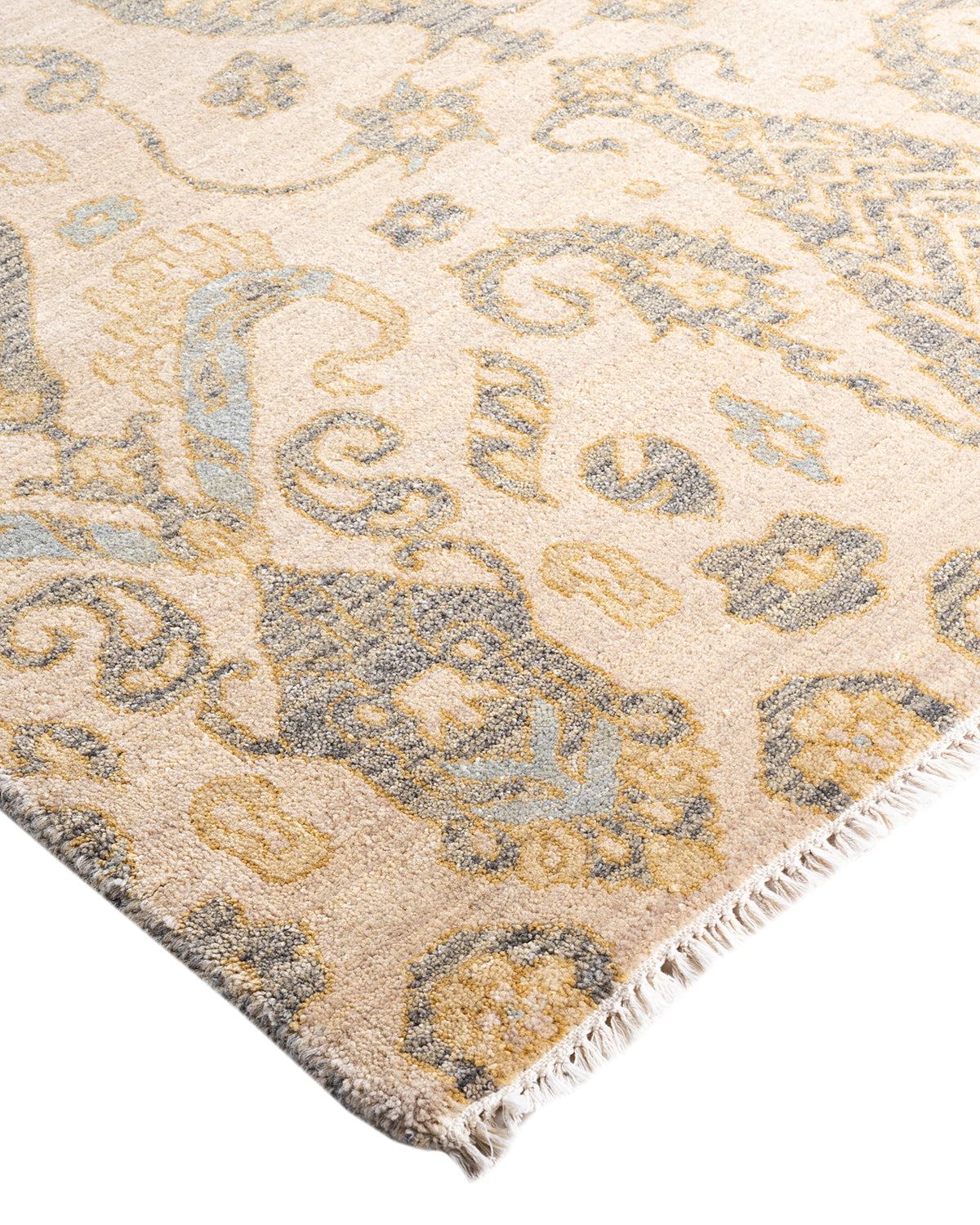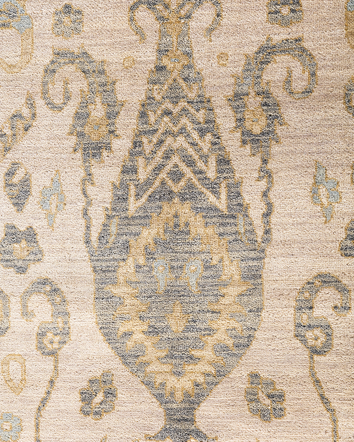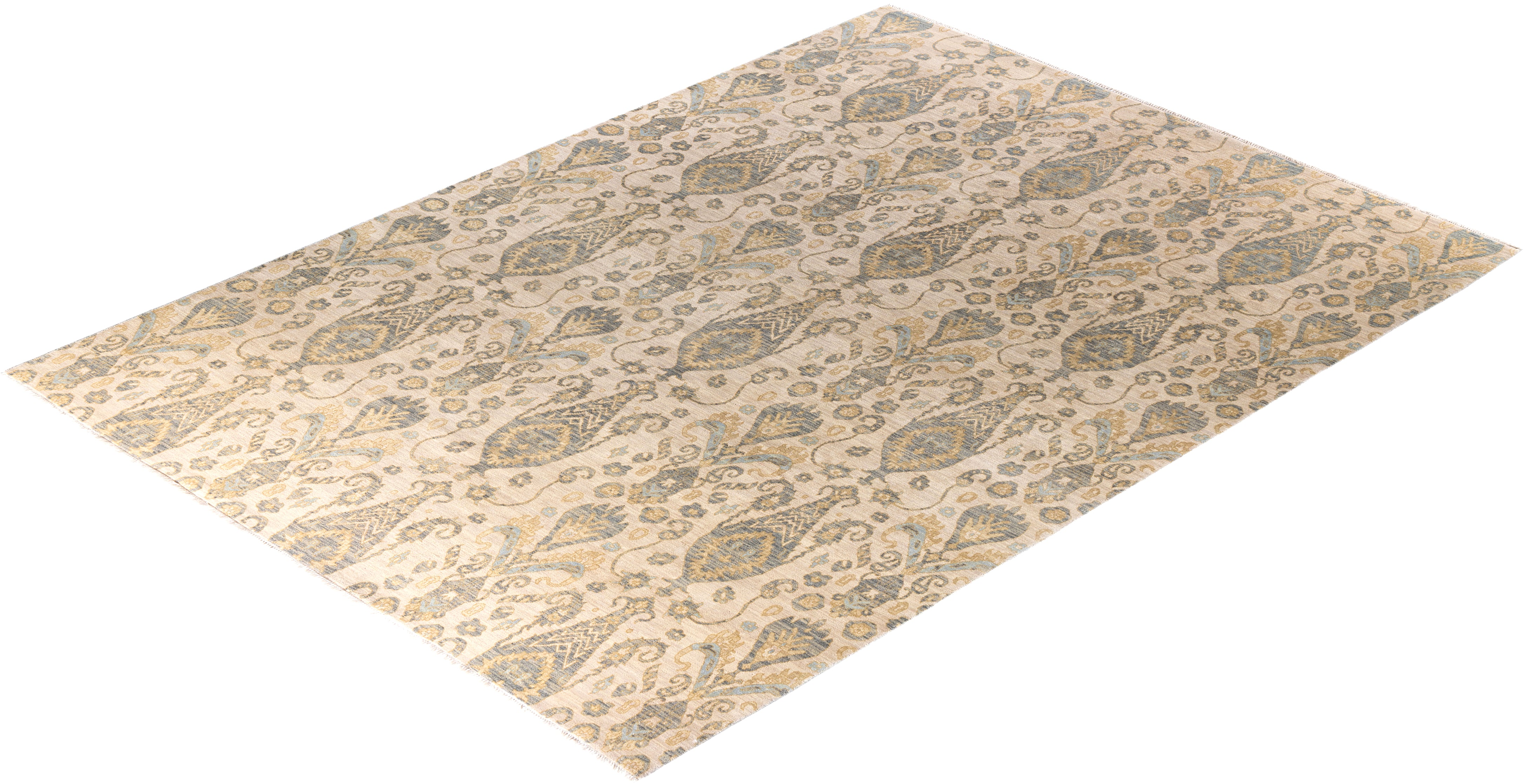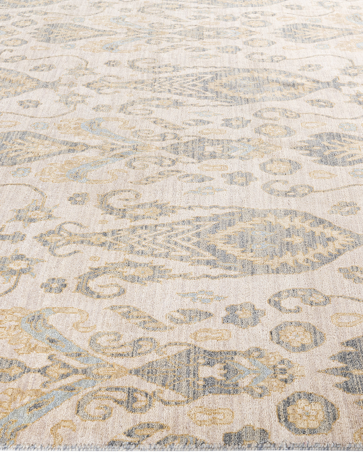 Traditional Ikat Hand Knotted Floral Wool Beige Area Rug 9' 1" x 12' 4"