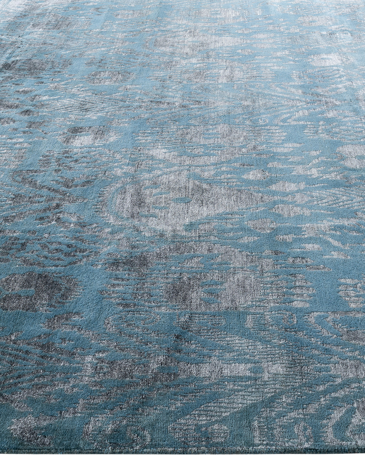 Traditional Ikat Hand Knotted Abstract Silk & Wool Blend Gray Area Rug 8' 10" x 12' 3"