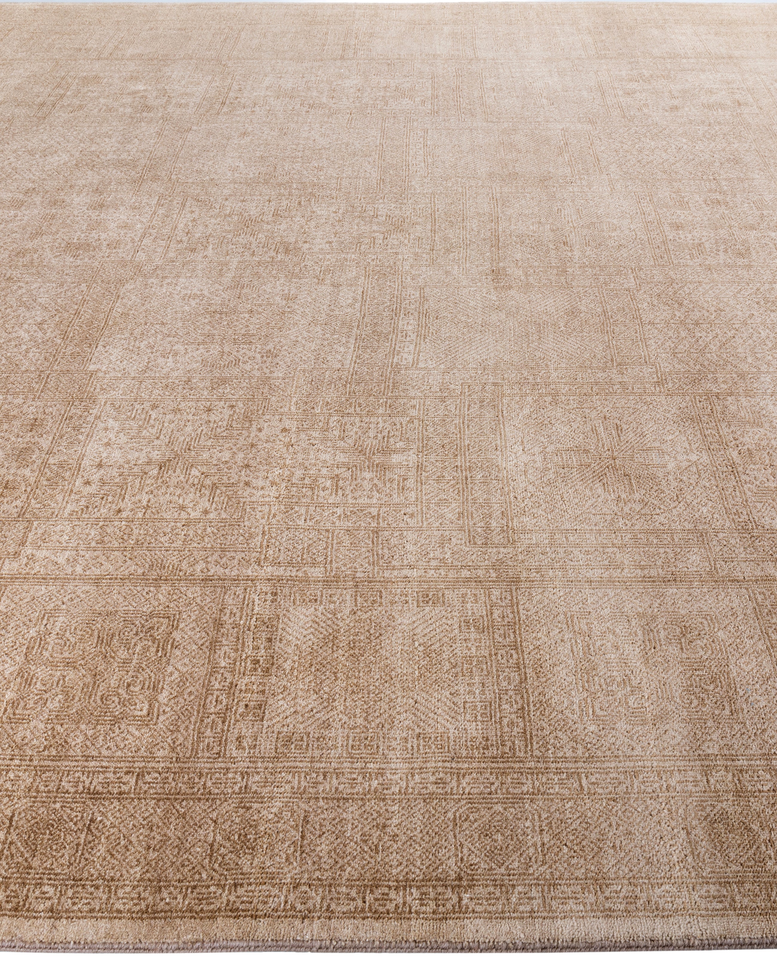 Contemporary Geometric Wool Hand Knotted Ivory Area Rug 9' 1" x 12' 1"