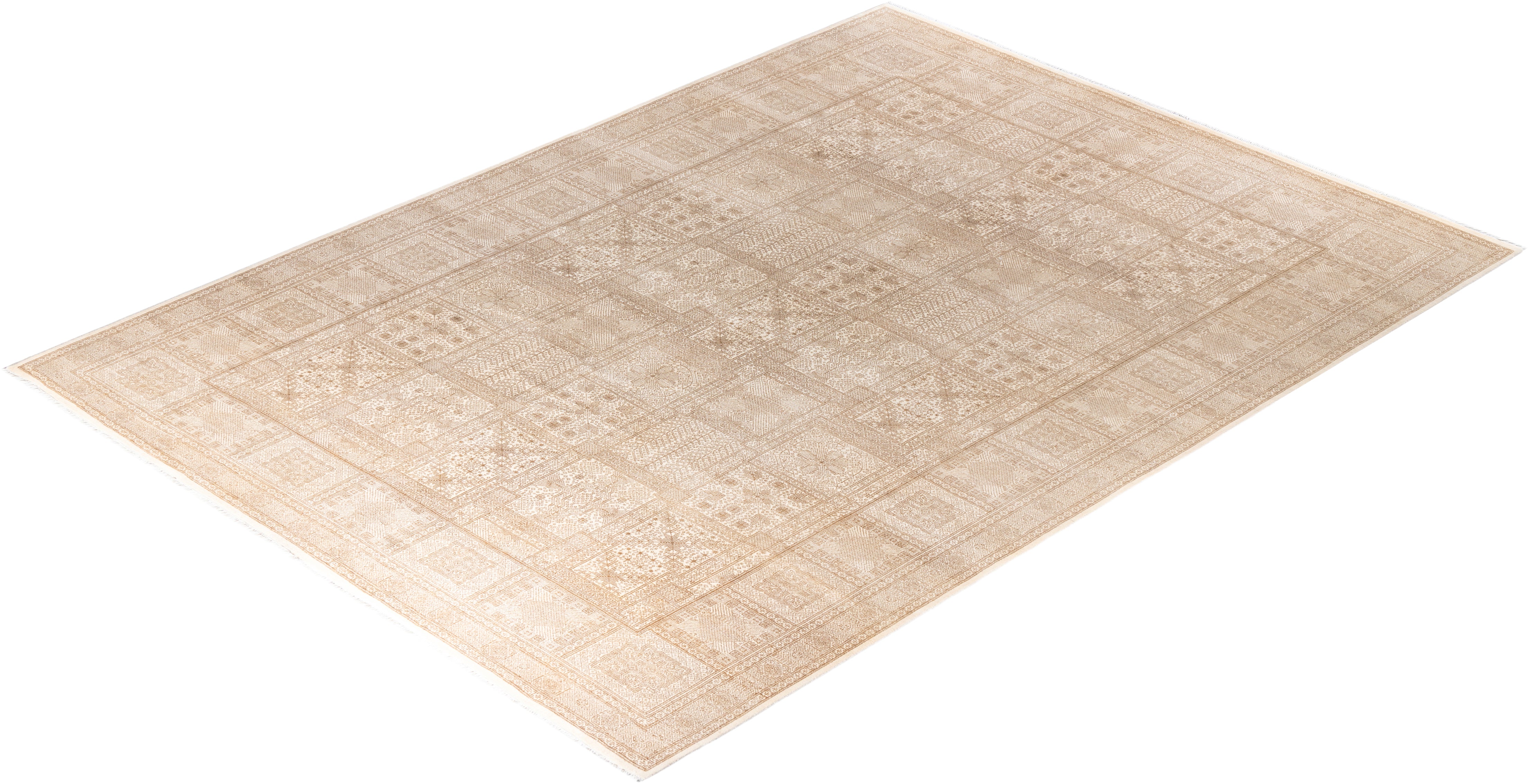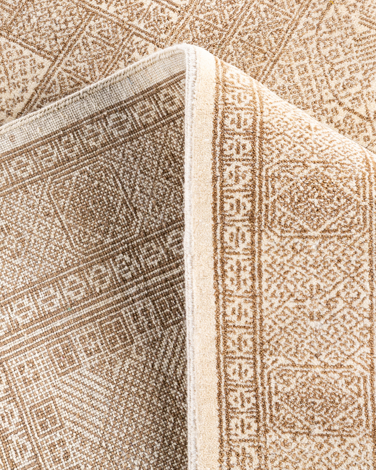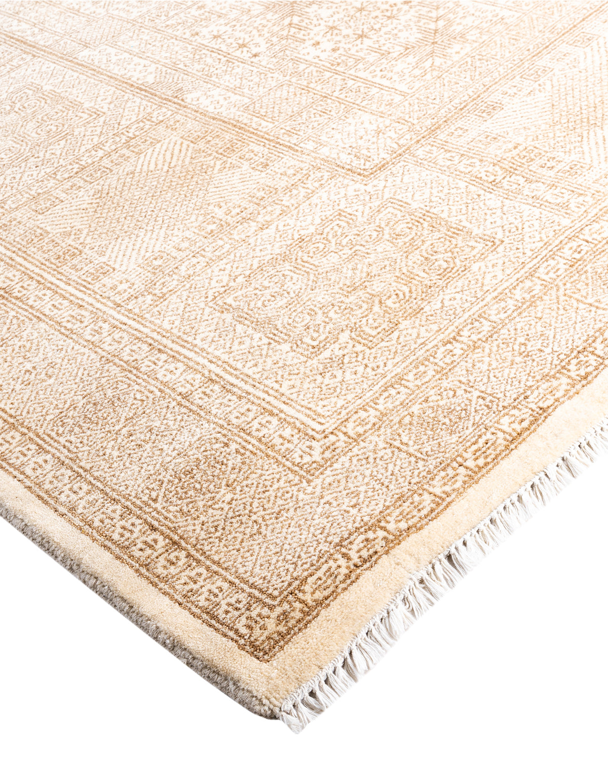 Traditional Ikat Hand Knotted Geometric Wool Ivory Area Rug 9' 2" x 12' 4"