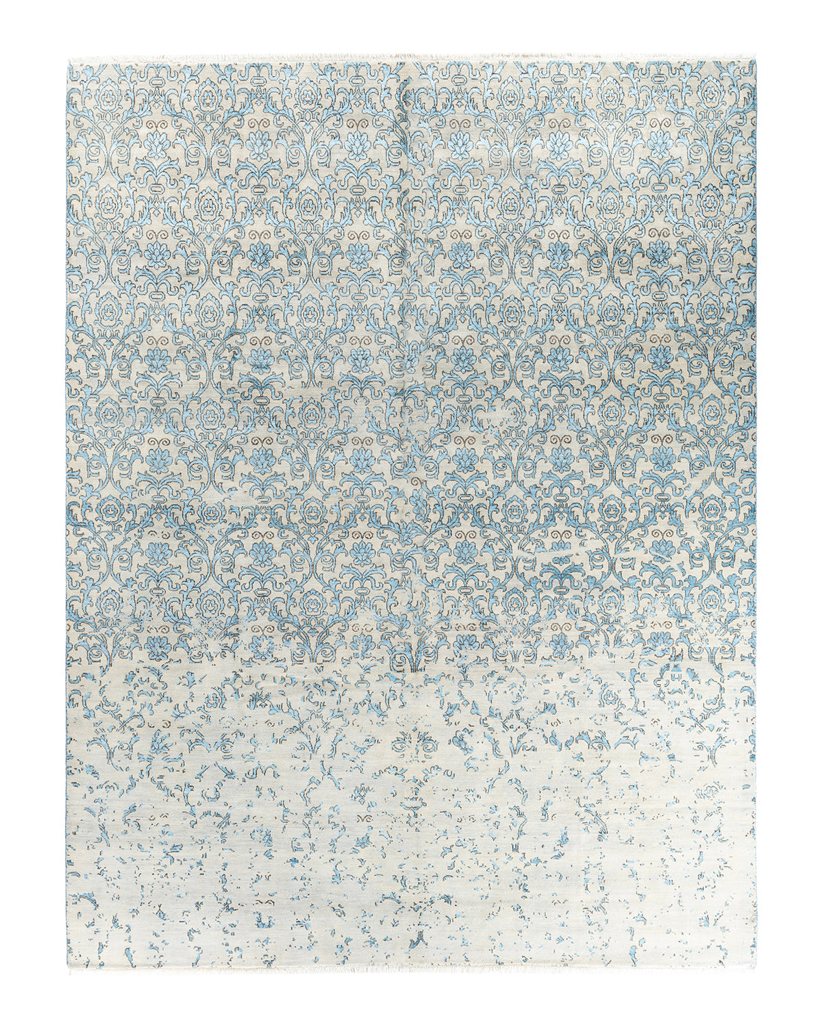 Traditional Ikat Hand Knotted Abstract Silk & Wool Blend Sand Area Rug 9' 0" x 11' 8"