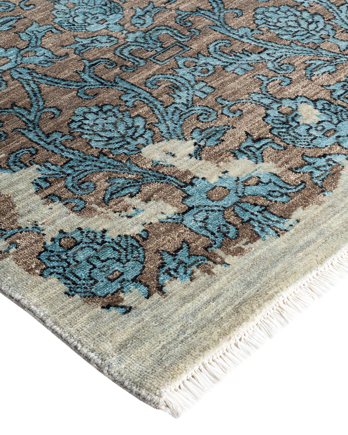 Traditional Ikat Hand Knotted Floral Silk & Wool Blend Beige Area Rug 9' 2" x 12' 2"