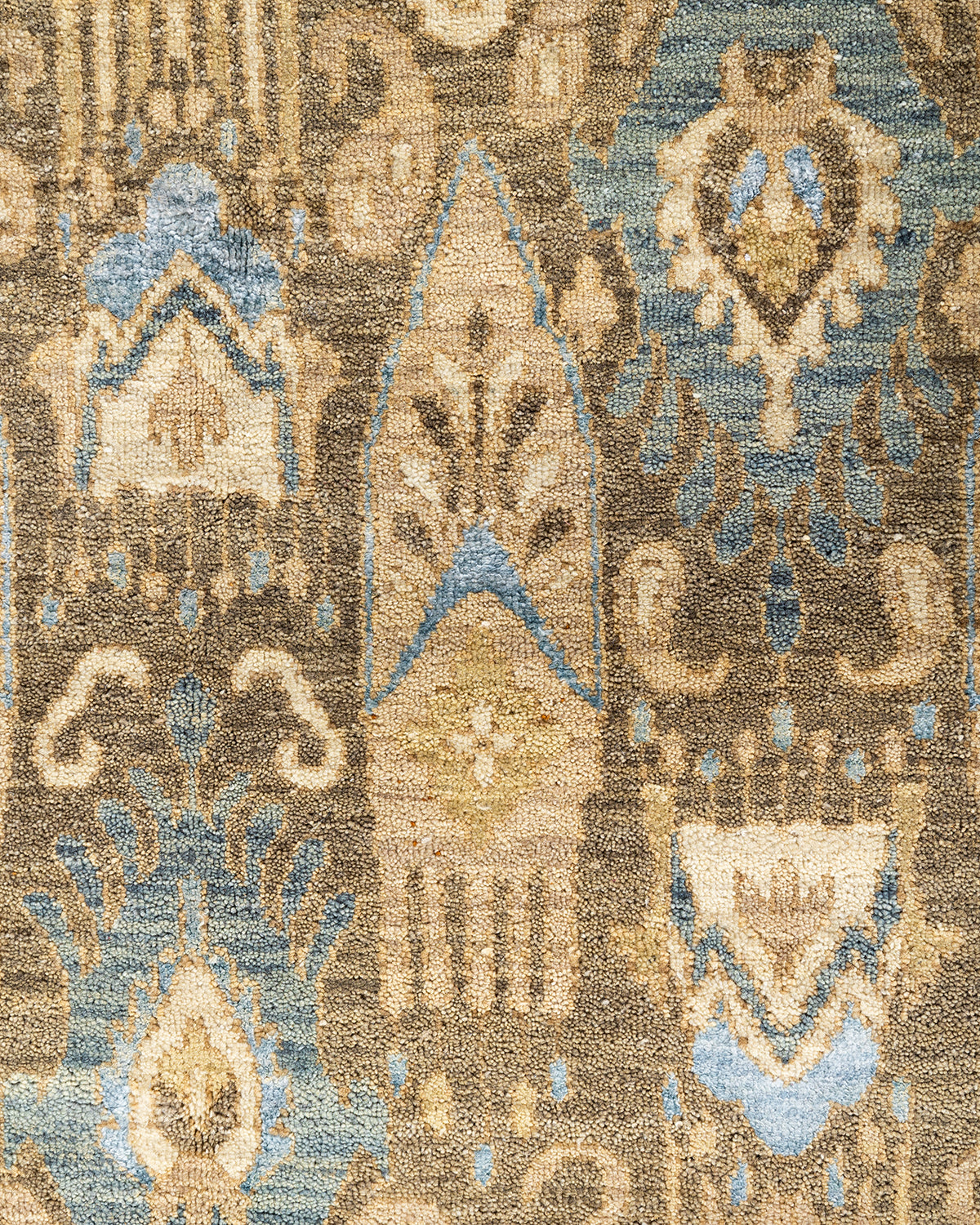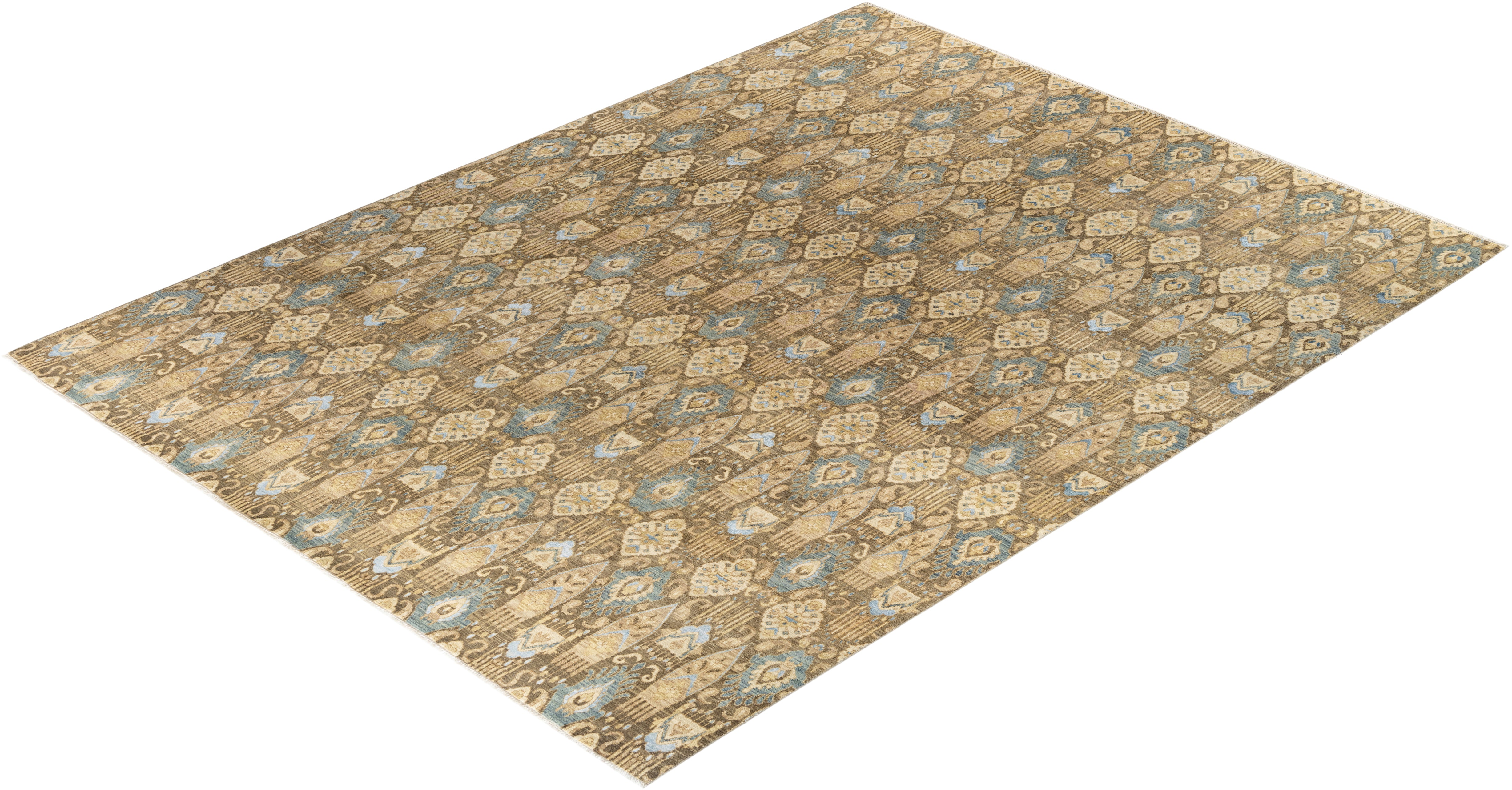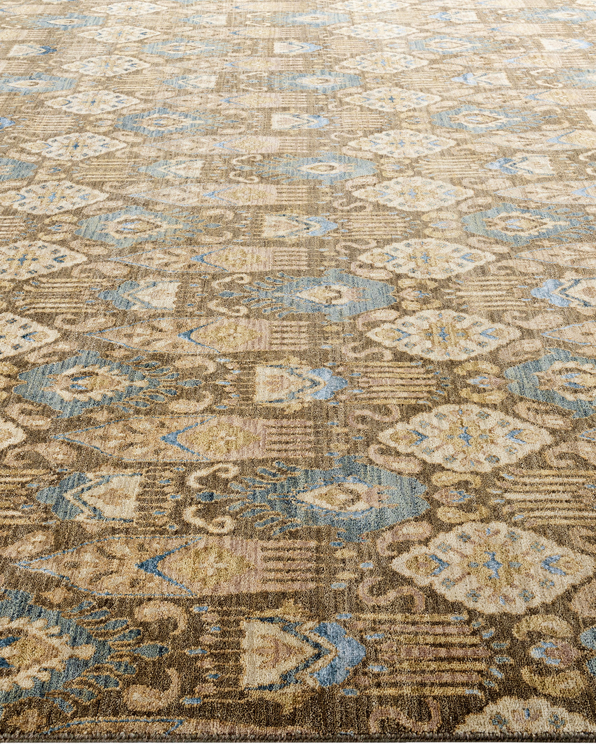 Traditional Ikat Hand Knotted Geometric Silk & Wool Blend Brown Area Rug 9' 0" x 12' 0"